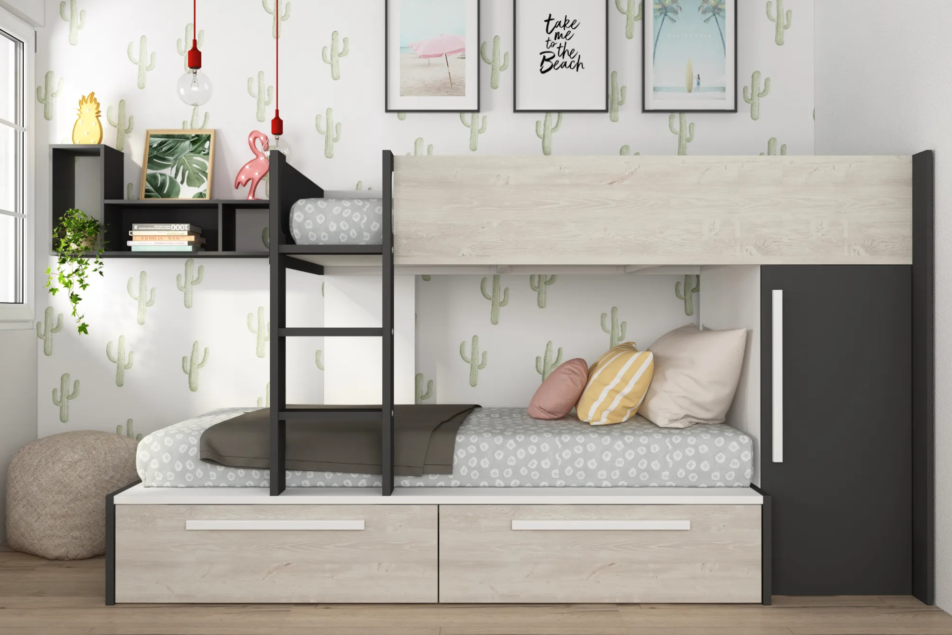 Jeden priestor, aj keď menší, musí niekedy postačiť ako detská izba viacerým deťom. V tomto prípade je dobrým riešením voliť nábytkový program s praktickou poschodovou posteľou alebo rozkladacou posteľou s perinákom. Keď majú deti dva až tri roky a naplno sa u nich prejaví ich hravá povaha, doplňte detskú izbičku textilným tunelom, prípadne originálnym textilným domčekom, ktorý sa dá pripevniť na zvýšenú detskú posteľ. Ak k nej prikúpite aj detskú kĺzačku, dostať deti z izby bude zaručene problém.