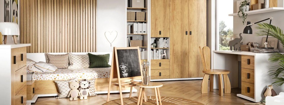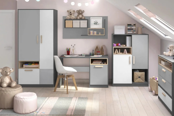 S nástupom do školy sa toho veľa mení. Detská izbička bude potrebovať kvalitný písací stôl (ideálne výškovo nastaviteľný alebo s výklopným úložným priestorom v doske) a i praktický kontajner so zásuvkami. Využiť môžete aj pojazdný vozík na kolieskach s úložnými košíkmi. Hračky a detské knižky však ani v tomto veku z izby nezmiznú. Svoje miesto si nájdu vo farebných krabiciach alebo v drevených boxoch, knižky zase na poličkách alebo v zaujímavom regáli. Na precvičovanie písania bude vynikajúcou pomôckou magnetická tabuľa určená aj na písanie.