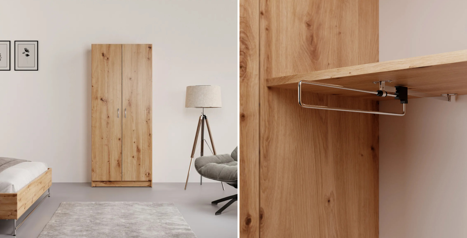 Môžete si vyberať medzi vyhotoveniami, ktoré majú výlučne šatníkovú tyč alebo len policový systém. Samozrejme, nechýba ani ponuka kombinovaného vnútorného usporiadania, ktoré je najpraktickejšie. Takéto šatníkové skrine teda majú závesné tyče, police i zásuvky.