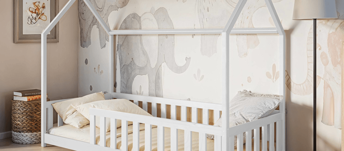 - Je domčeková posteľ bezpečná? Áno. Nízka poloha pri zemi znižuje riziko pádu a mnohé modely majú aj ochranné zábrany. Dôležité je dbať na zaoblené hrany, kvalitné spracovanie a správnu montáž.