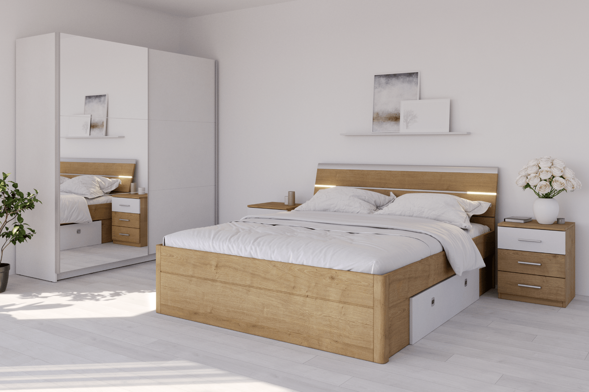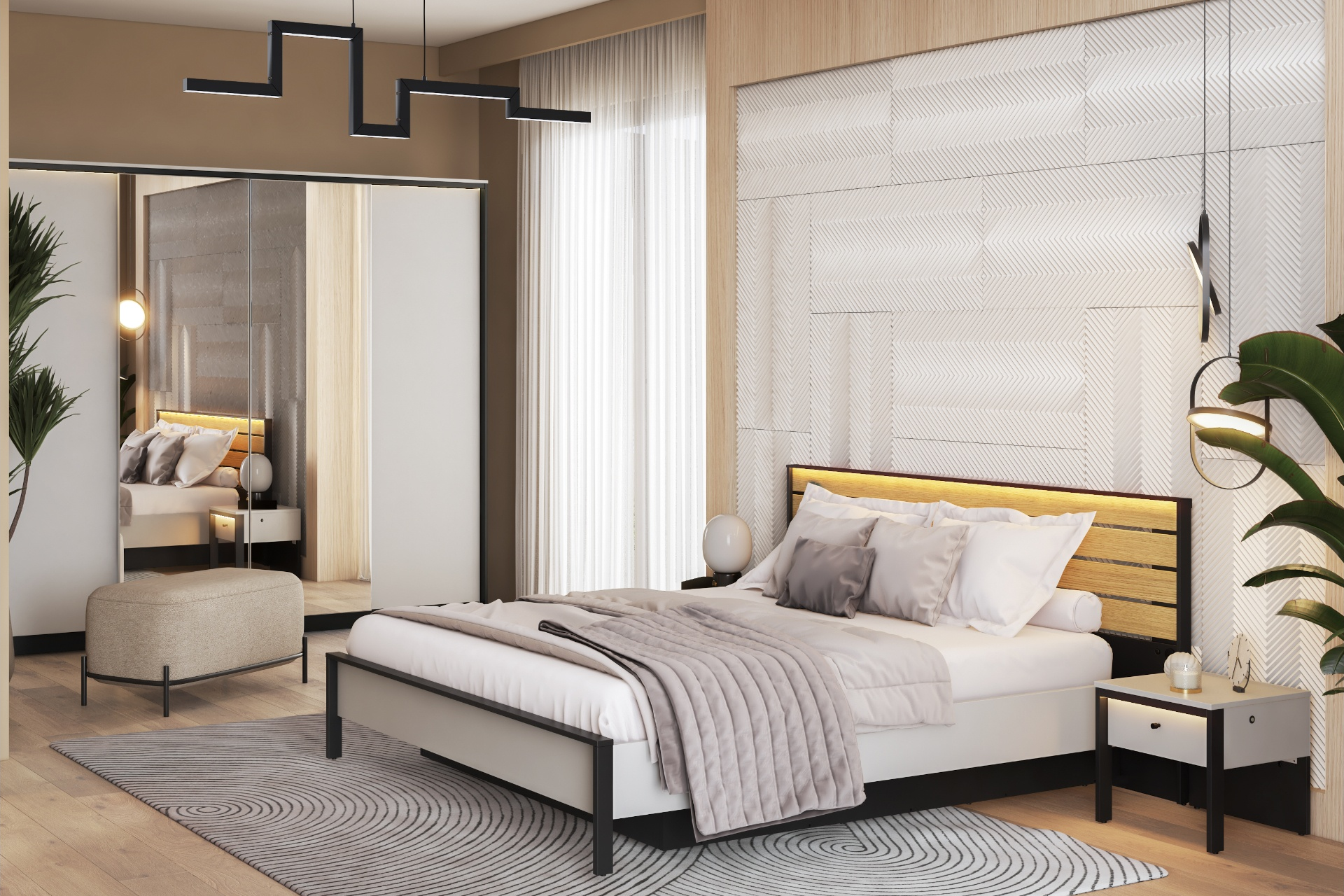 V prípade malých či dokonca stiesnených miestností zabudnite na komplikovaný dizajn postele, robustné podstavy či modely s vysokým predným čelom, ktoré môže vytvoriť optickú bariéru v priestore. Radšej zvoľte jednoduché tvary a línie, zbavené nadbytočných okrasných detailov. To isté platí aj pre samotné šatníkové skrine. Siahnite po jednoduchej farebnej úprave, drevenom dekore bez výraznej kresby či dvierkach doplnených o veľké zrkadlo, ktoré spálňu opticky zväčší. Platí, že čím univerzálnejšie sa dajú jednotlivé kusy nábytku použiť a čím viac skrytých úložných priestorov ponúkajú, tým ideálnejšie budú pre vašu malú spálňu.