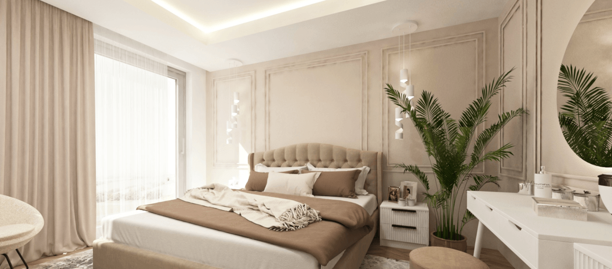 Béžová farba patrí medzi najobľúbenejšie pri navrhovaní spální, a to z viacerých dôvodov. Jej prirodzená elegancia a nadčasový charakter umožňujú vytvoriť harmonický a príjemný priestor, ktorý pôsobí teplo, útulne a uvoľňujúco. Táto neutrálnosť zároveň poskytuje veľkú flexibilitu pri kombinovaní s rôznymi odtieňmi, materiálmi či doplnkami. Béžová môže pôsobiť sofistikovane v spojení so zlatými alebo čiernymi akcentmi. Vďaka svojmu upokojujúcemu charakteru je ideálnou voľbou do spálne, keďže podporuje relaxáciu.