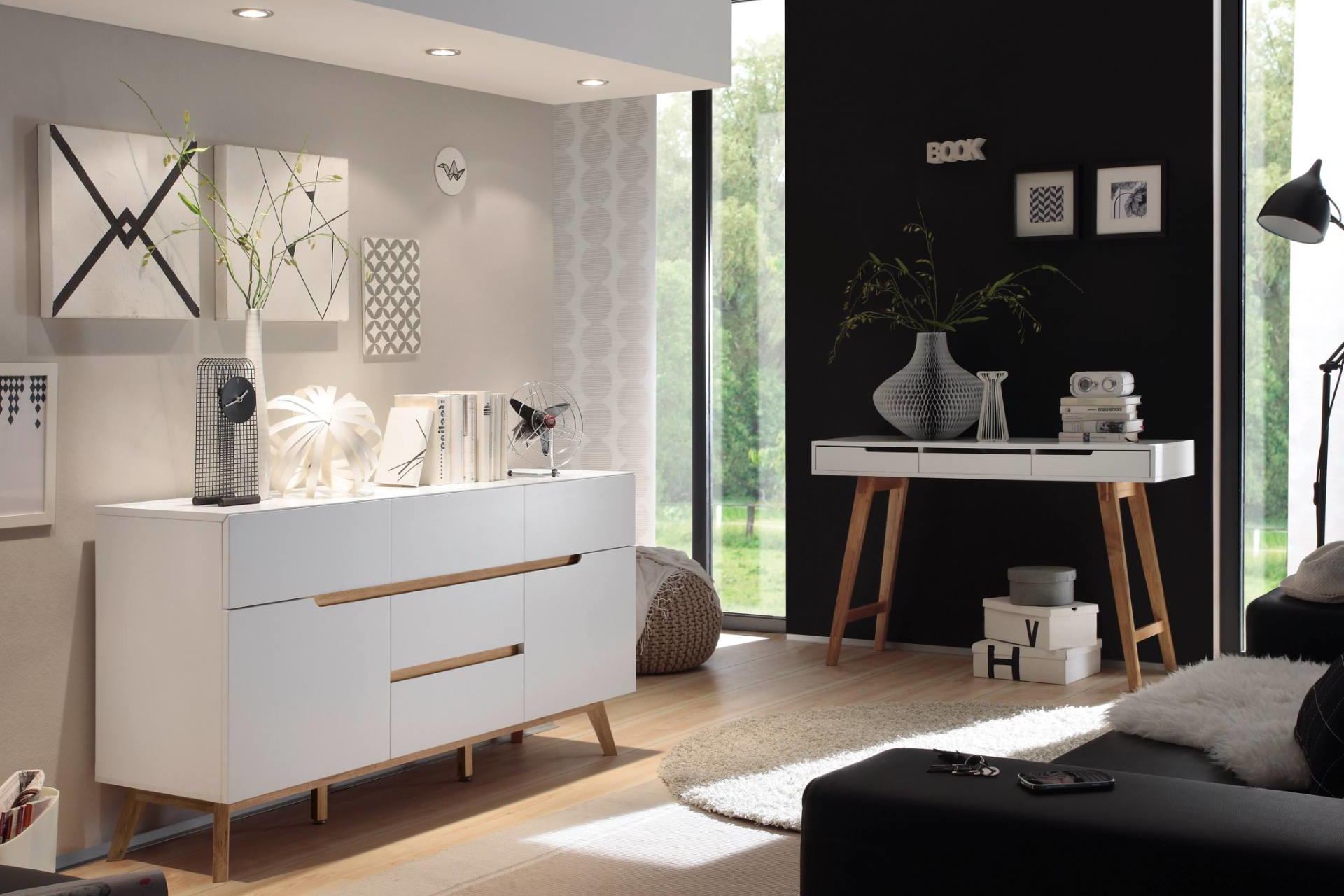 Doplnky tvoria domov. Škandinávsky interiér neuznáva holé steny – nezaobídete sa bez plagátov, grafík, čierno-bielych skíc a umeleckých diel. Monochromatické ladenie (v rôznych tónoch jednej farby) dodá priestoru sofistikovanosť a eleganciu.