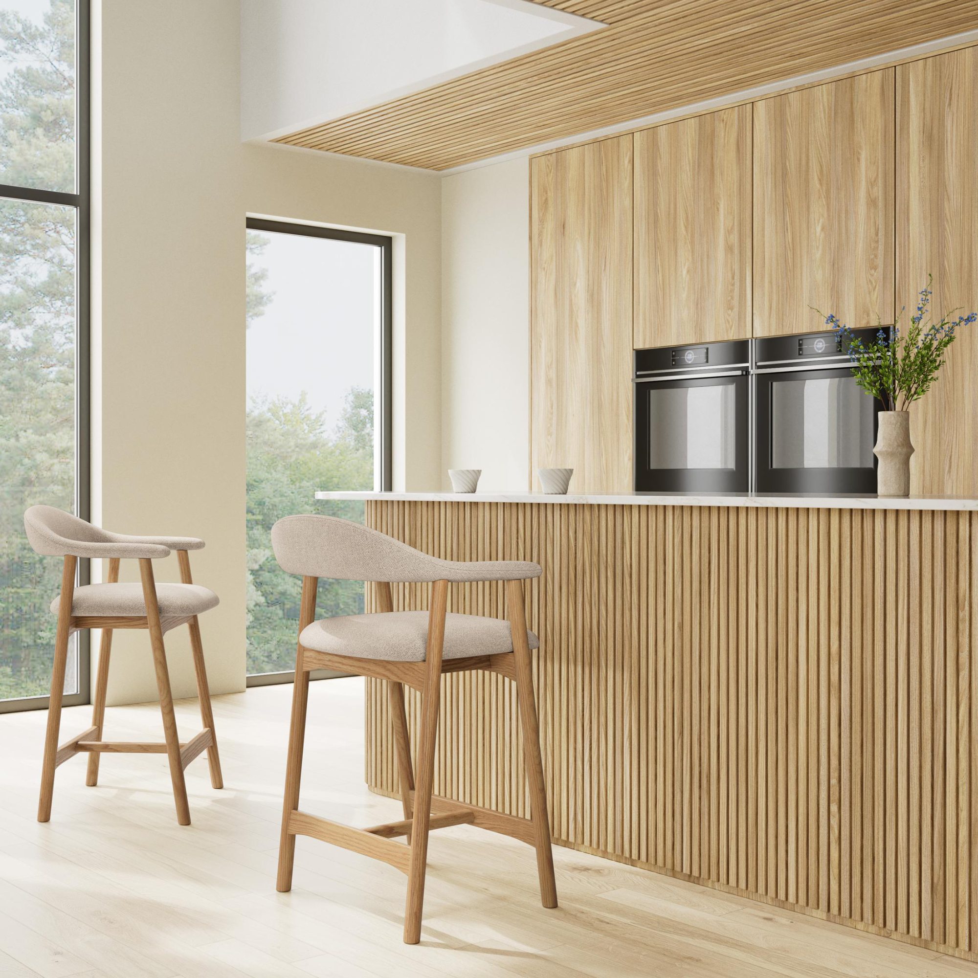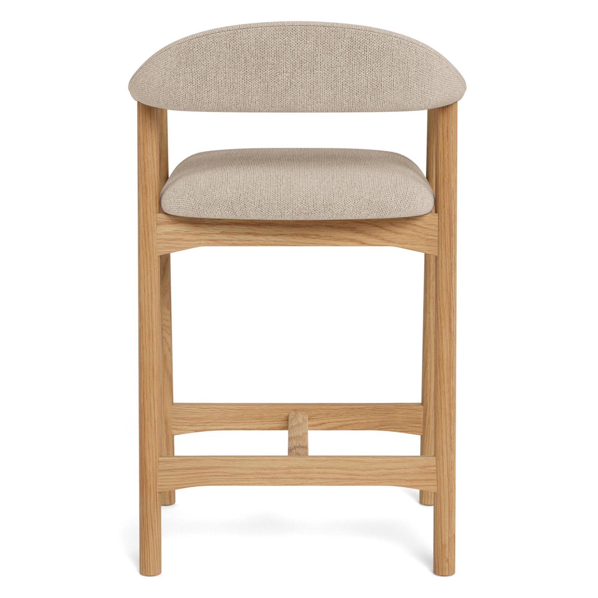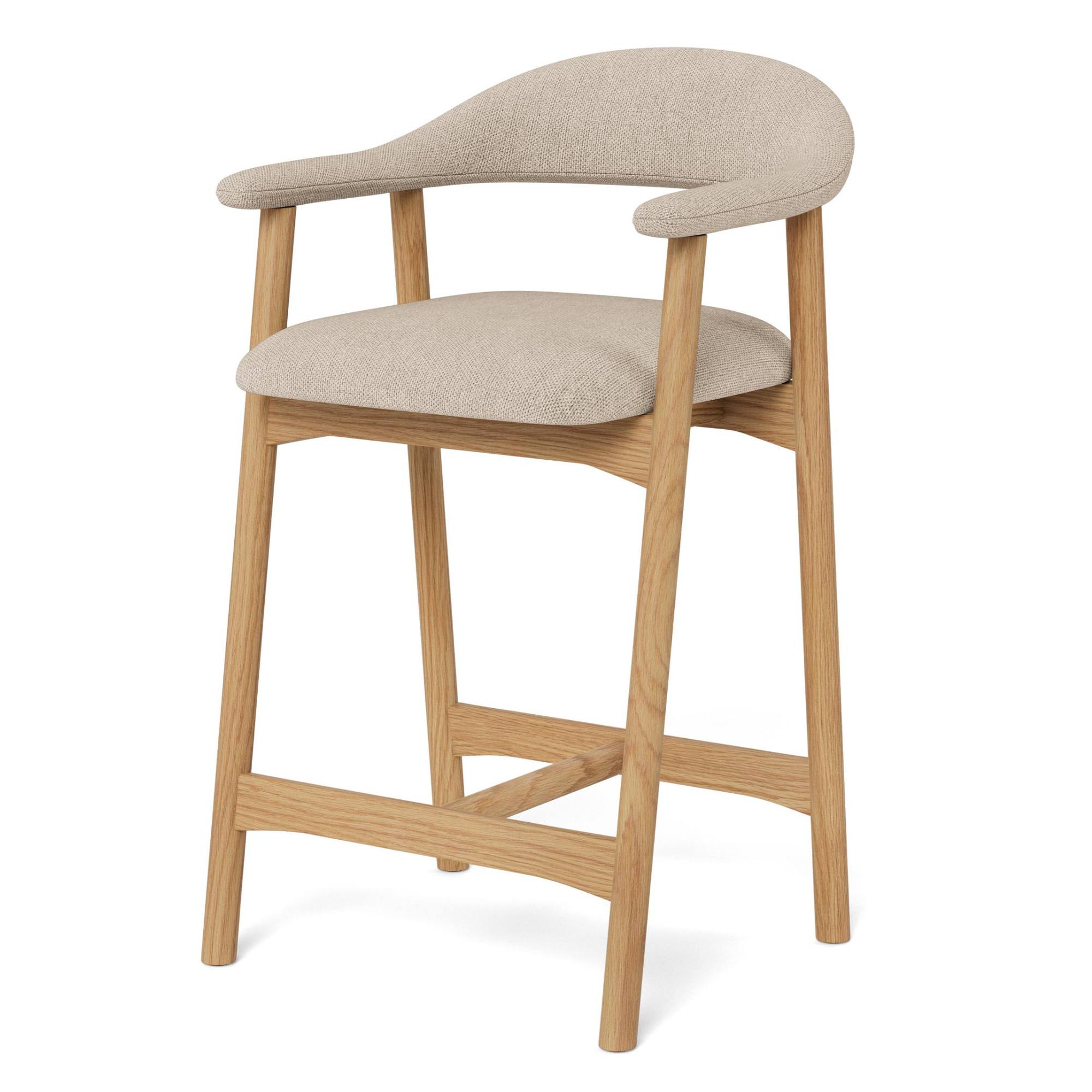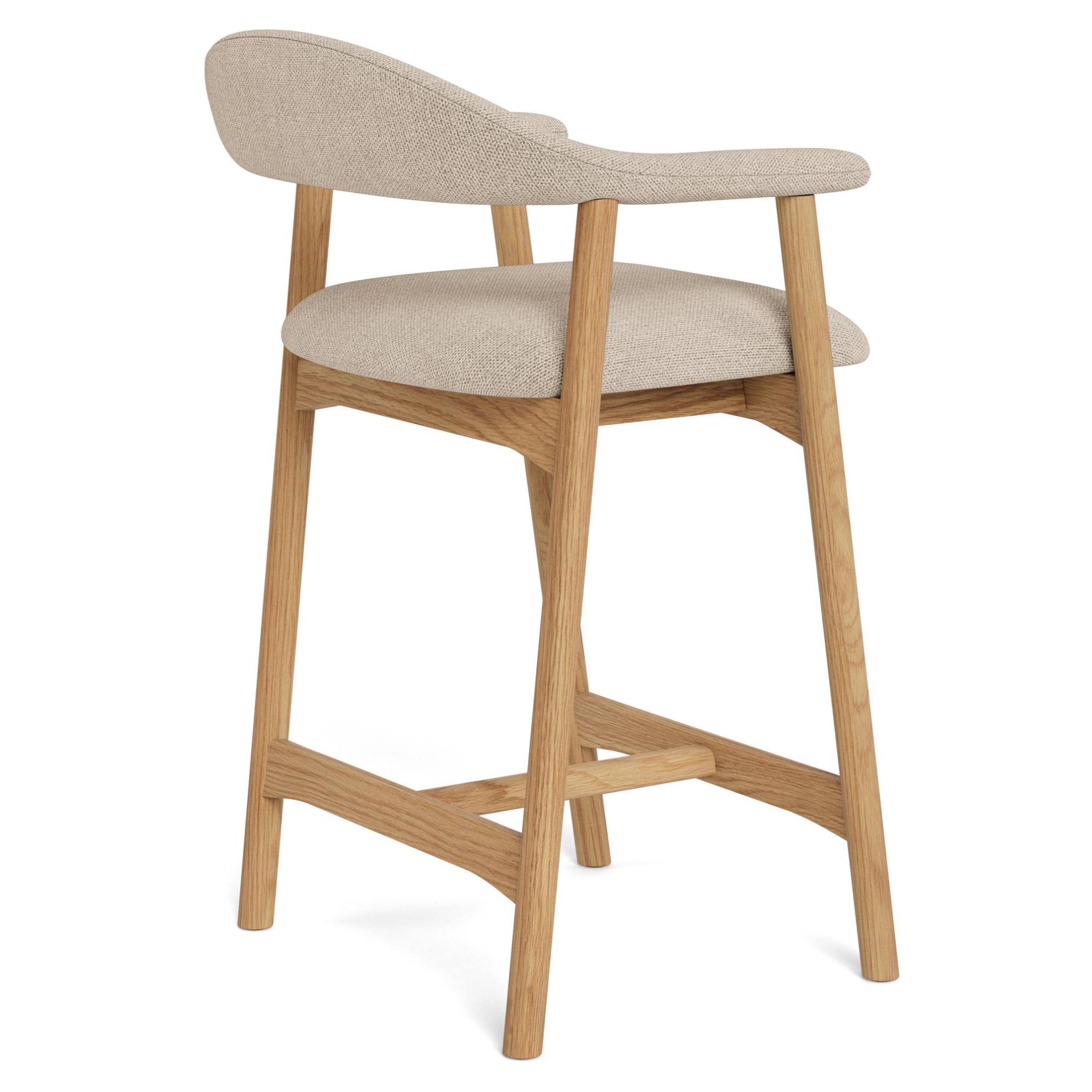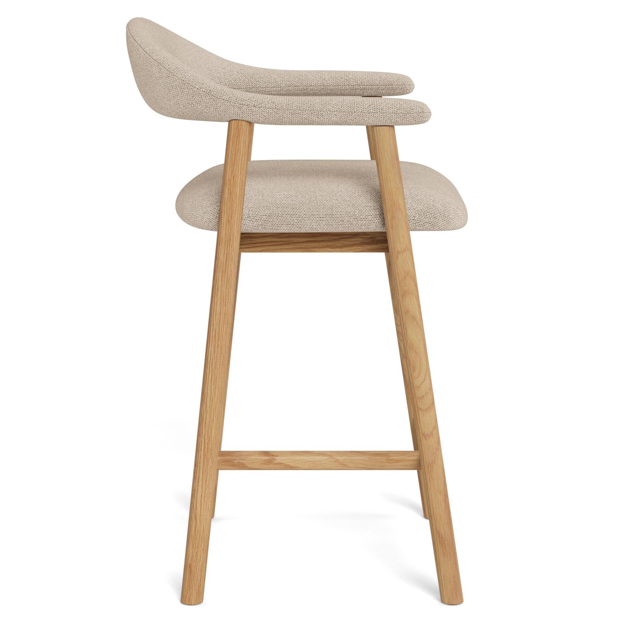 Barová stolička ADDI je čalúnená hladkou tkaninou príjemnou na dotyk.