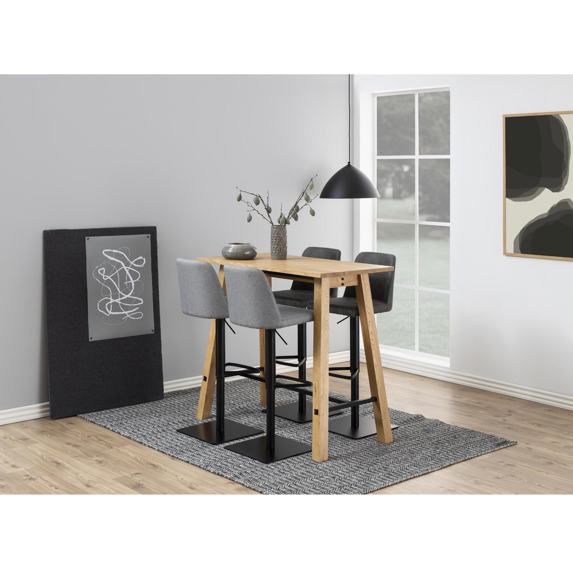 Táto elegantná a moderná barová stolička AVANJA ponúka nielen štýlový vzhľad, ale aj pohodlie a funkčnosť. Sivé čalúnenie z mäkkej tkaniny z mikrovlákna sa hodí do každého typu interiéru.