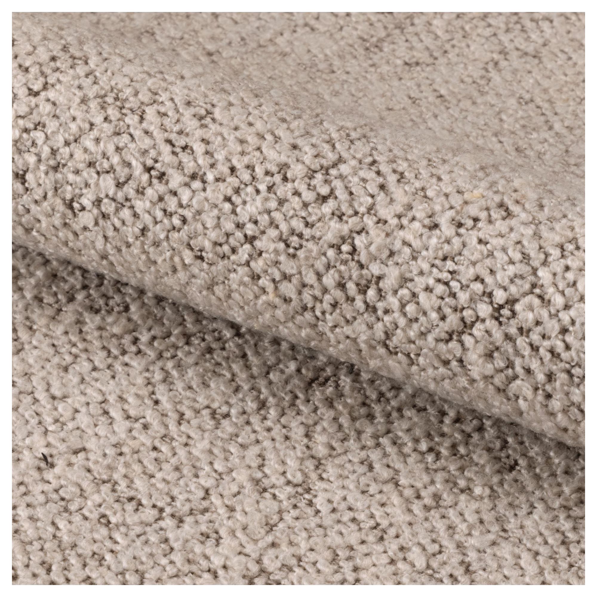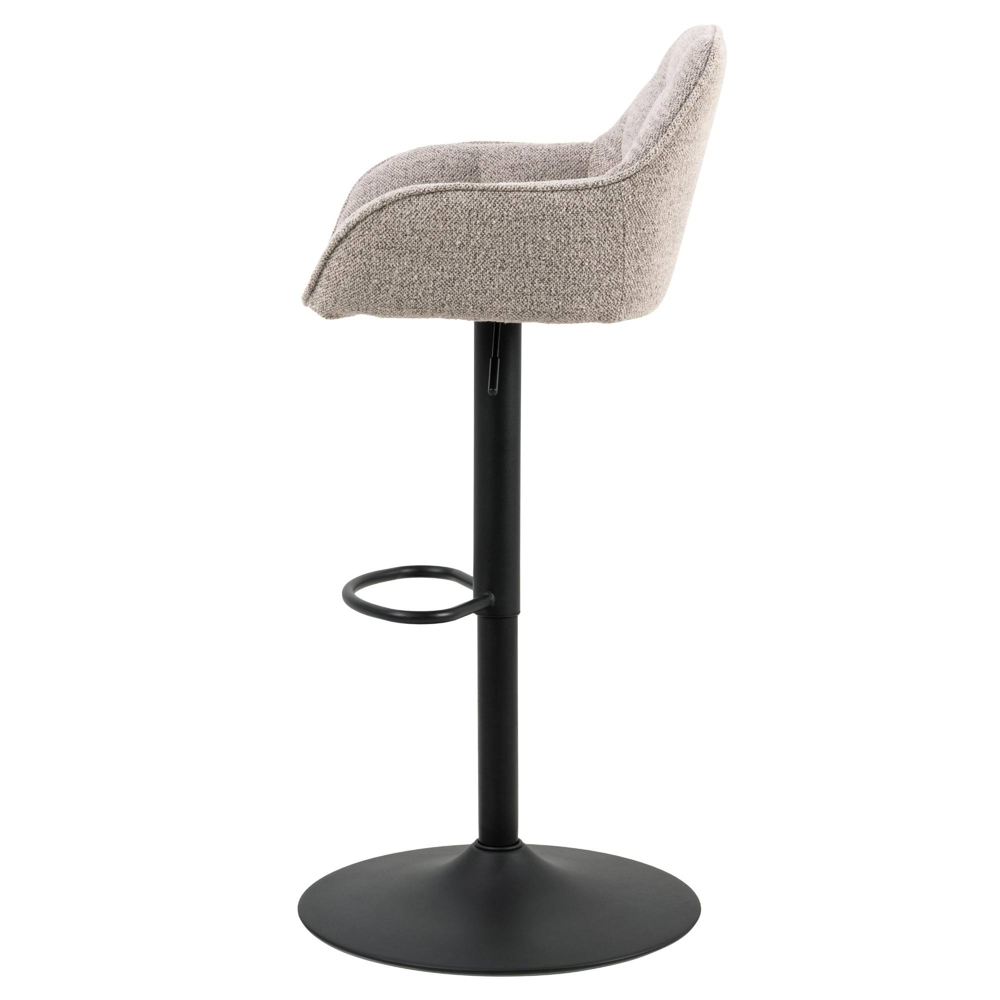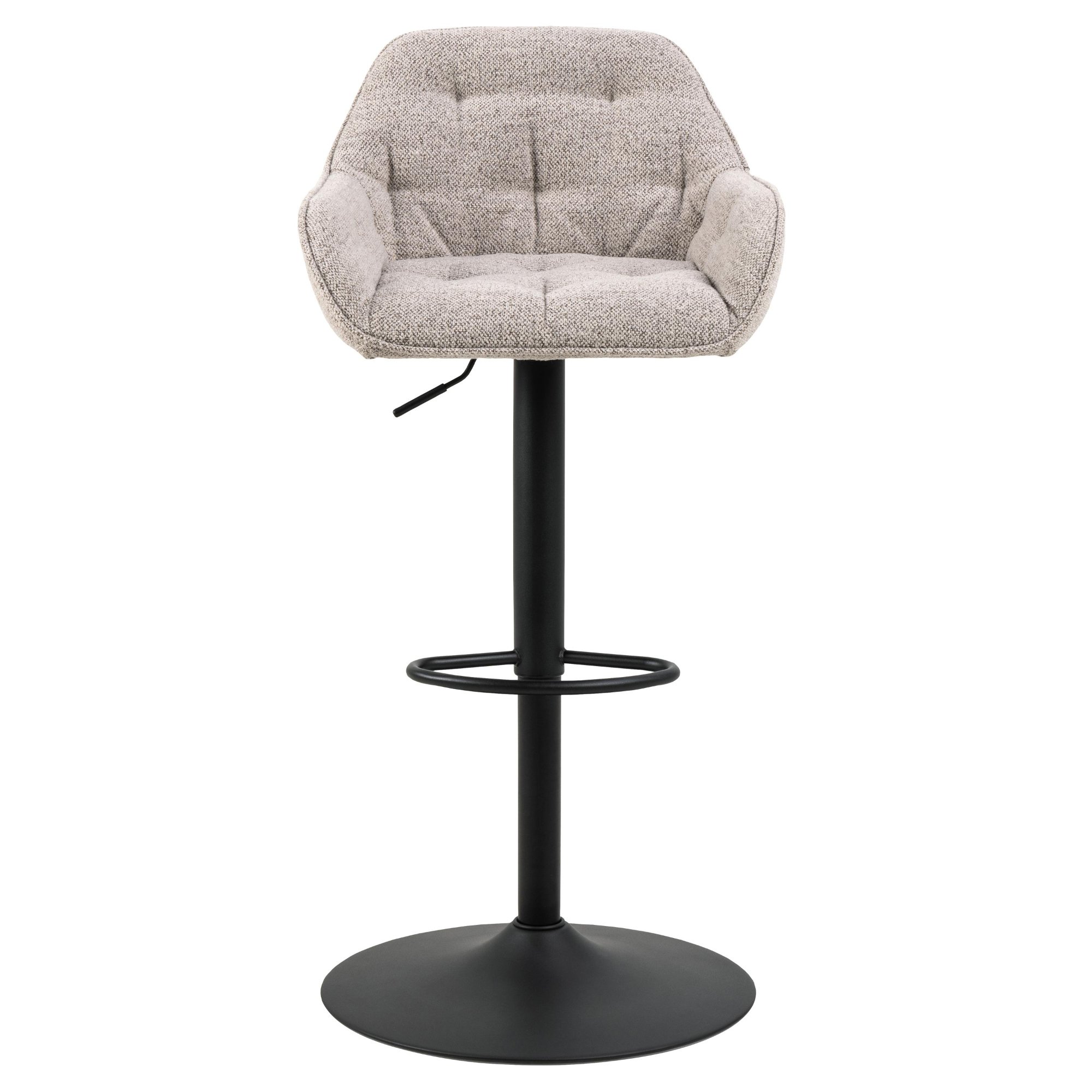 Komfortné sedadlo je spolu s nižším chrbtovým operadlom a podrúčkami čalúnené látkou typu bouclé s príjemnou štruktúrou. Minimalistický vzhľad stoličky ozvláštňujú dekoratívne detaily poťahu, ktoré vytvárajú nadýchaný vzhľad. Sedacia časť je posadená na oceľovej základni, ktorá zaisťuje potrebnú stabilitu a oporu. Vybavená je opierkou na odloženie unavených nôh a komfortnejšie sedenie. Disponuje tiež otočným kĺbom a plynovým zdvihom, vďaka ktorému si môžete nastaviť výšku sedu v rozmedzí 63-84 cm a prispôsobiť tak stoličku vašim potrebám.
