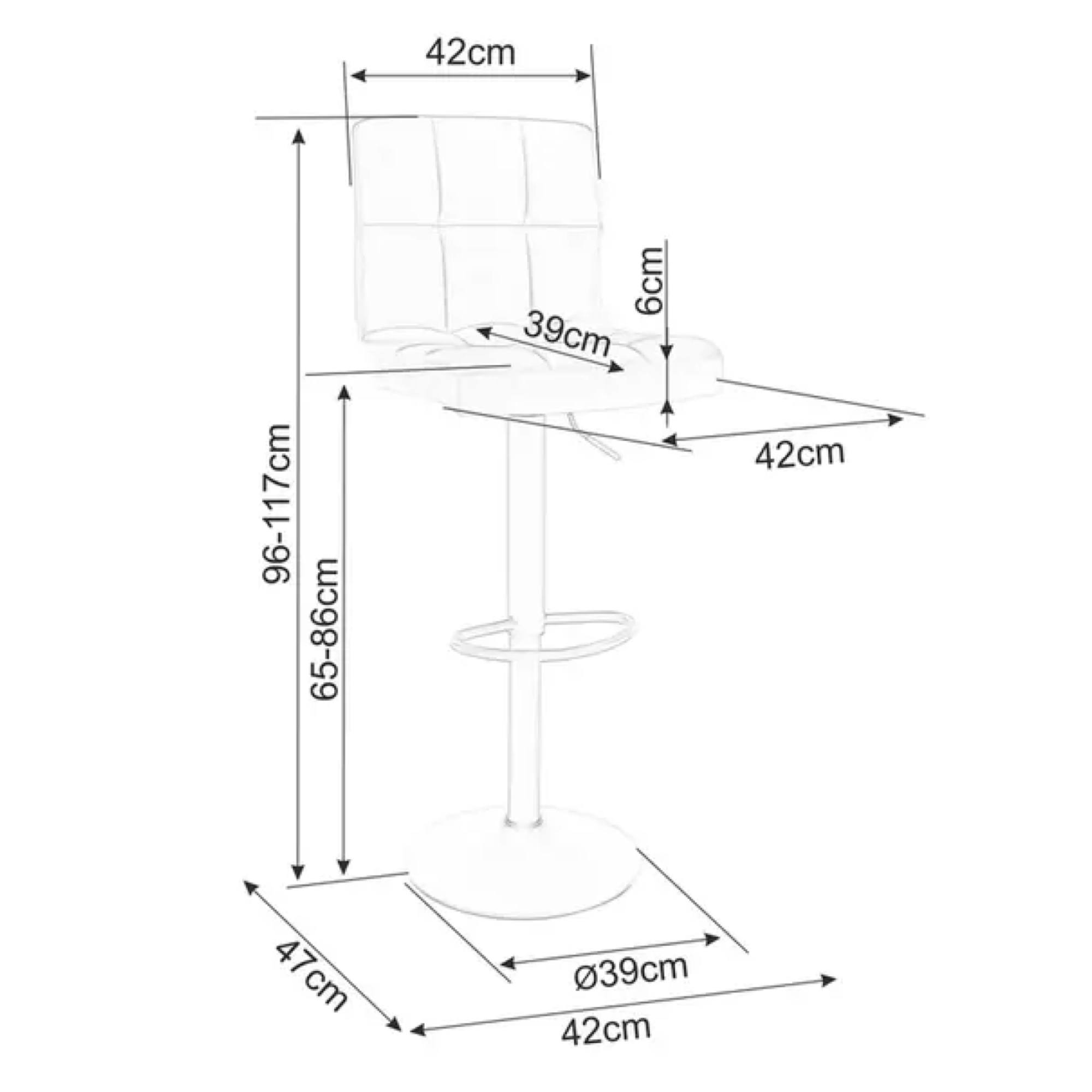Konštrukcia tejto stoličky je vyrobená z kovu. Jej výška je nastaviteľná v rozmedzí od 96 do 117 cm, pričom výška sedu môže byť minimálne 65 a maximálne 86 cm. Aby sa na stoličke príjemne sedelo, je vybavená pohodlným penovým sedadlom potiahnutým hladkou tkaninou zamatového typu aj opierkou na nohy.