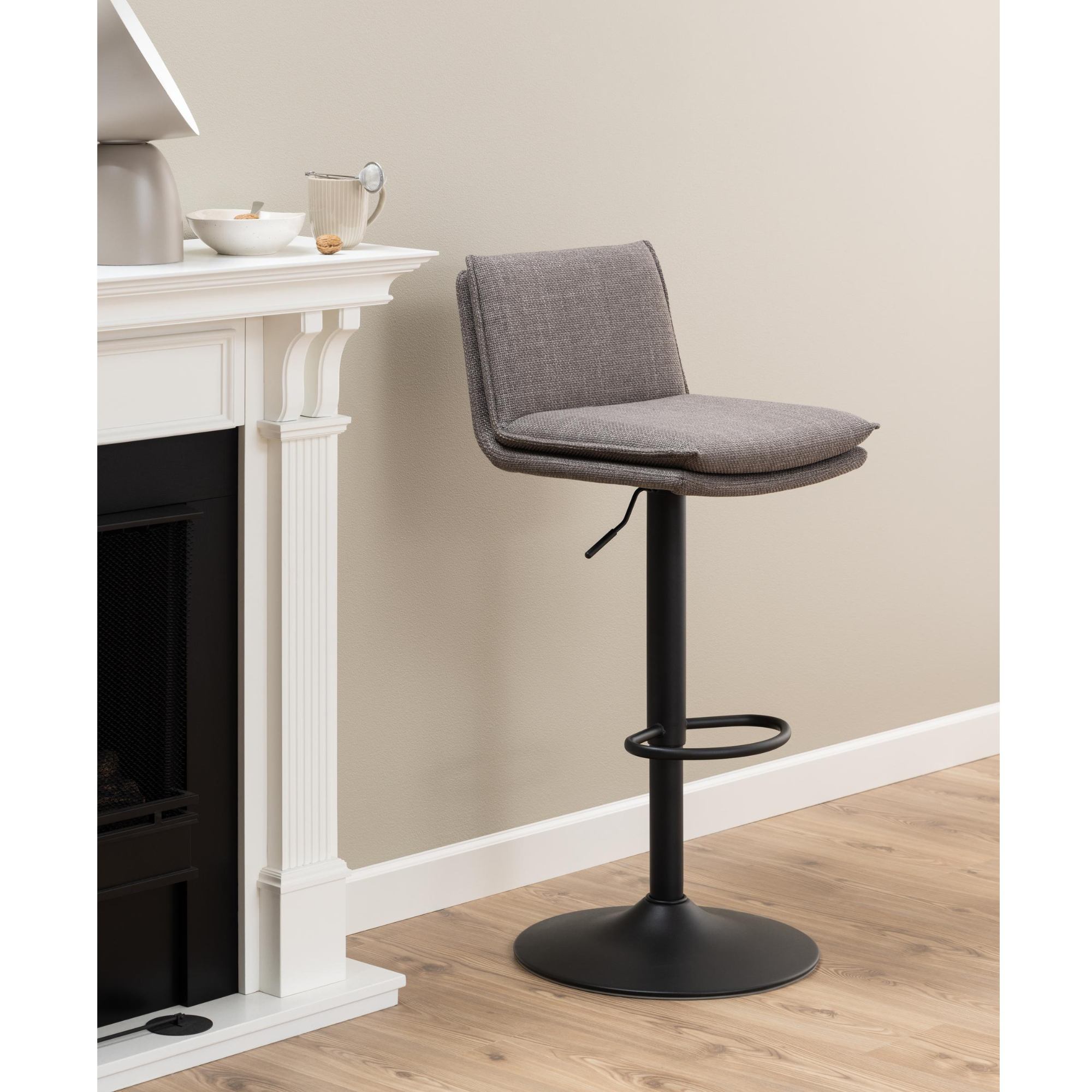 Za svoju stabilitu vďačí táto stolička pevnej nohe vyrobenej z kovu. Mäkké penové sedadlo je potiahnuté hladkou tkaninou príjemnou na dotyk. K pohodliu pri sedení prispieva aj praktická opierka na nohy. Stolička má nastaviteľnú výšku sedu a disponuje tiež otočnou funkciou.