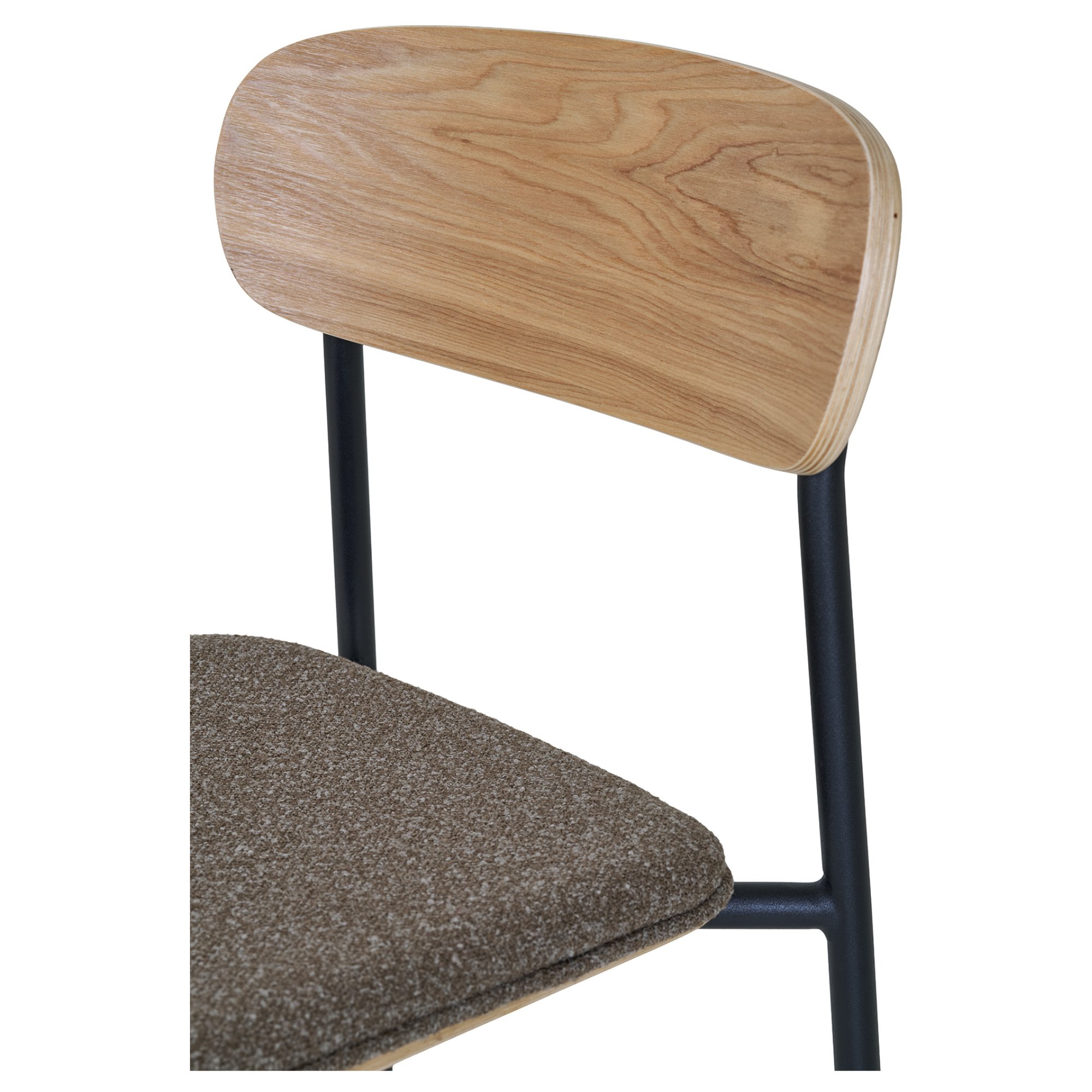 Stabilitu stoličky zaisťuje pevná oceľová konštrukcia v čiernej farbe. Tá je doplnená o opierku z kvalitnej drevenej preglejky jaseňa a pohodlný čalúnený sedák zo 100 % polyesteru. Stolička disponuje okrem chrbtovej opierky aj opierkou na nohy, čo prispieva k zvýšeniu komfortu pri sedení.