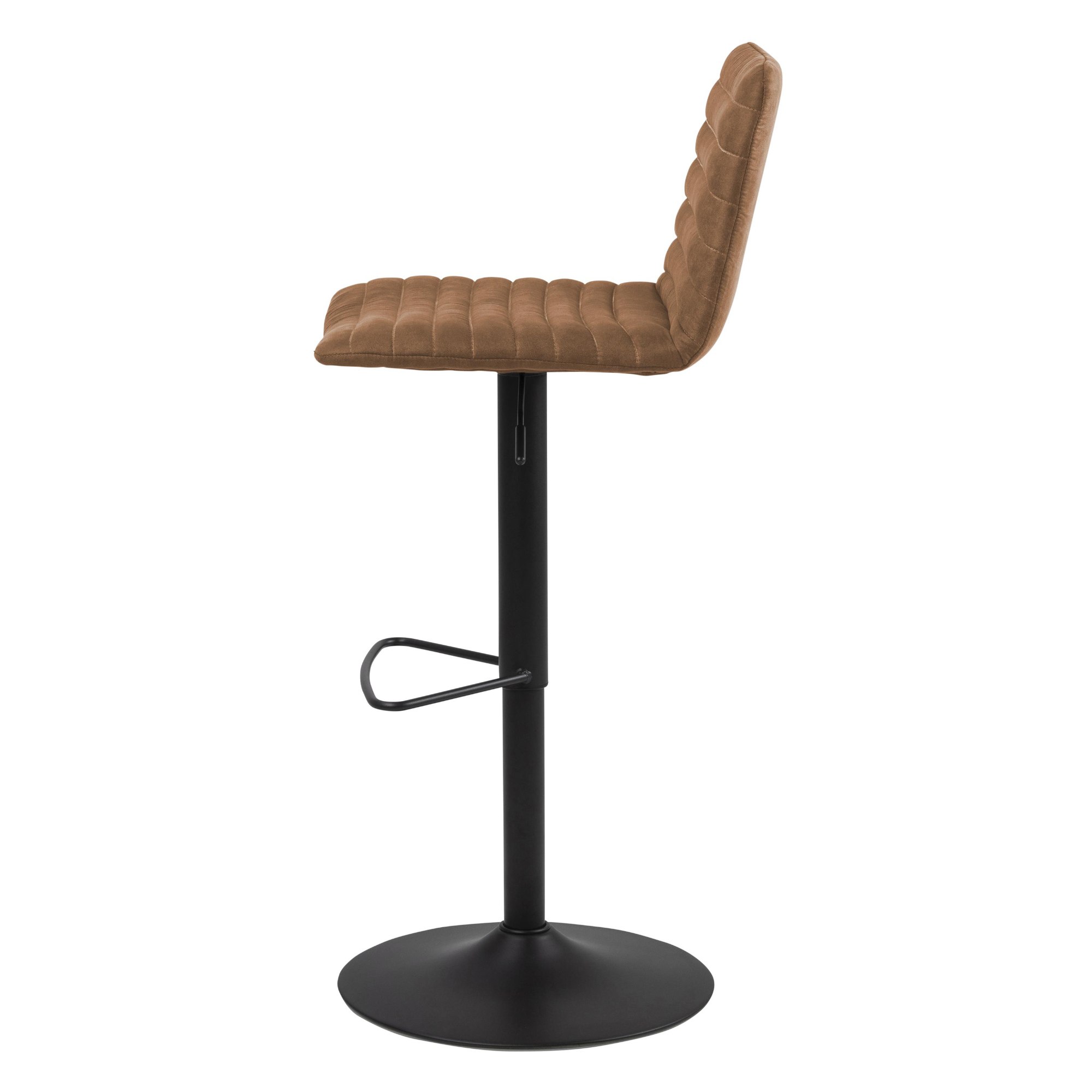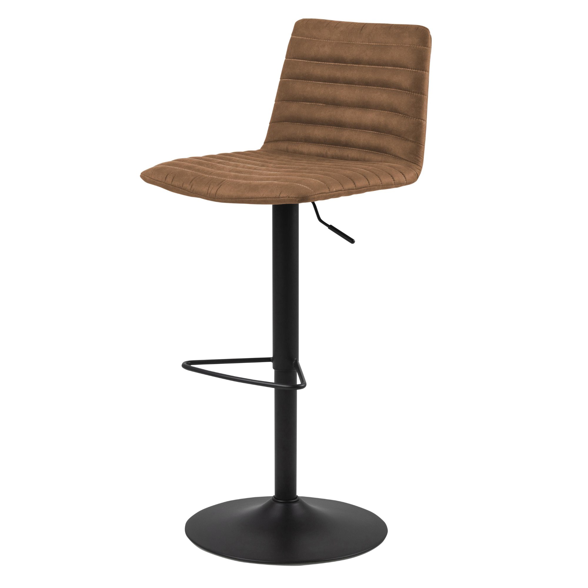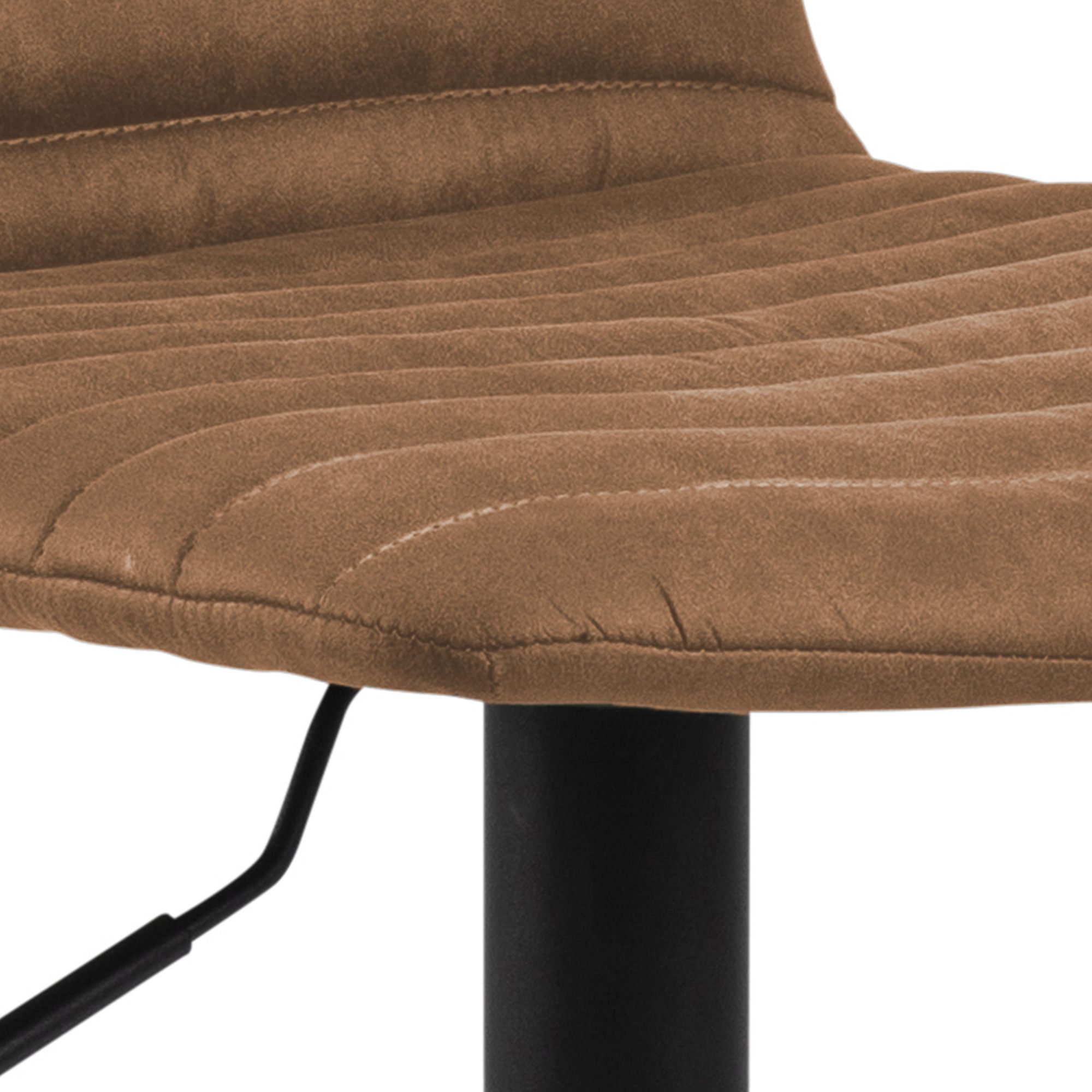 Za svoju stabilitu vďačí táto stolička pevnej nohe vyrobenej z kovu. Mäkké penové sedadlo je potiahnuté hladkou tkaninou, ktorá je príjemná na dotyk a ktorú zdobí štýlové prešívanie. K pohodliu pri sedení prispieva aj praktická opierka na nohy. Stolička má nastaviteľnú výšku sedu a disponuje tiež otočnou funkciou.