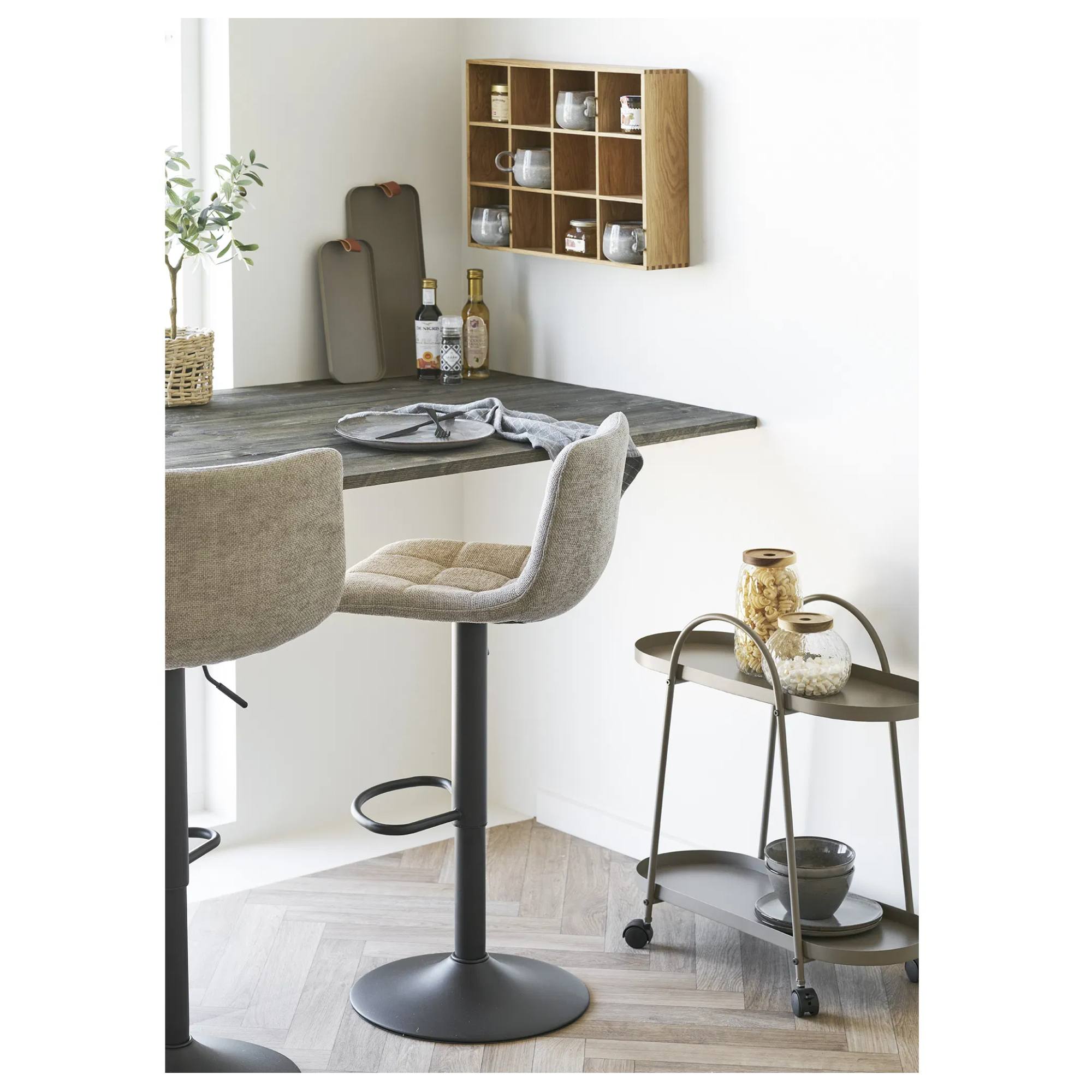 Barová stolička MADDILFORT umožňuje nastavenie výšky sedu v rozmedzí od 61 do 82 cm. Jej celková výška tak môže byť minimálne 88 a maximálne 108 cm.