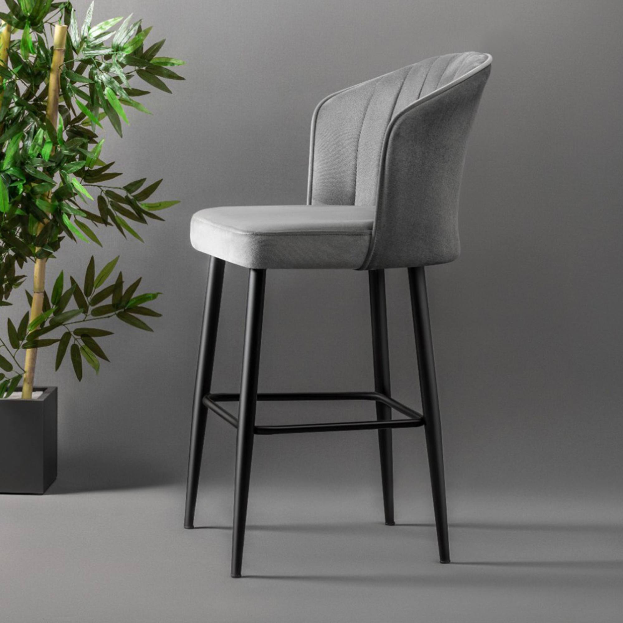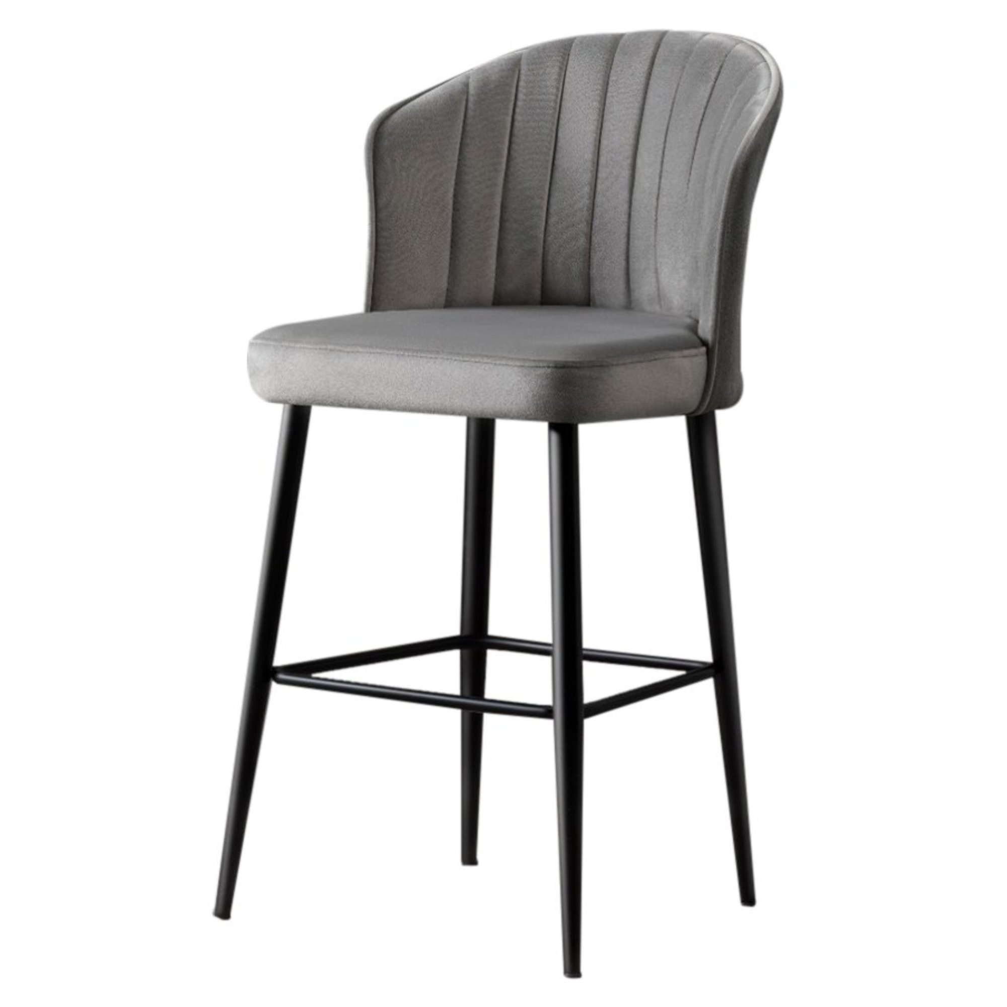 Barové stoličky RUBI 3 sú čalúnené hladkou tkaninou a zdobí ich elegantné prešívanie.