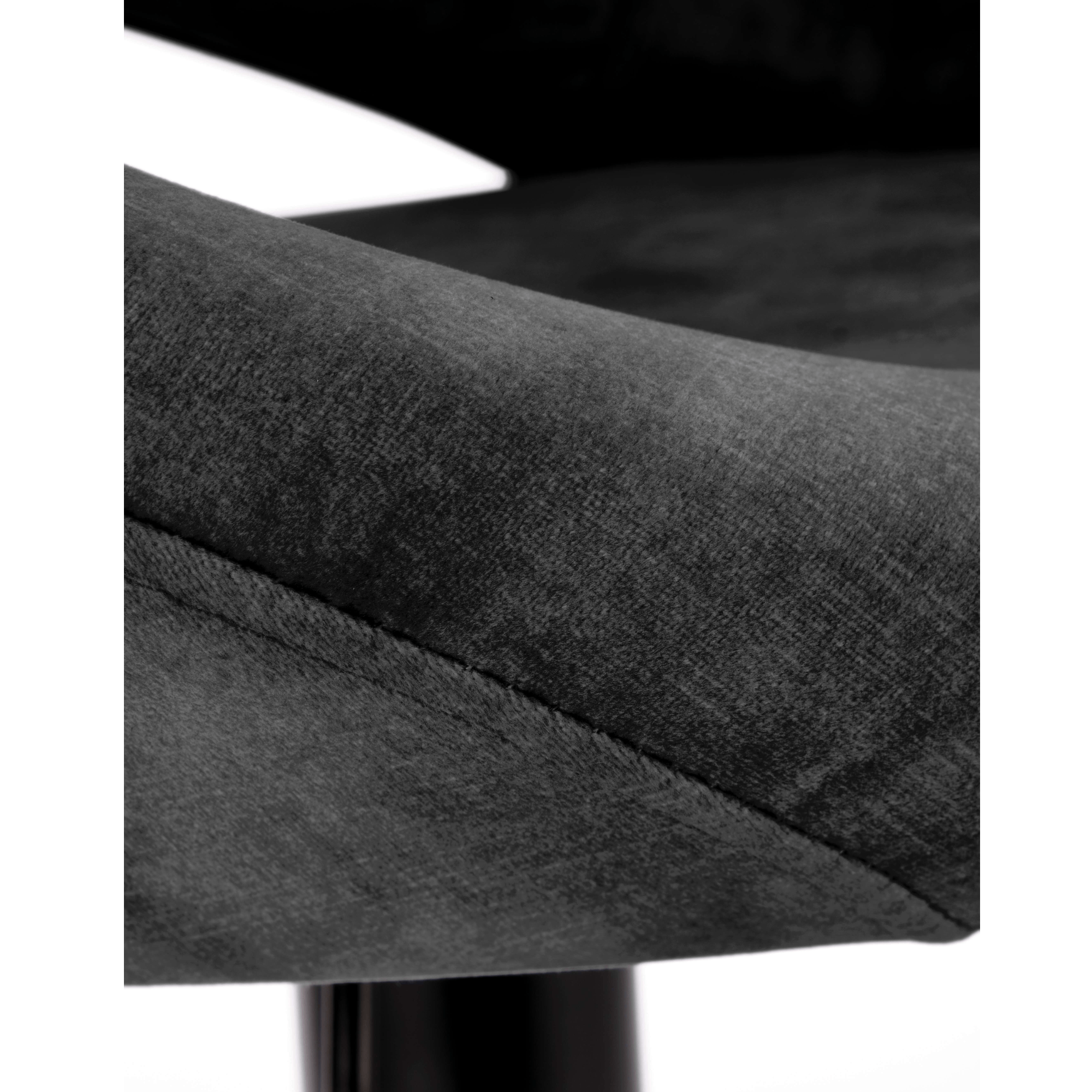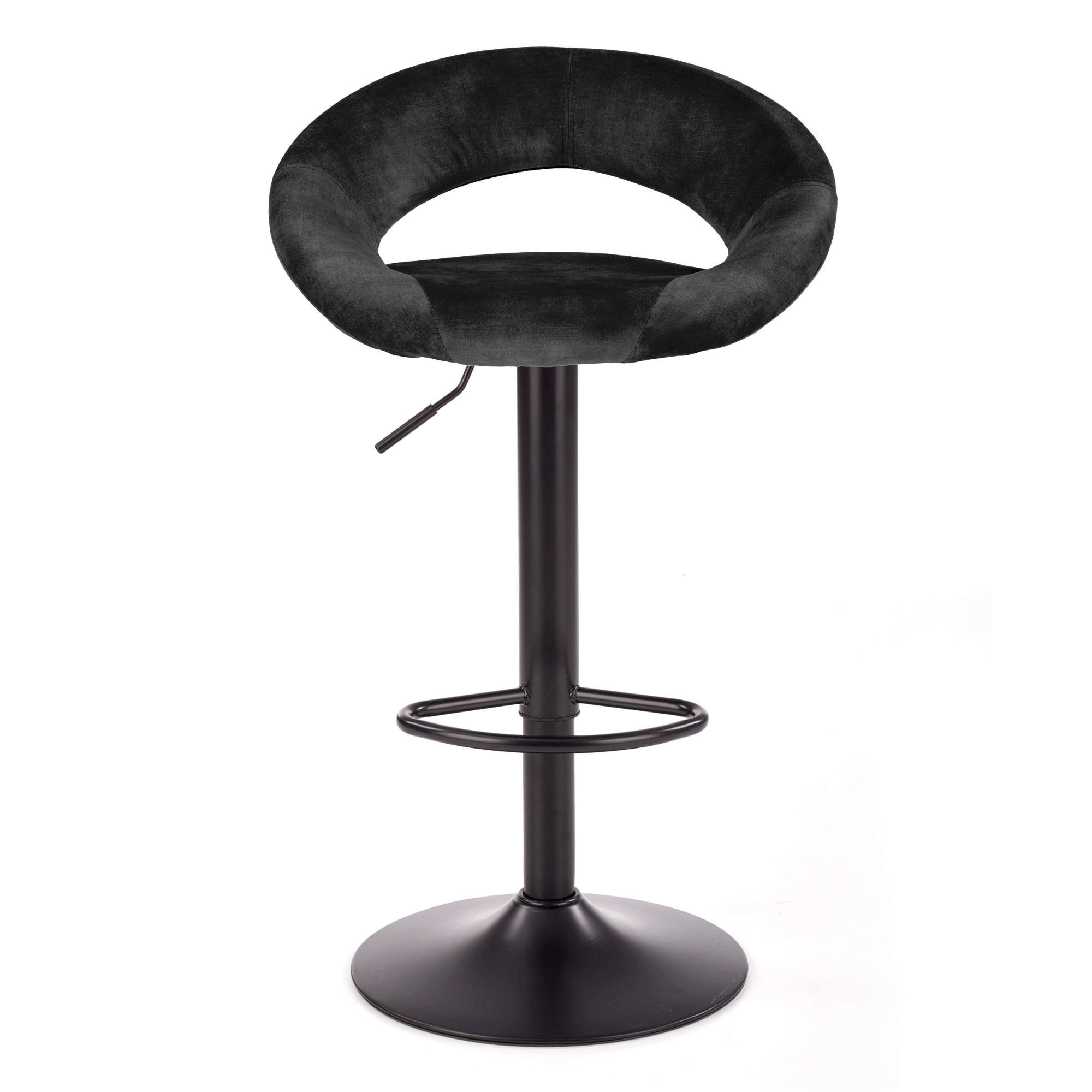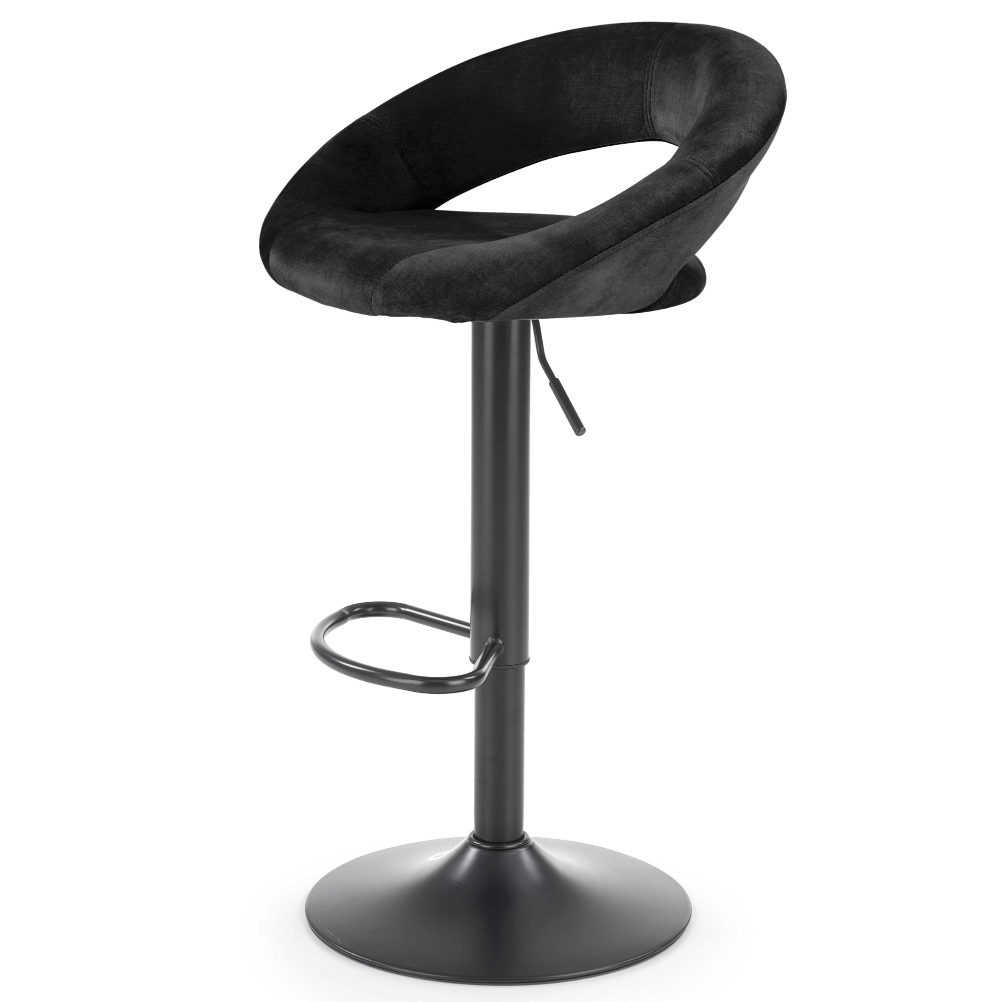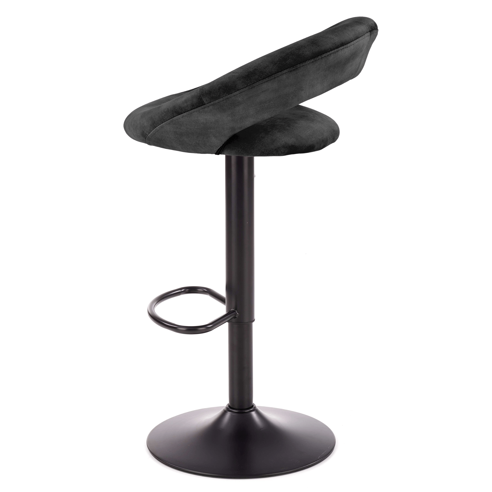 Maximálne pohodlie zaisťuje komfortné sedadlo a chrbtová opierka s príjemným čalúnením z tkaniny zamatového vzhľadu. Stabilitu obstaráva kovová stredná noha na veľkej okrúhlej základni. Vybavená je podnožkou, ktorá vysoký komfort len zvýrazňuje. Stolička je výškovo nastaviteľná na výšku sedu až 84 cm. Výrez chrbtovej opierky navyše plní nielen dekoratívnu funkciu, ale poslúži aj ako praktické držadlo pre ľahšiu manipuláciu.