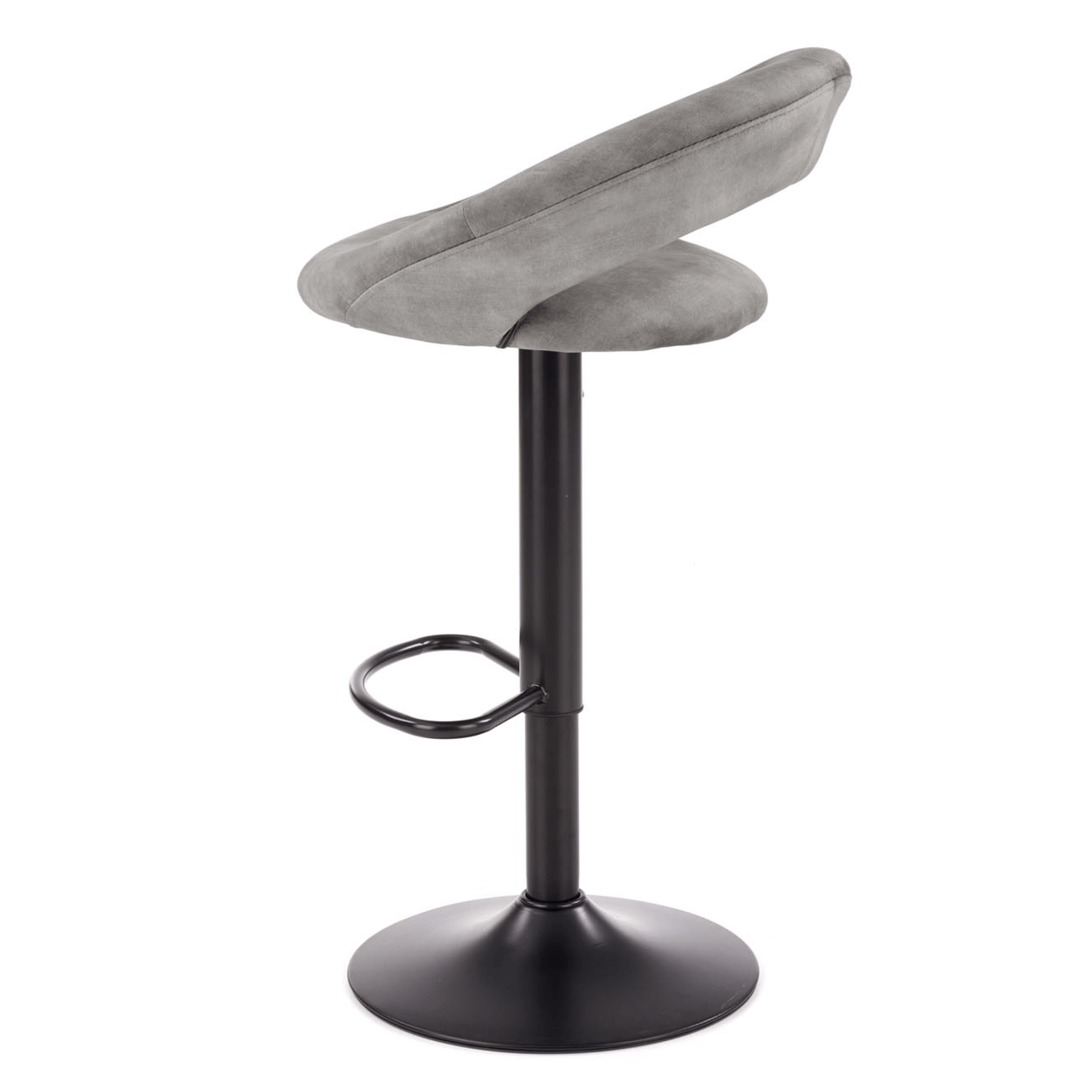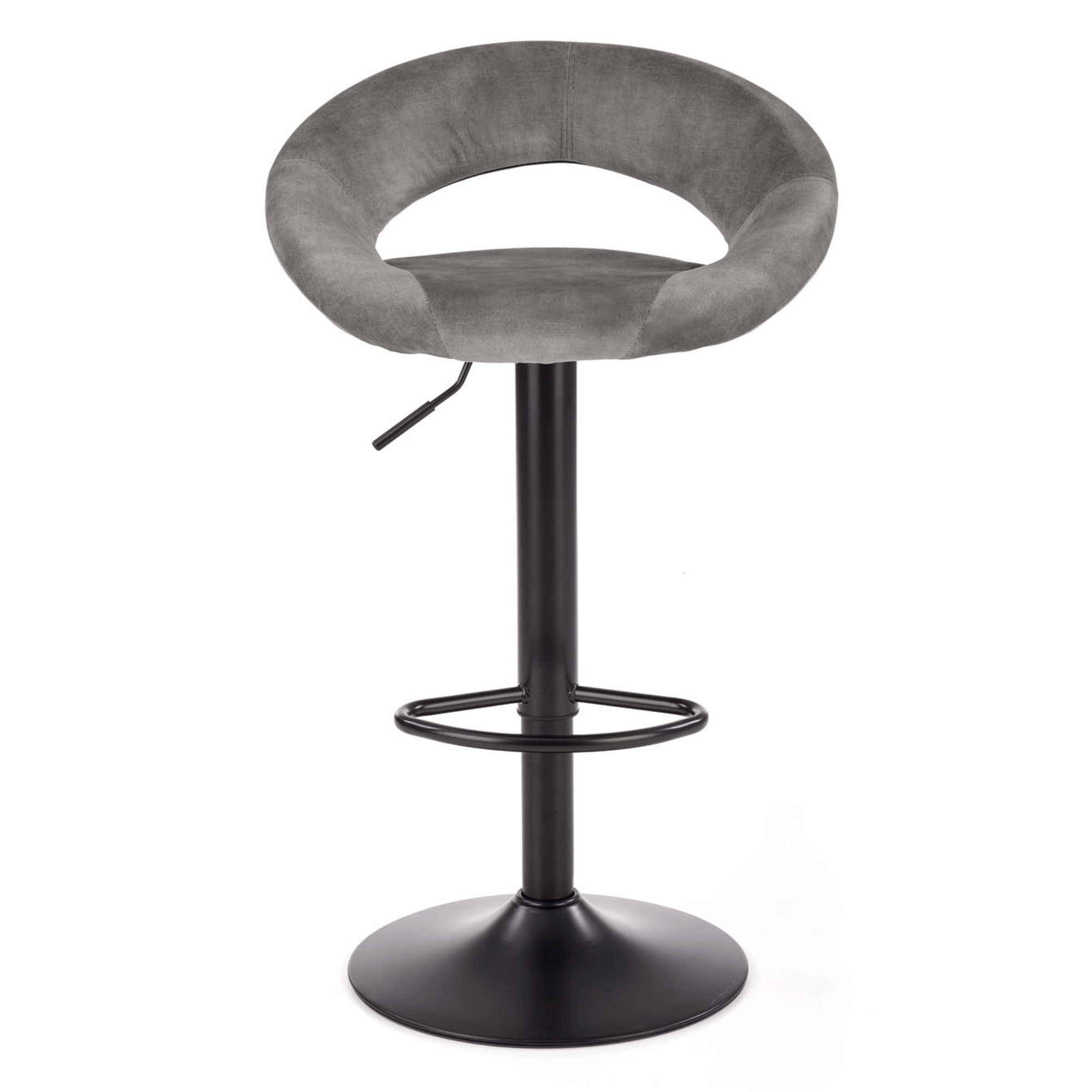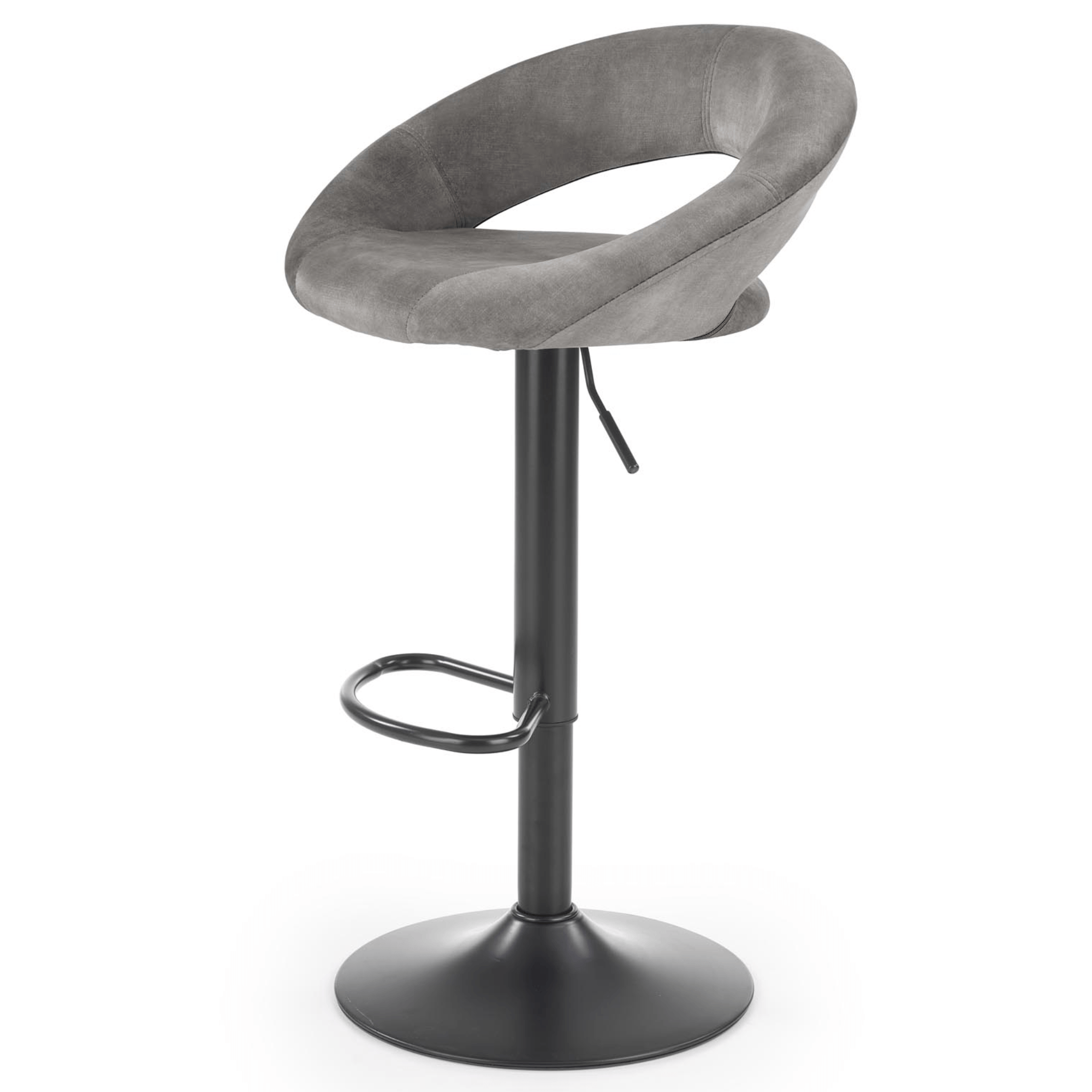 Maximálne pohodlie zaisťuje komfortné sedadlo a chrbtová opierka s príjemným čalúnením z tkaniny zamatového vzhľadu. Stabilitu obstaráva kovová stredná noha na veľkej okrúhlej základni. Vybavená je podnožkou, ktorá vysoký komfort len zvýrazňuje. Stolička je výškovo nastaviteľná na výšku sedu až 84 cm. Výrez chrbtovej opierky navyše plní nielen dekoratívnu funkciu, ale poslúži aj ako praktické držadlo pre ľahšiu manipuláciu.