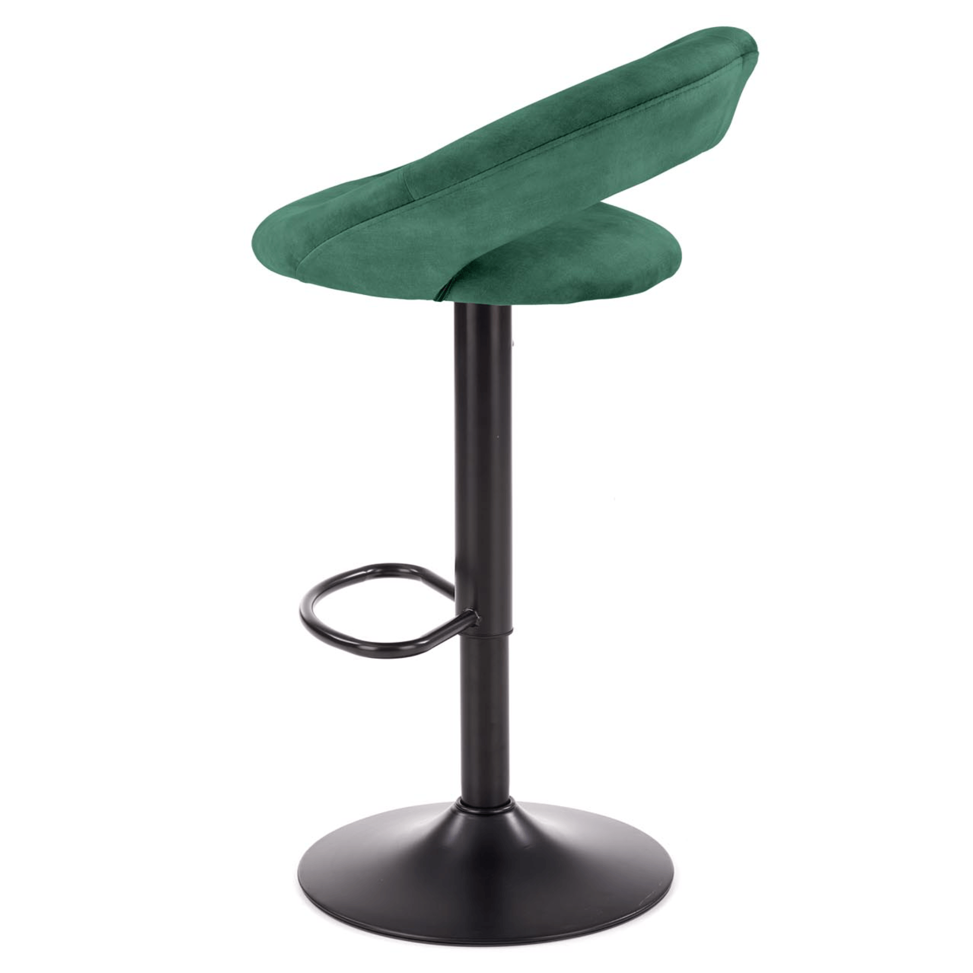 Maximálne pohodlie zaisťuje komfortné sedadlo a chrbtová opierka s príjemným čalúnením z tkaniny zamatového vzhľadu. Stabilitu obstaráva kovová stredná noha na veľkej okrúhlej základni. Vybavená je podnožkou, ktorá vysoký komfort len zvýrazňuje. Stolička je výškovo nastaviteľná na výšku sedu až 84 cm. Výrez chrbtovej opierky navyše plní nielen dekoratívnu funkciu, ale poslúži aj ako praktické držadlo pre ľahšiu manipuláciu.