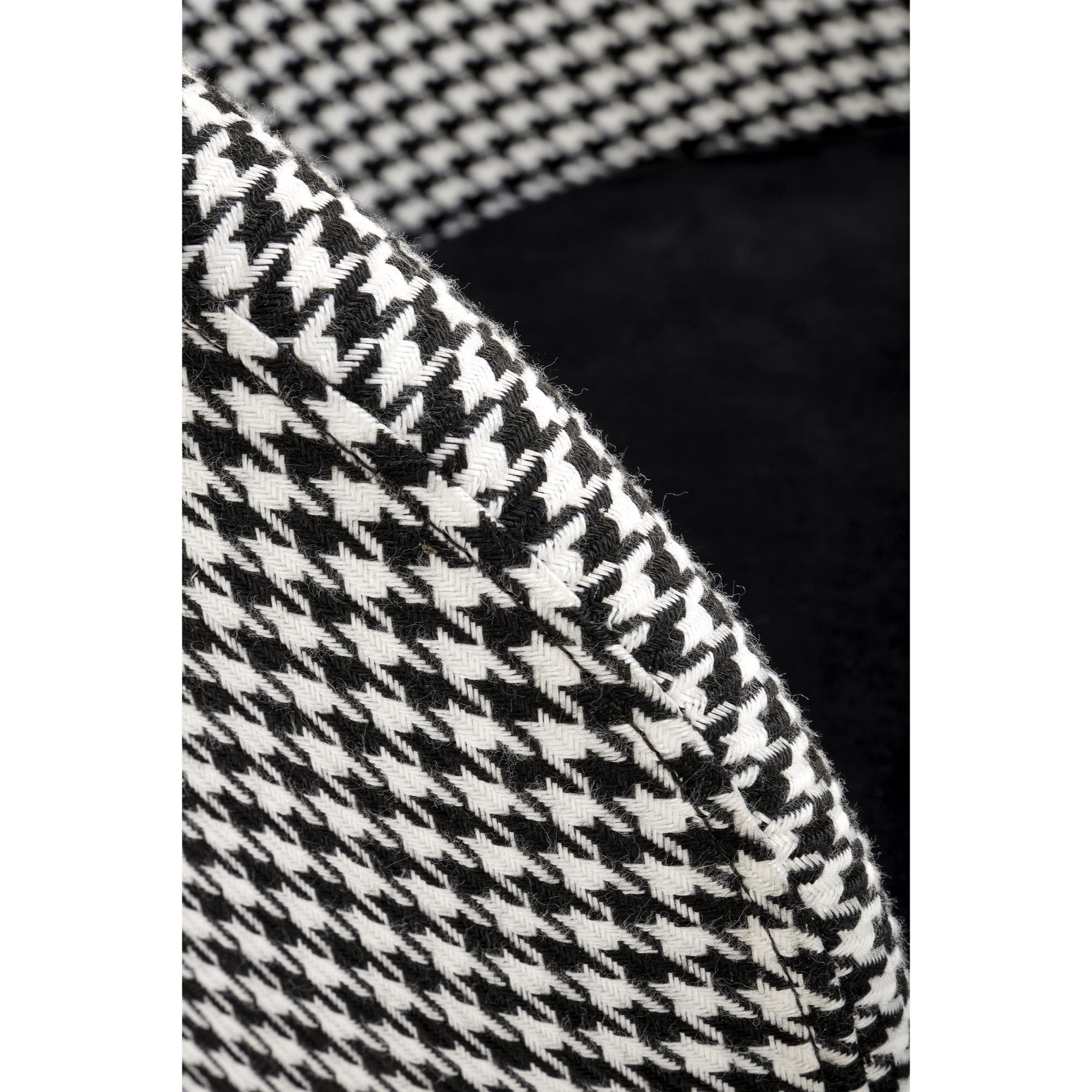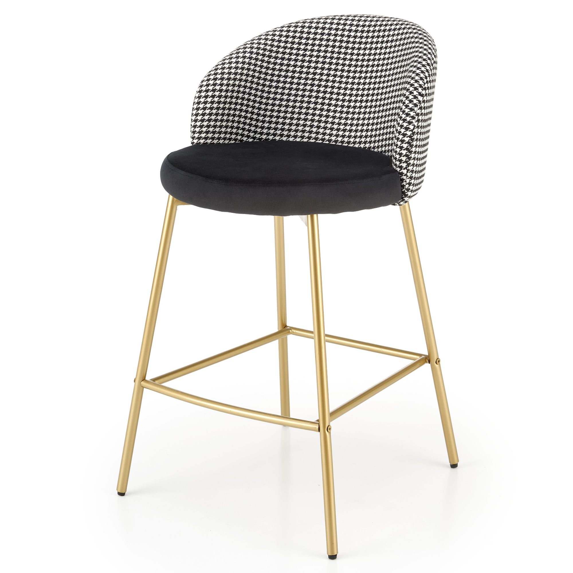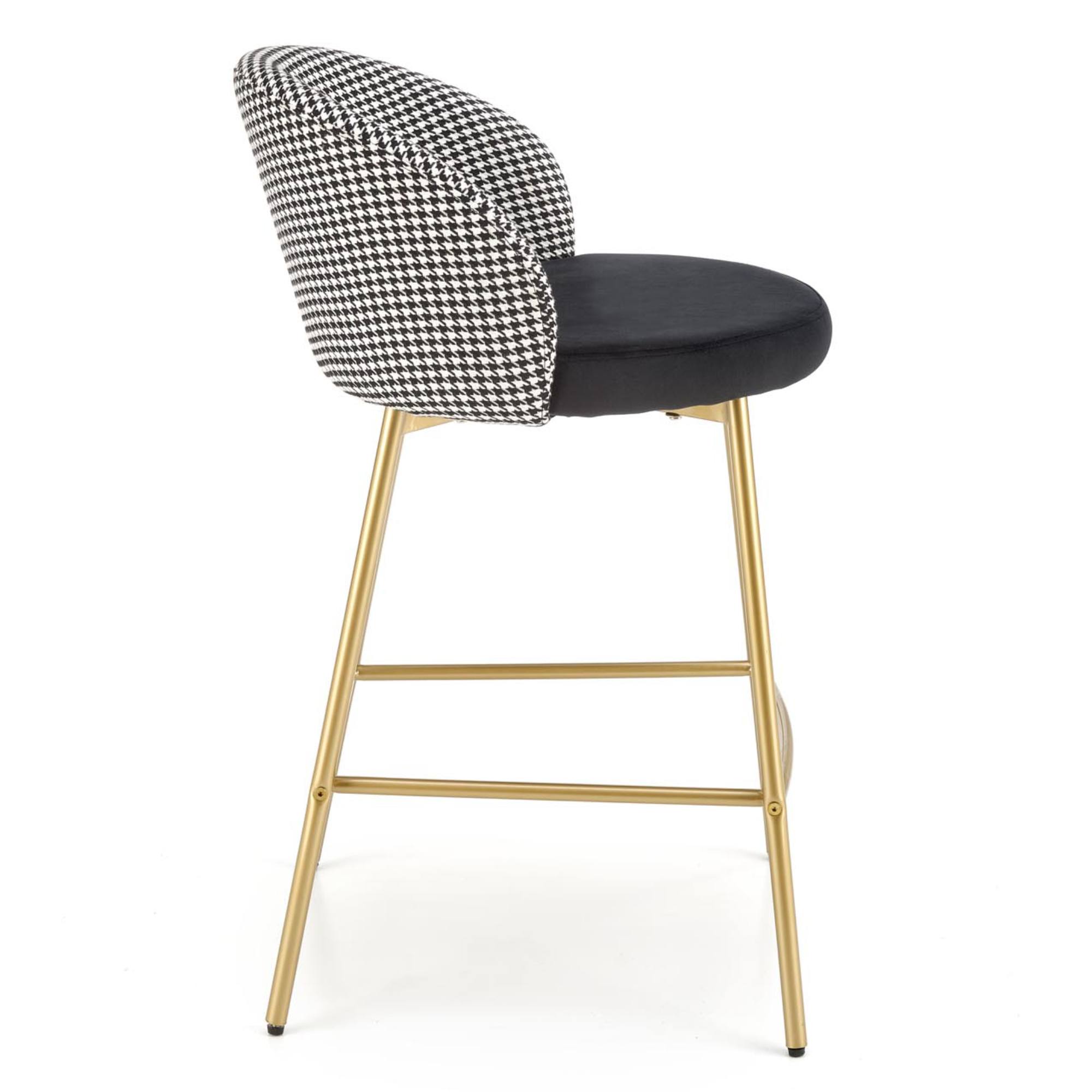 Maximálne pohodlie zaisťuje komfortné sedadlo a chrbtová opierka s príjemným čalúnením z hladkej tkaniny v štýlovom čiernobielom vyhotovení. Stabilitu obstaráva kovová, práškovo lakovaná podnož v zlatom odtieni – ten stoličku aj interiér obohacuje o punc luxusu. Pohodlie pri sedení zvyšuje praktická opierka na nohy. Nosnosť je 100 kg.