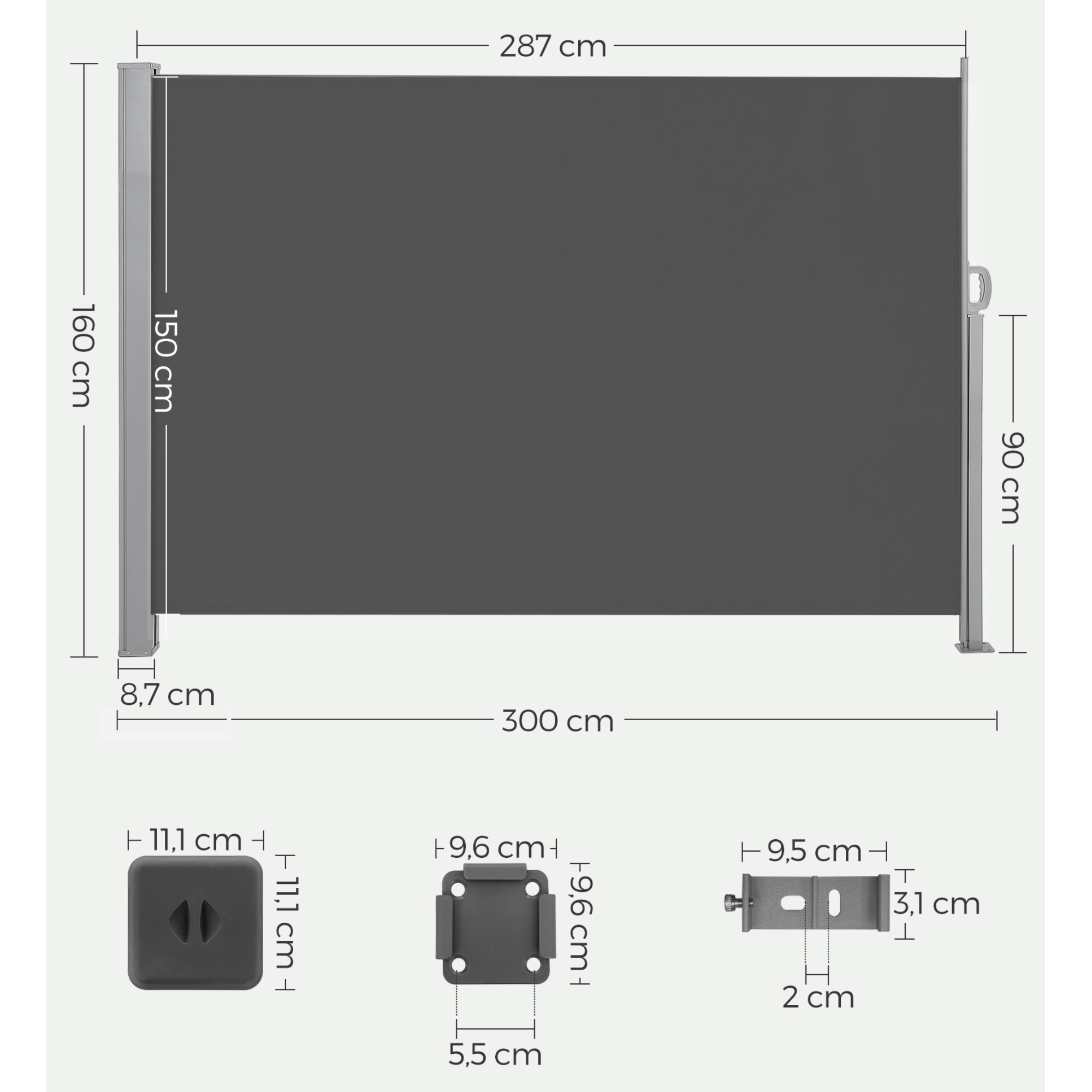 Bočná markíza PRIVACY - sivá, 160x300 cm