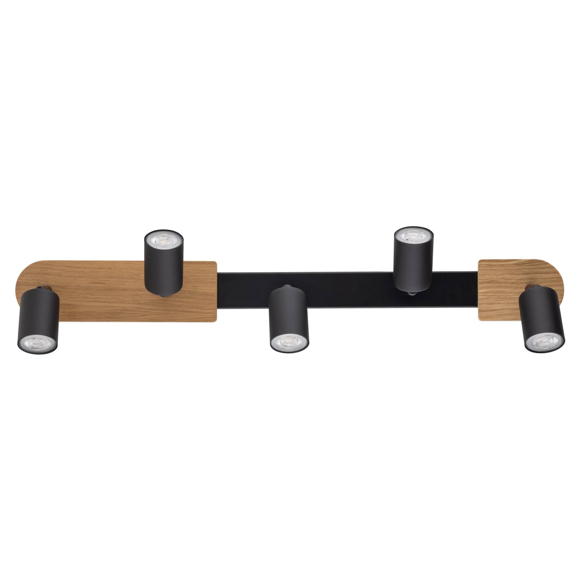 Má kovovú konštrukciu so šírkou 85 cm v matnom čiernom prevedení, ktorú dopĺňajú drevené prvky – oživujúci detail tohto dizajnu. Disponuje 5 tienidlami, ktoré sú vďaka pohyblivým kĺbom nastaviteľné podľa vašej potreby. Svietidlo je teda veľmi všestranné a bude sa vynímať v obývacej izbe, kuchyni aj pracovni.