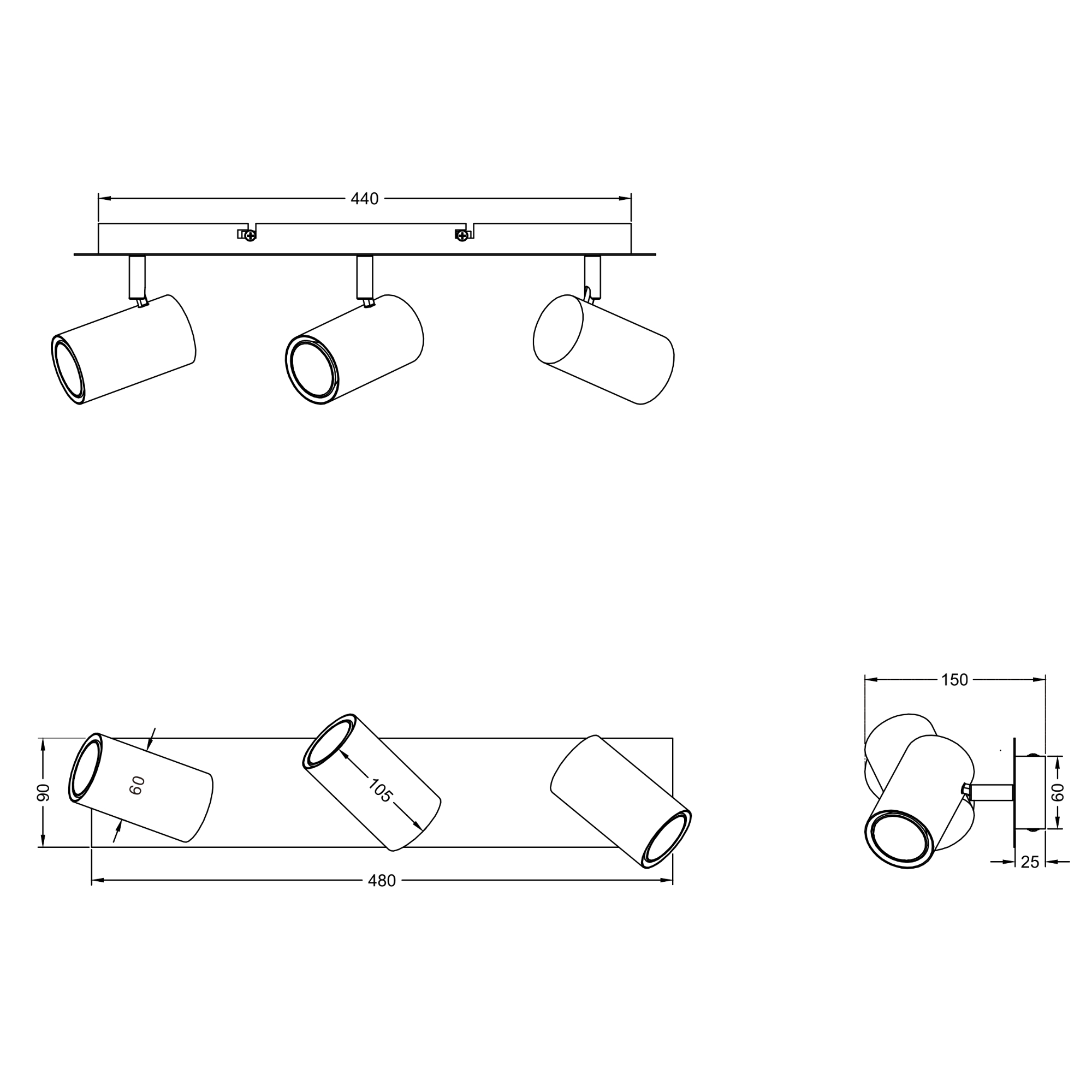 Má kovovú konštrukciu v matnom vyhotovení, ktorú dopĺňajú 3 tienidlá. Tie sú vybavené pohyblivými kĺbmi, ktoré umožňujú nastavenie svetla podľa vašich potrieb. Svojím jednoduchým vyhotovením doplní obývaciu izbu, spálňu alebo pracovňu.