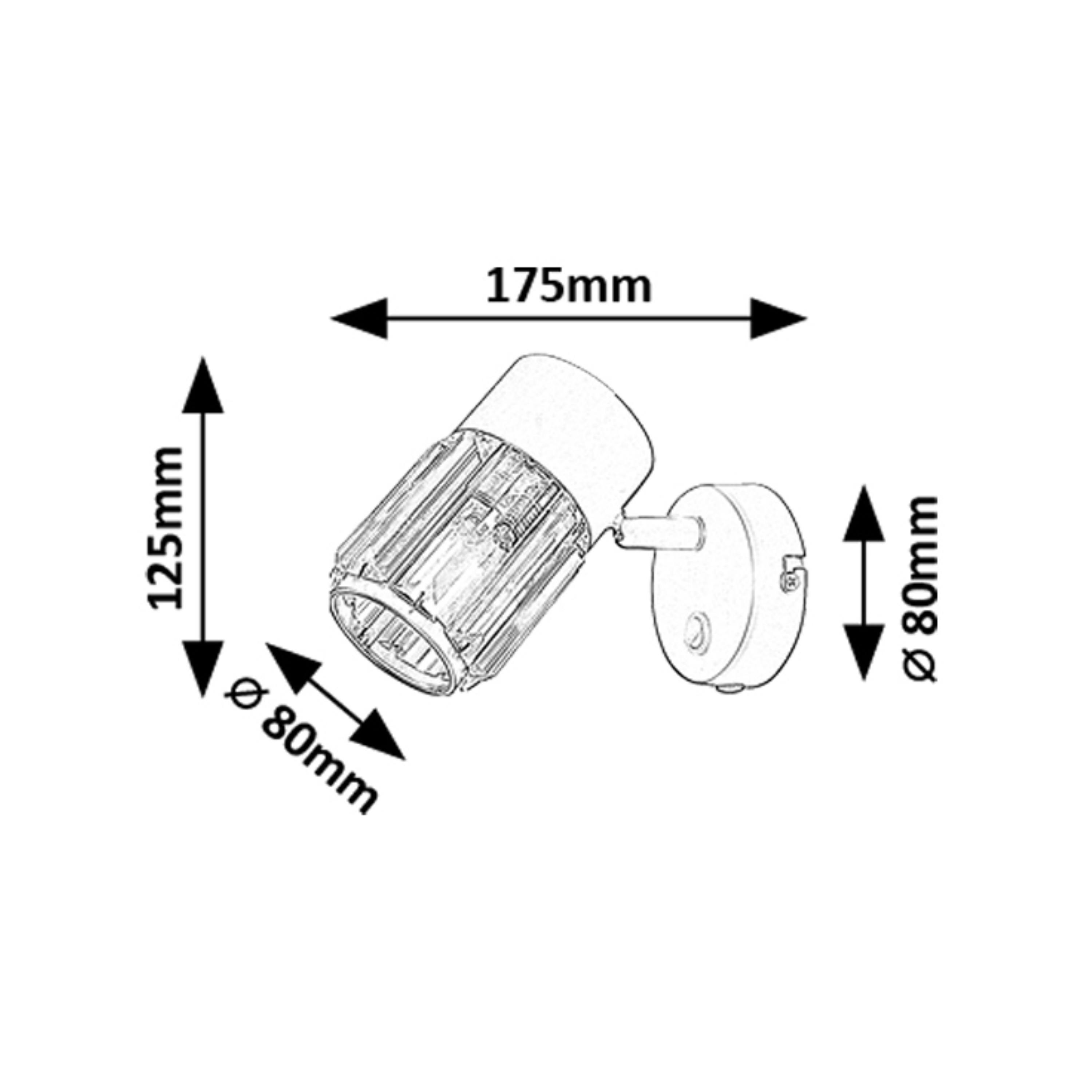Kovové telo dopĺňa tienidlo z číreho, fazetového skla, ktoré príjemne rozptyľuje svetlo a dodáva svietidlu luxusnejší nádych. Vďaka pohyblivému kĺbu možno svetlo nasmerovať na konkrétne miesto. Praktický vypínač priamo na tele svietidla potom zaisťuje pohodlné ovládanie.