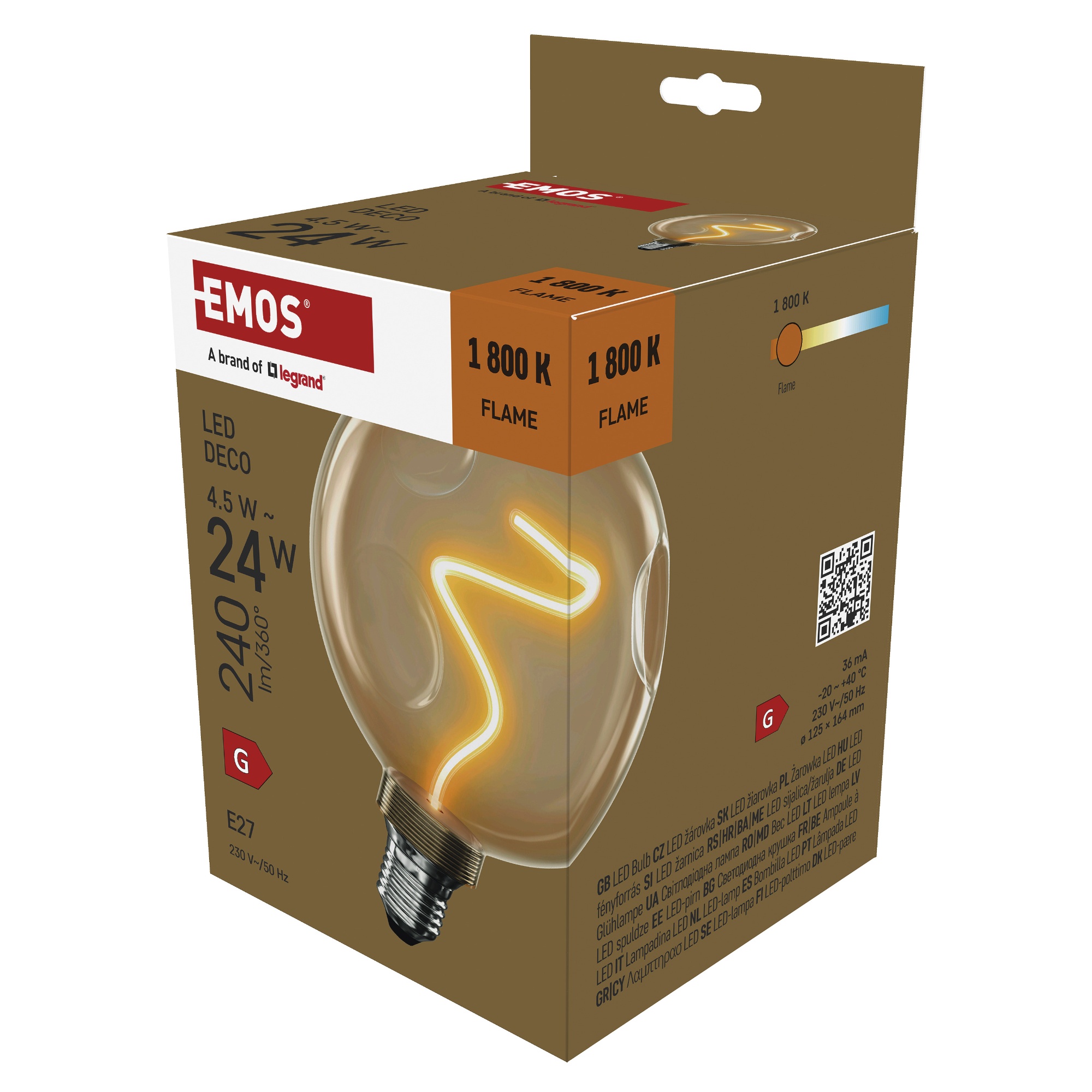 Disponuje objímkou E27 s maximálnym príkonom 4,5 W. Má svetelný tok 240 lumenov s teplotou svetla 1800 Kelvinov, ktorá vyžaruje extra teplé biele svetlo pripomínajúce plameň ohňa. Toto jemné svetlo je ideálne do spálne, obývačky alebo do barov a reštaurácií na vytvorenie romantickej atmosféry. Výhodnou vlastnosťou žiarovky je jej životnosť, ktorá poskytuje až 25 000 hodín osvetlenia.