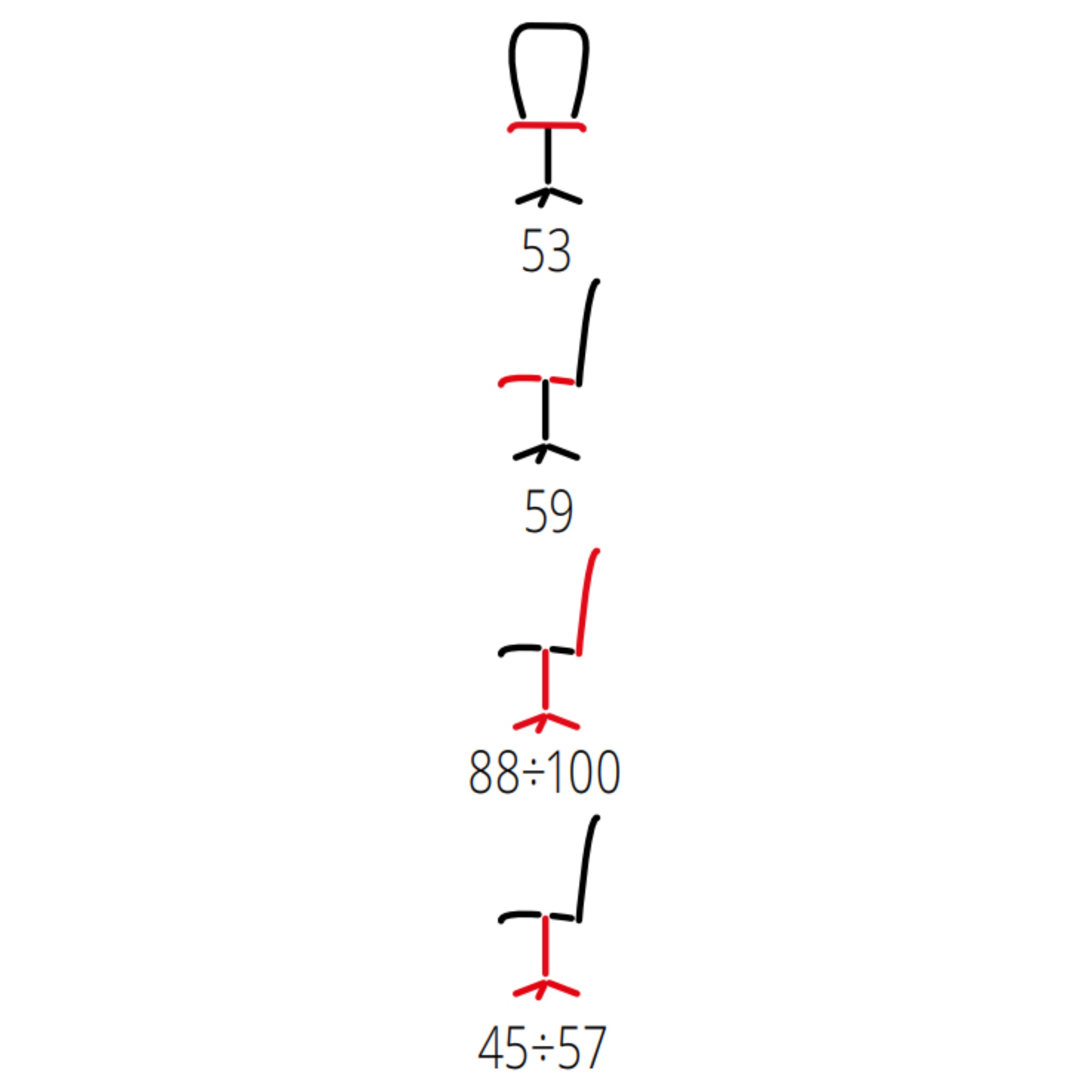| Nastaviteľná výška sedu: | 45 - 57 cm |