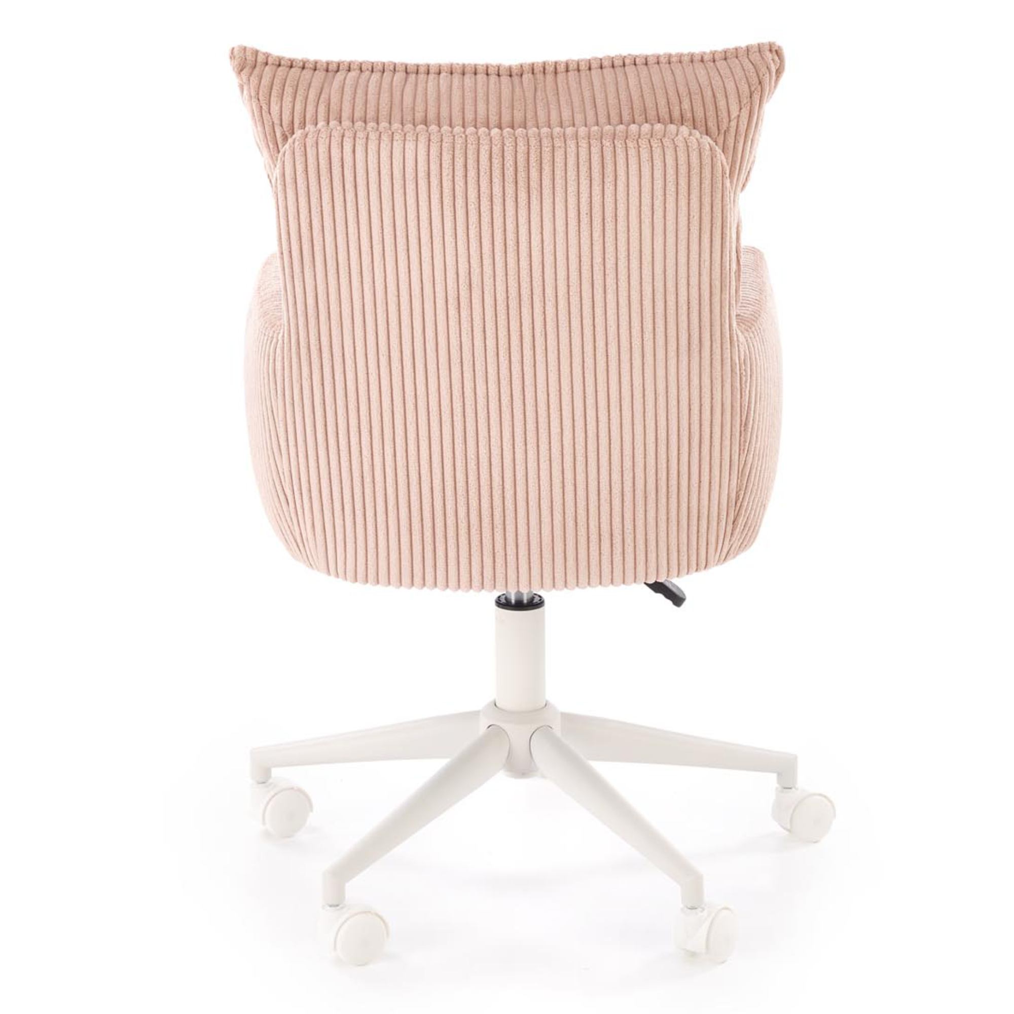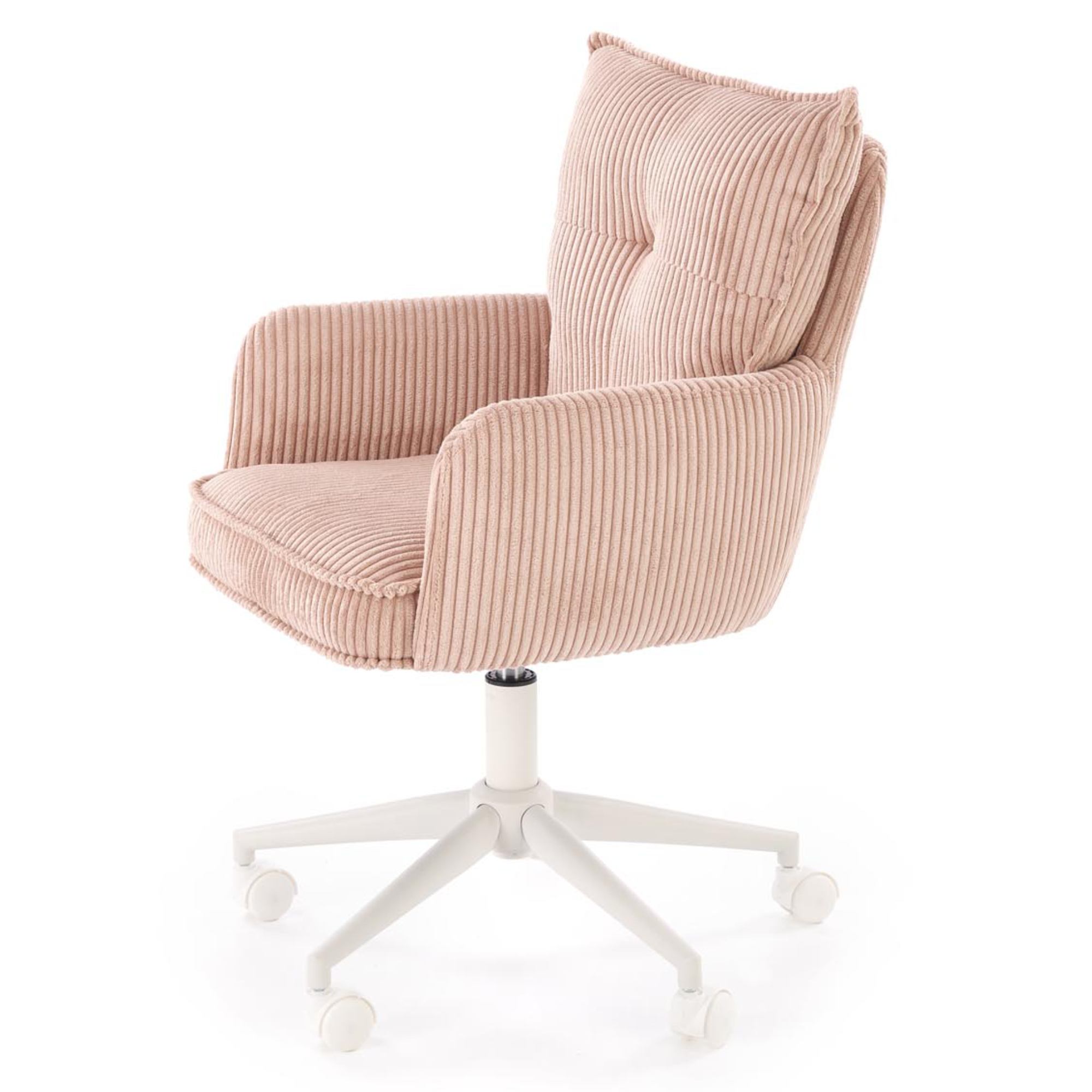 Stolička má stabilnú konštrukciu, ktorá je vyrobená z kovu a vybavená plastovými kolieskami. Okrem mäkkého sedáka prispievajú k pohodlnému sedeniu aj praktické opierky na ruky. Stolička je čalúnená hladkou tkaninou.