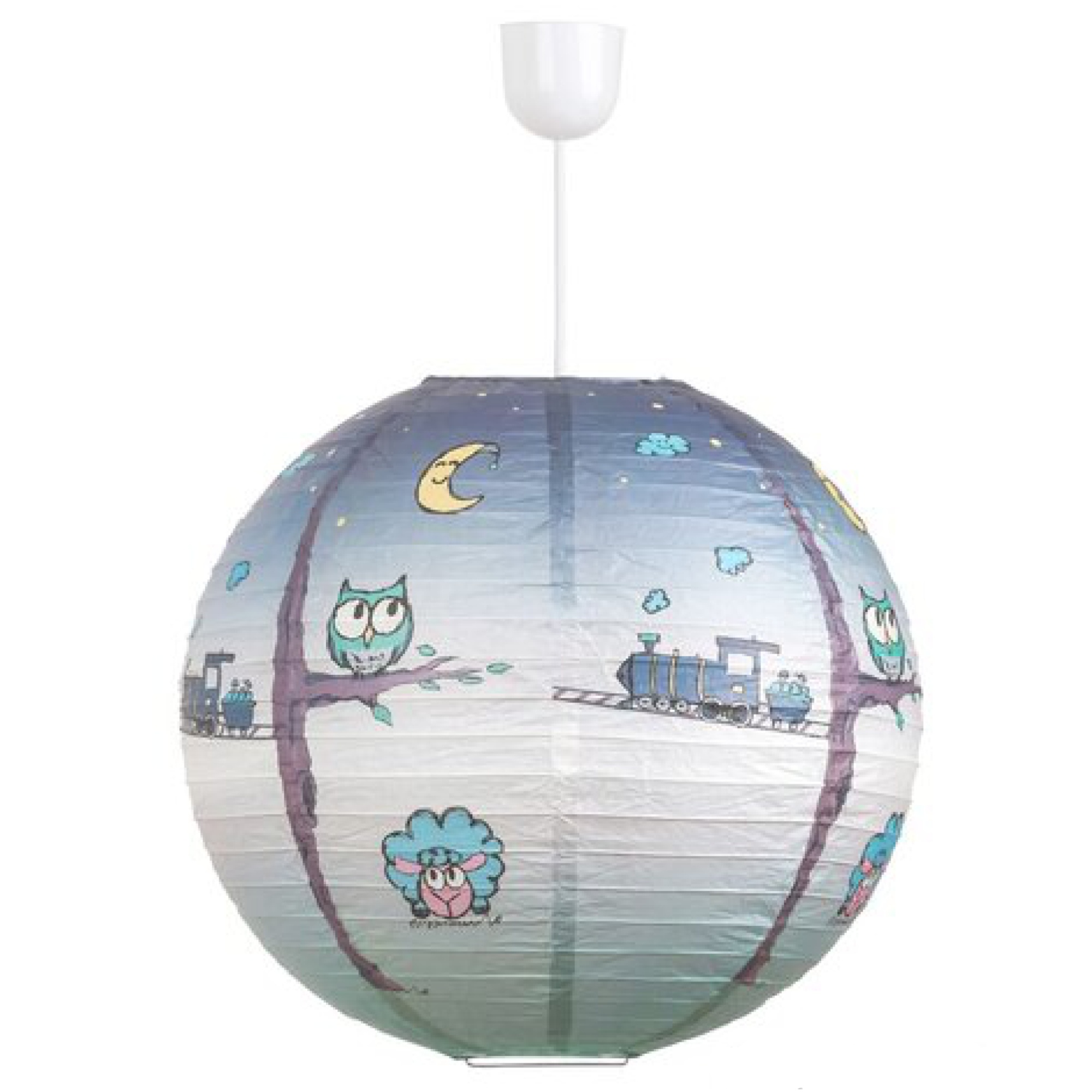 Detské papierové tienidlo SHEPHERD s motívom nočného života zvierat a v pozadí sa nachádza prechádzajúci vlak vypúšťajúci paru. Tienidlo je vhodné do detskej izby, kde rozveselí vašu ratolesť svojim motívom. Priemer tienidla je 40 cm. Nutné dokúpiť záves s objímkou, ktorá nie je súčasťou balenia.