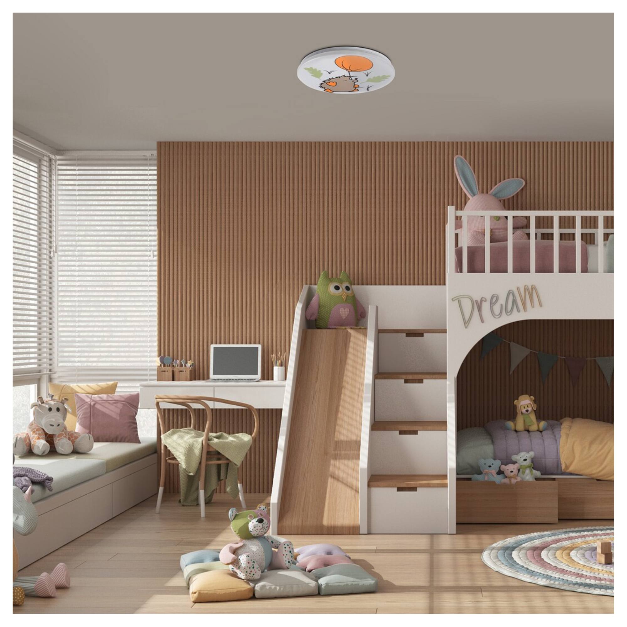 Detské stropné LED svietidlo HEDGY doplní každú detskú izbu a vyčarí úsmevy nielen na detských tvárach.