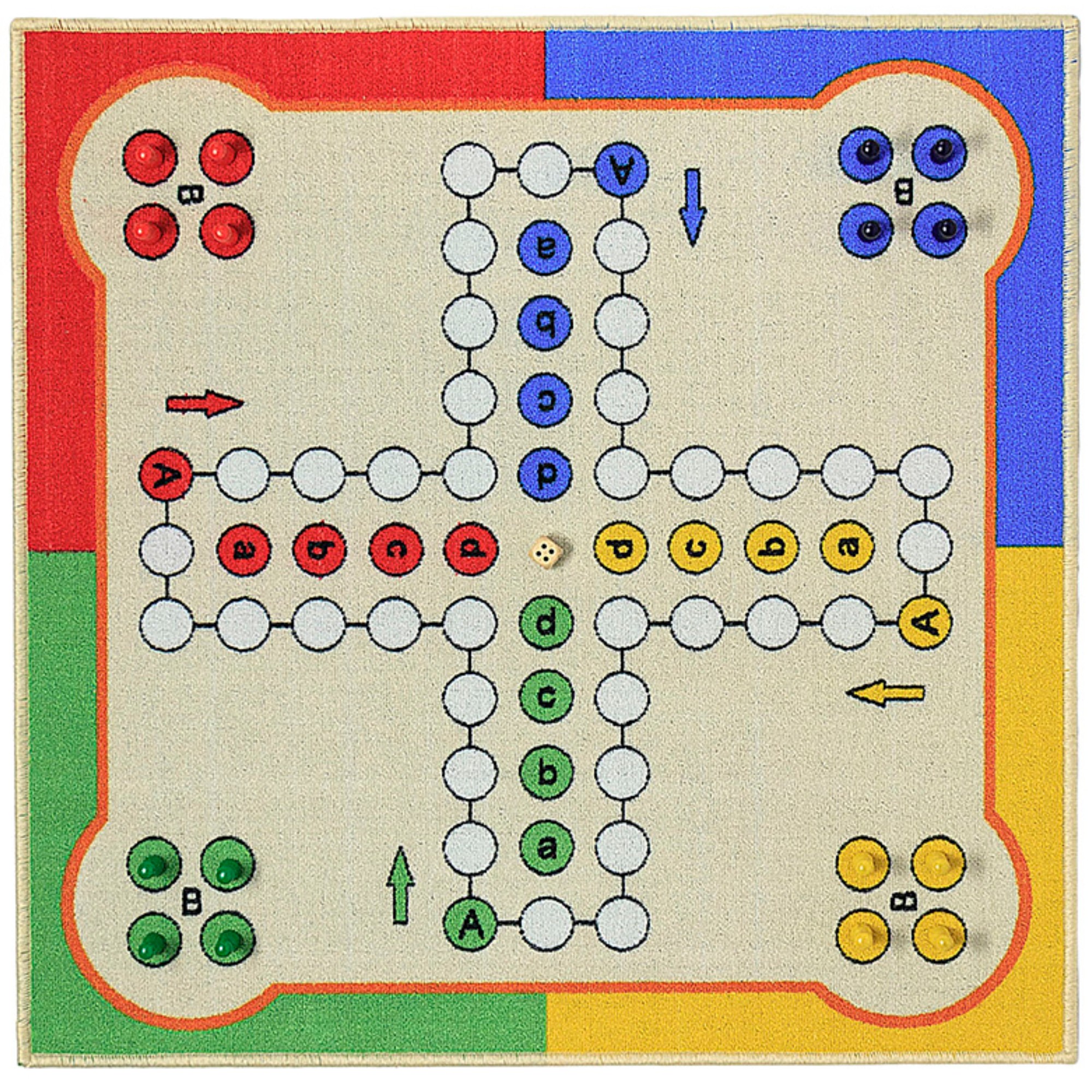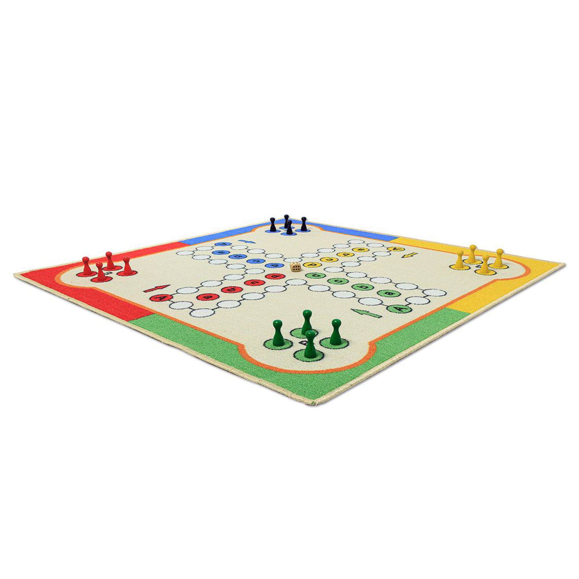 Koberec s rozmermi 80 x 80 cm ponúka dostatočne veľkú hraciu plochu a neoddeliteľnou súčasťou je aj 16 hracích figúrok a hracia kocka.