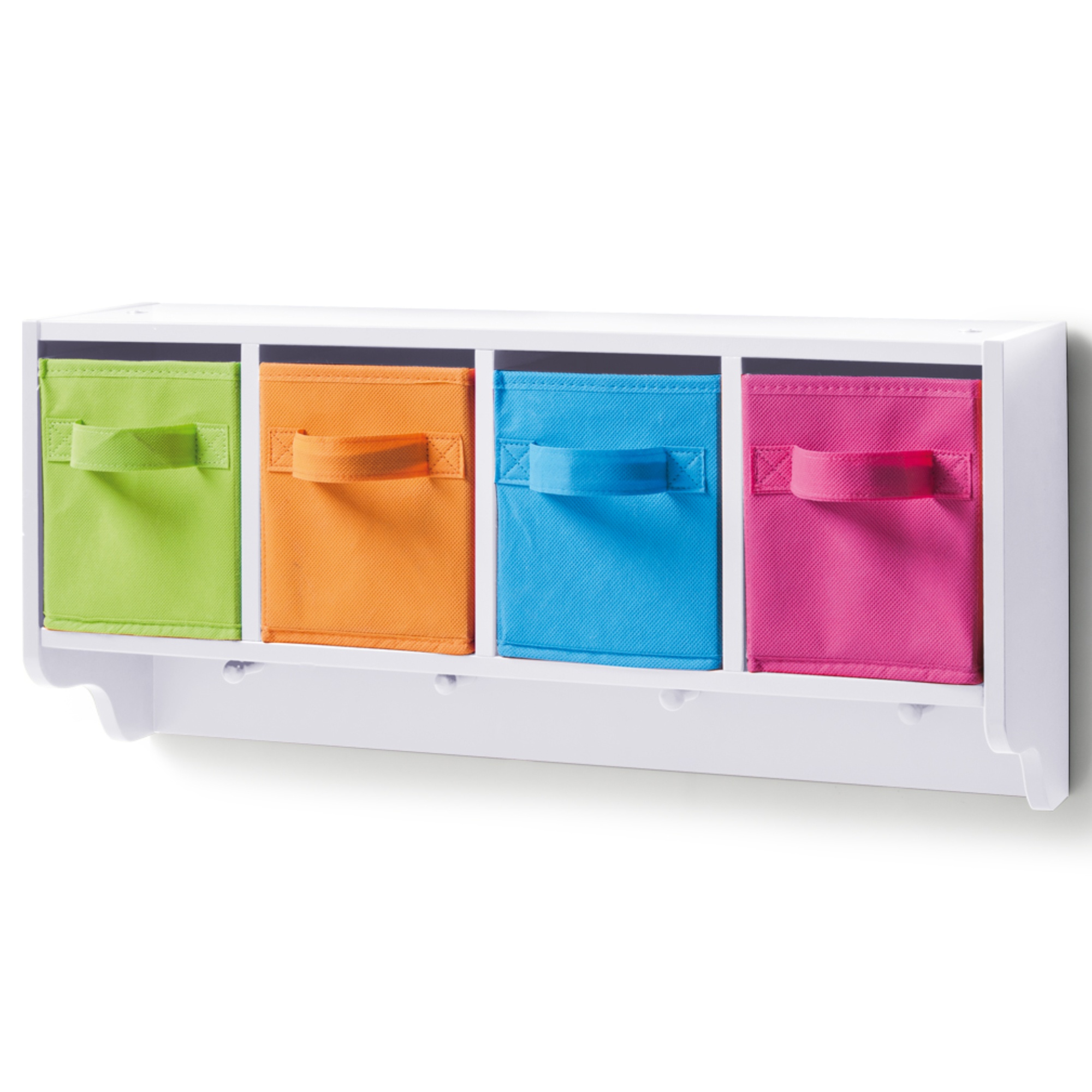 S týmto farebným detským vešiakom udržíte hravo poriadok v izbičke svojich ratolestí. Plne vyberateľné textilné boxy majú dostatok úložného priestoru a štyri háčiky využijete na bundy a ďalšie oblečenie vašich detí.