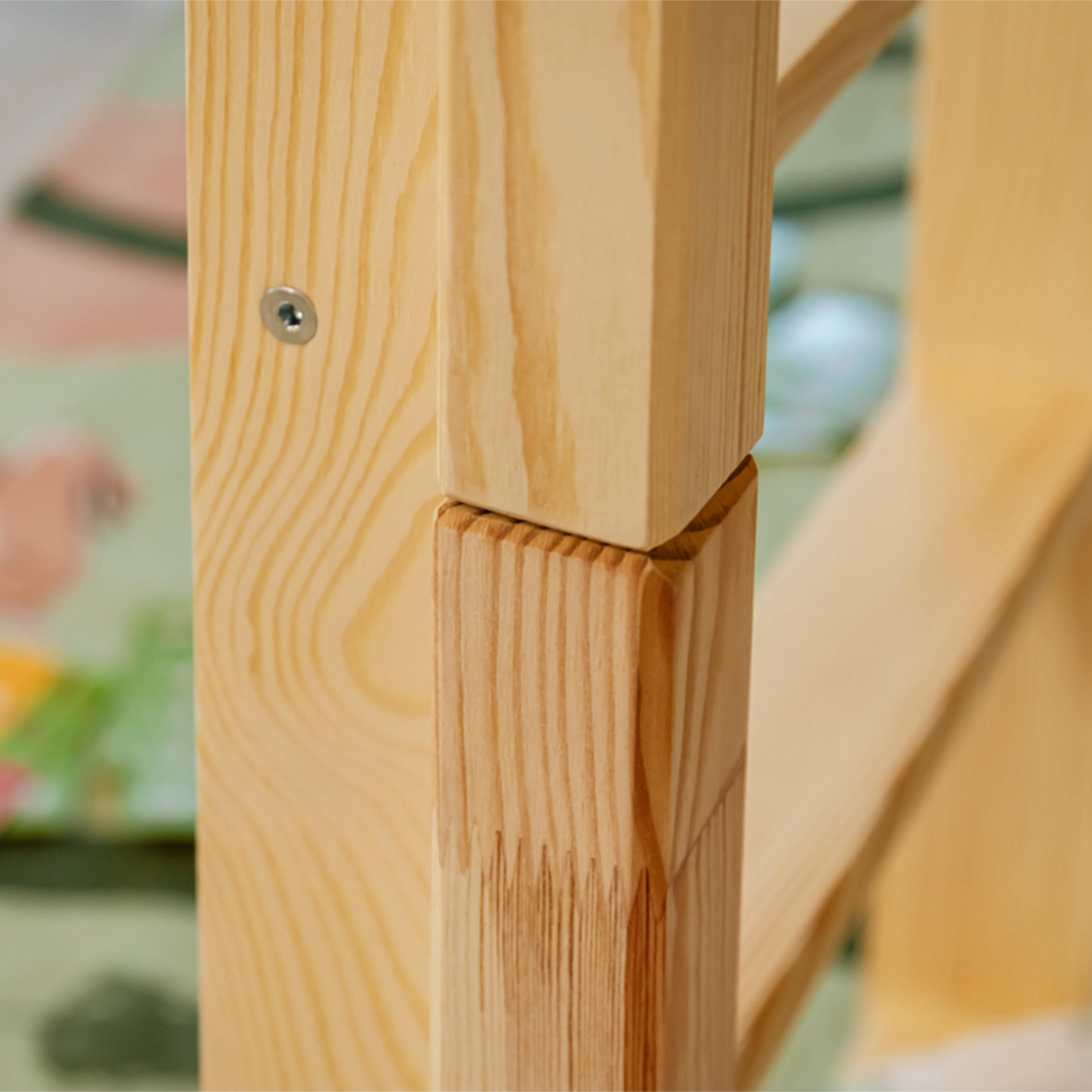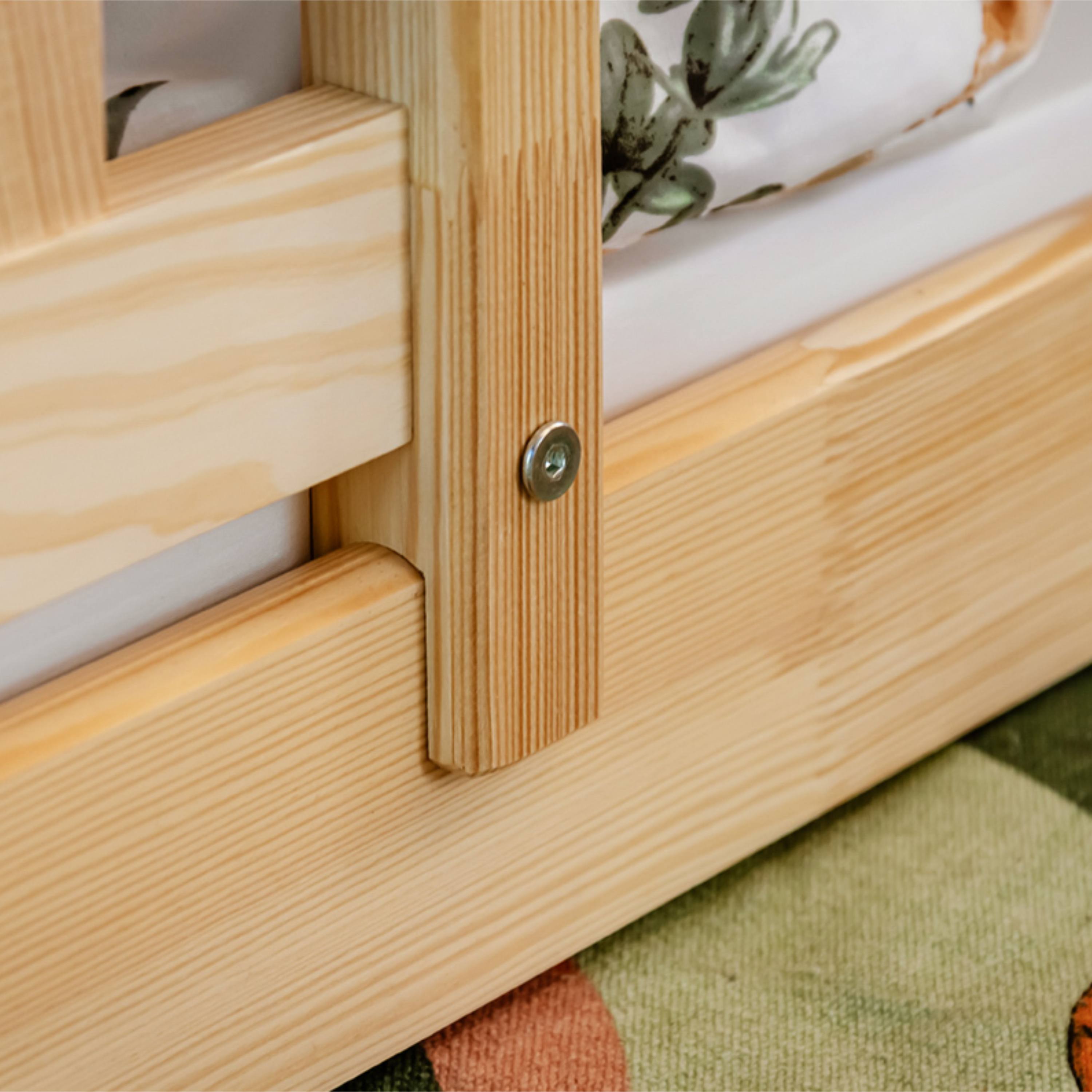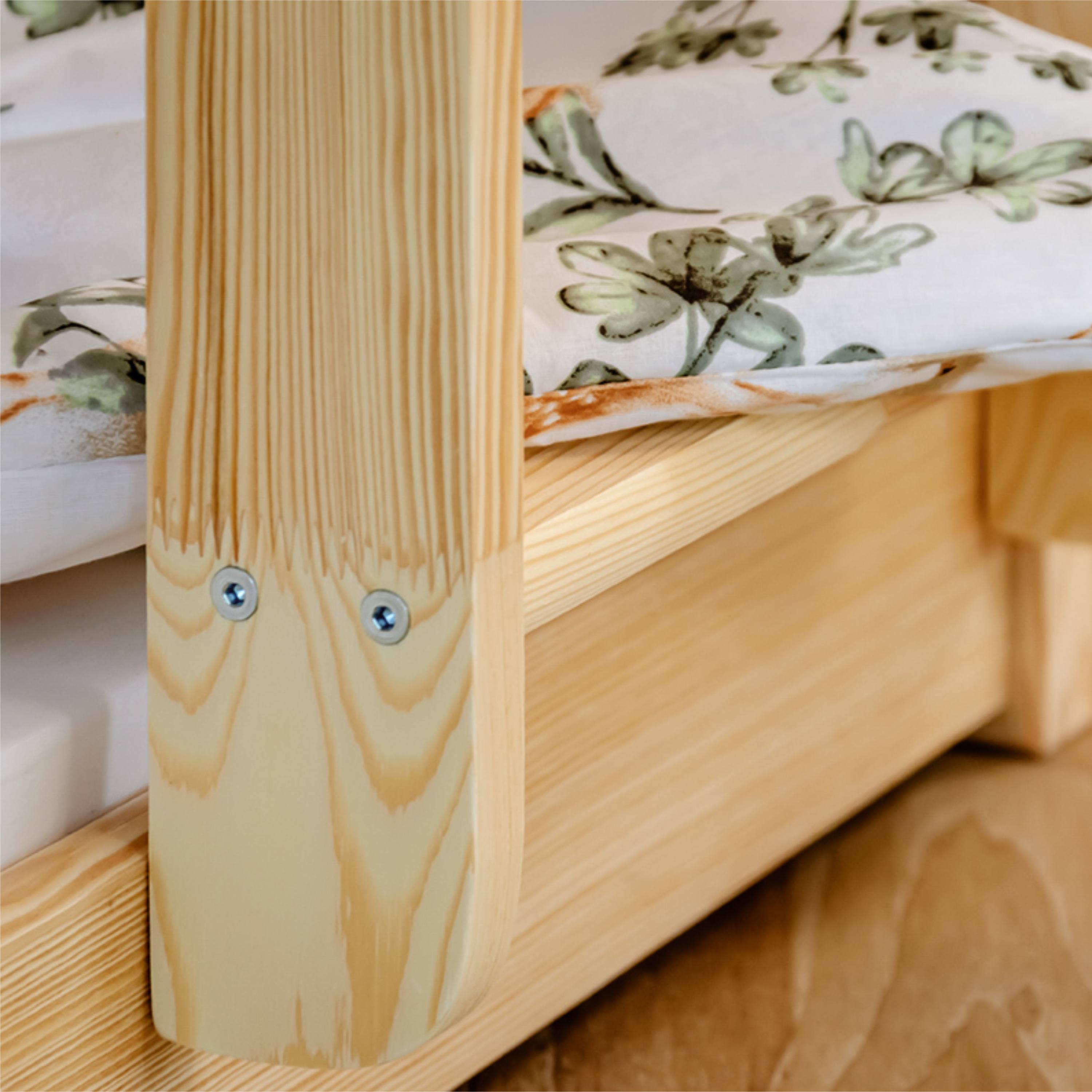 Jej pevná a stabilná konštrukcia je vyrobená z masívneho borovicového dreva v lakovanej úprave. Posteľ ponúka 2 pevné lôžka, kedy vrchné poschodie je ľahko prístupné vďaka rebríku so širokými stupienkami. Ložné plochy sú vybavené bezpečnostnými zábranami, ktoré môžete v prípade potreby odňať.