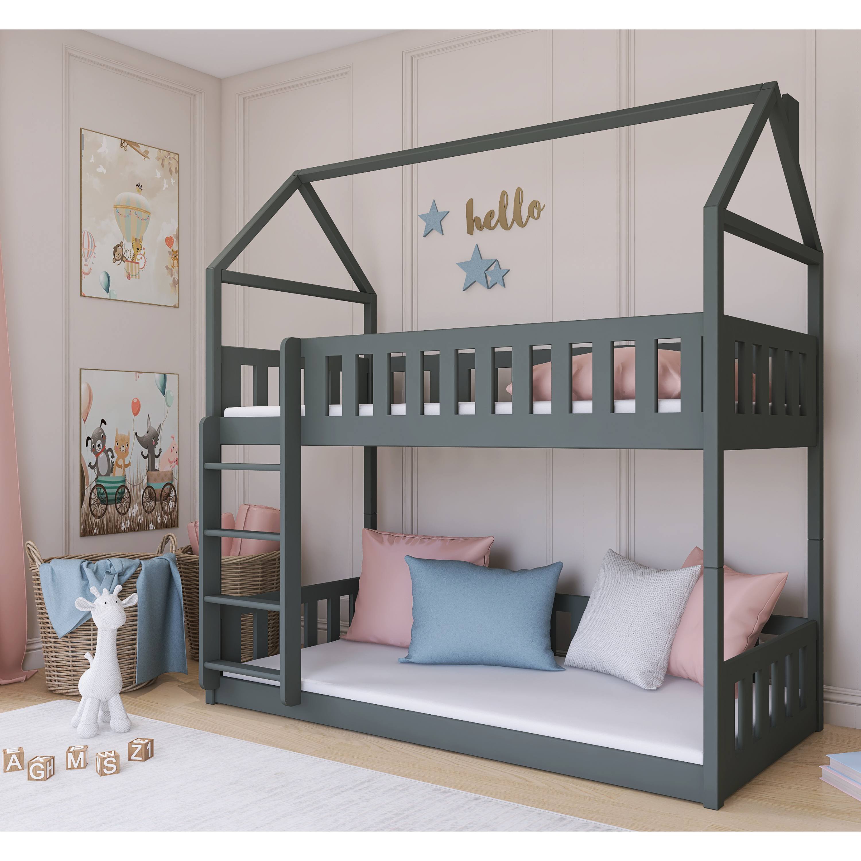 Domčeková poschodová posteľ LOPA - grafitová, 90x190 cm