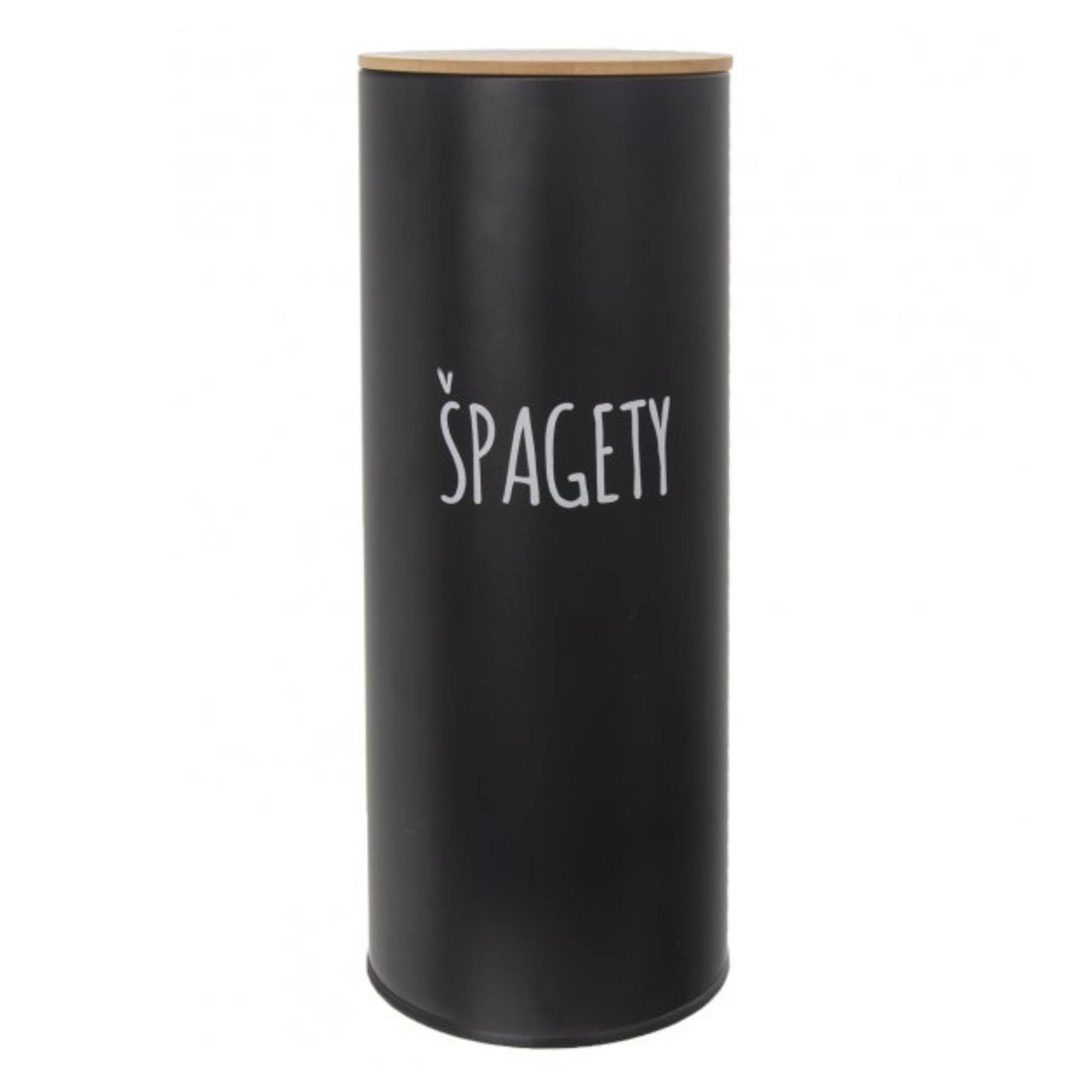 Dizajnová plechová dóza BLACK s matným čiernym povrchom slúži na uskladnenie špaget. Pohodlne sa do nej zmestí celé balenie. Bambusové viečko so silikónovým tesnením chráni obsah pred zvlhnutím a hmyzom.