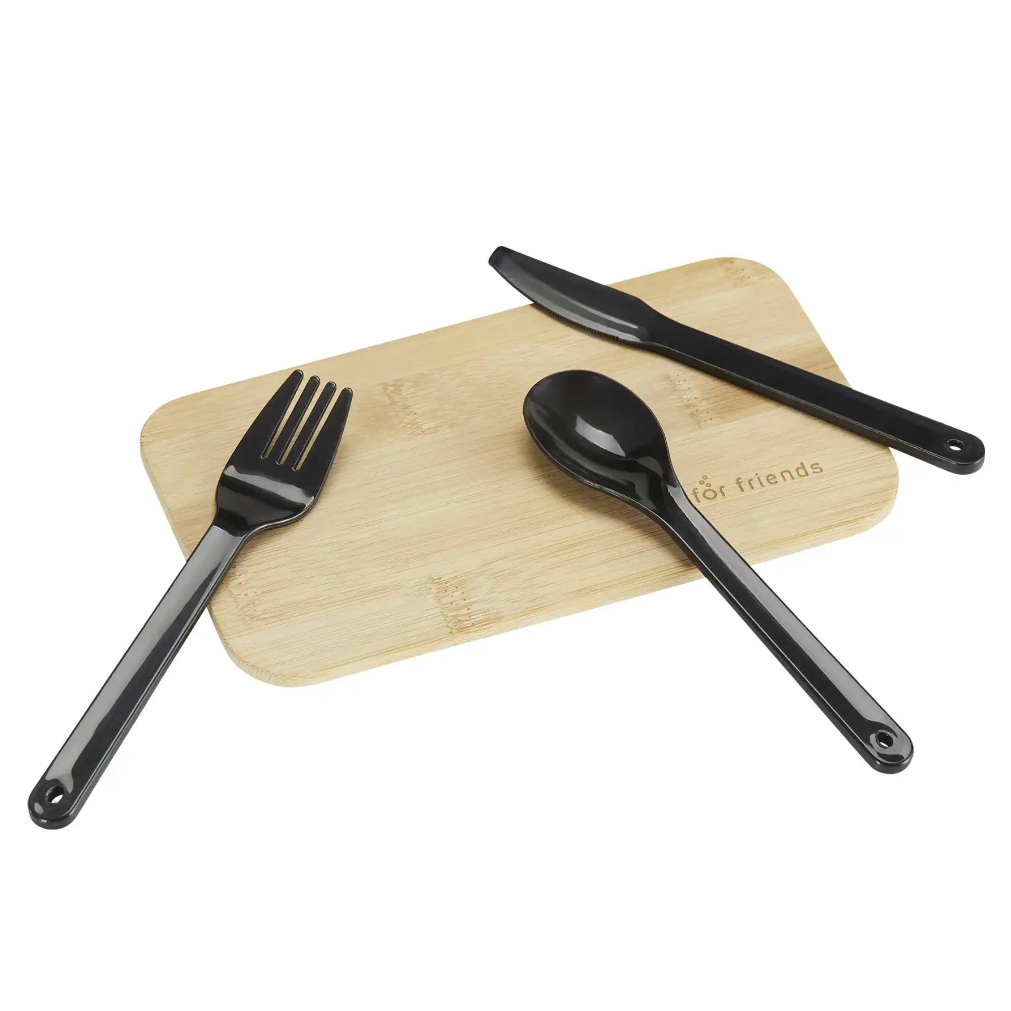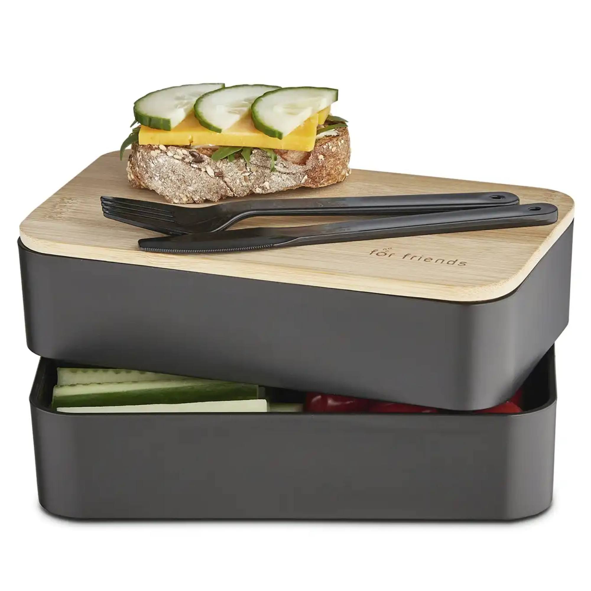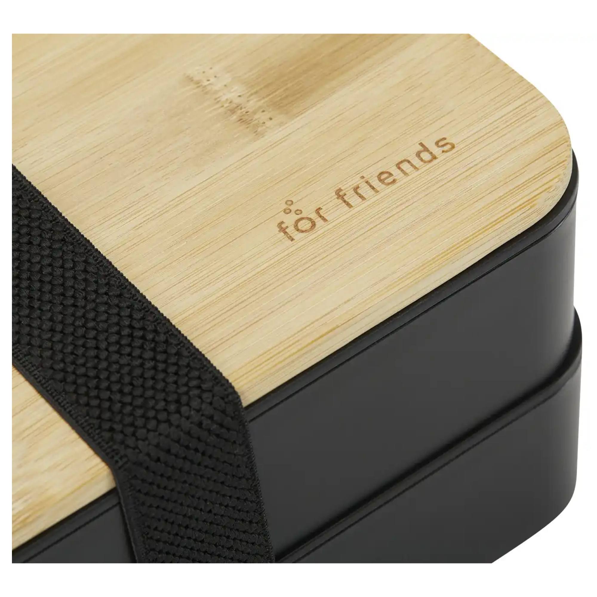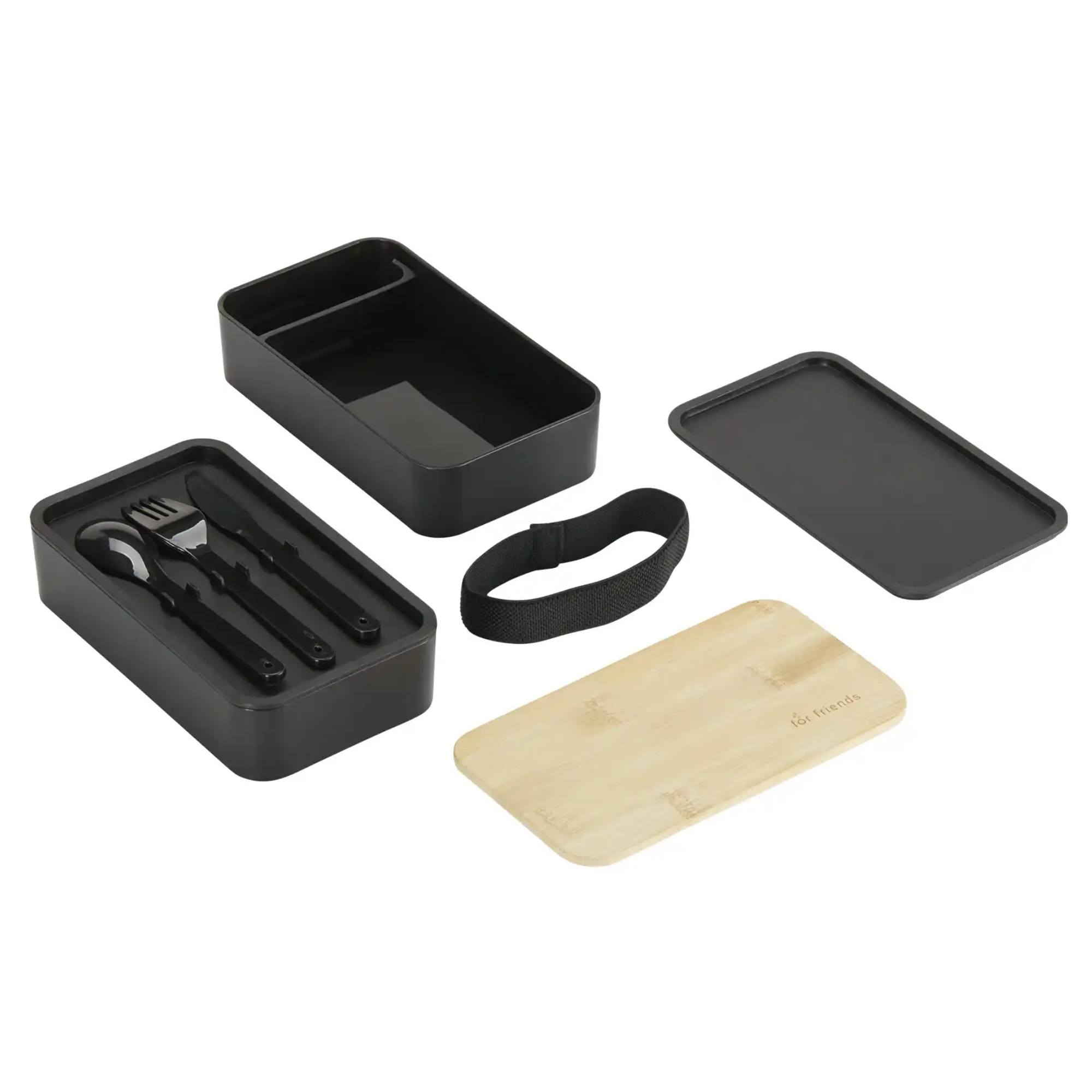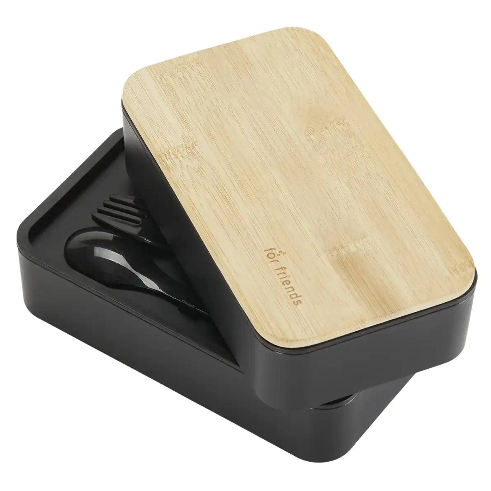 Dóza s príborom BENTO - čierna/bambus