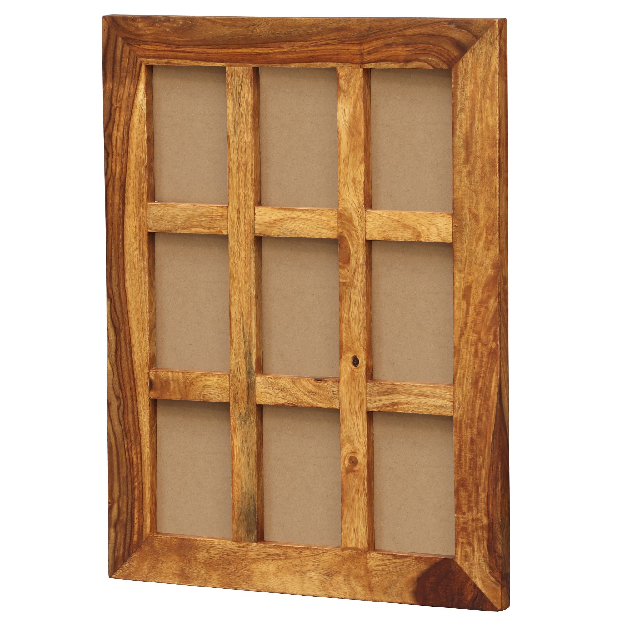 Fotorámik KALIM 60 je funkčným bytovým doplnkom, ktorý pomôže oživiť prázdne steny a zároveň umožní vystaviť obľúbené fotografie. Rám ponúka miesto celkom na 9 fotografií s veľkosťou 10x15 cm, takže môžete mať dôležité spomienky vystavené pohromade. Vyrobený je z masívneho dreva shishamu, veľmi odolnej exotickej dreviny tiež známej ako palisander. Ten vyniká svojou pevnosťou a výraznou kresbou dreva s unikátnymi farebnými prechodmi, ktoré sa kus od kusa líšia. Každý kus je tak svojim spôsobom jedinečný.