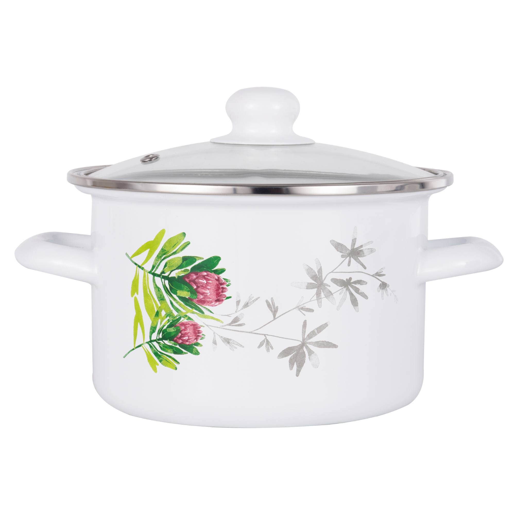 Hrniec s objemom 4,8 l je vyrobený z ocele so smaltovanou úpravou. Smalt sa vyznačuje dobrou tepelnou vodivosťou, vďaka ktorej šetrí spotrebu energie. Je vybavený ušami na jednoduchú manipuláciu a praktickou pokrievkou s otvorom na odvod prebytočnej pary. Je vyhotovený v bielej farbe so vzorom lúčnych kvetov, ktorý oživí každú kuchyňu. Je možné ho umývať v umývačke riadu a je vhodný pre všetky typy varných dosiek.