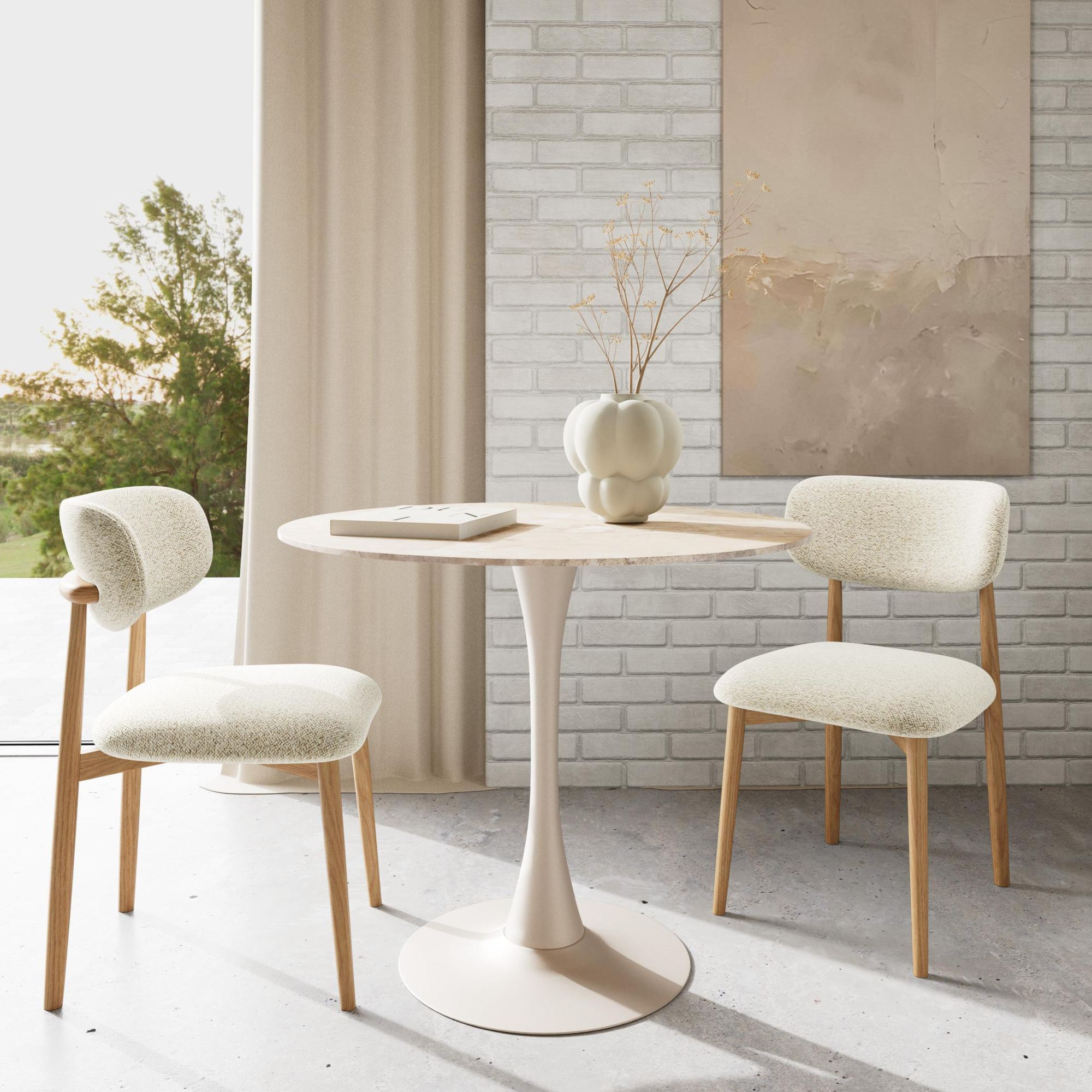 Jedálenská stolička ABSALON je čalúnená hladkou tkaninou typu bouclé príjemnou na dotyk.