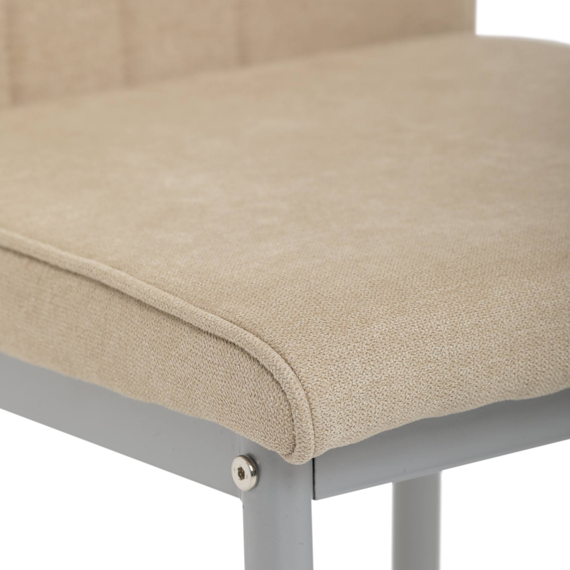 Ideálne pohodlie počas sedenia zaisťuje výplň z polyuretánovej peny spolu s príjemným, hladkým čalúnením. Elegantnejší nádych stoličke dodáva efektné prešívanie poťahu v oblasti operadla. Sedací priestor podopiera štvornohá, kovová podnož v sivej farbe zaisťujúca pevnosť a stabilitu stoličky. Jedálenská stolička ARPAD umožňuje zaťaženie až 120 kg.