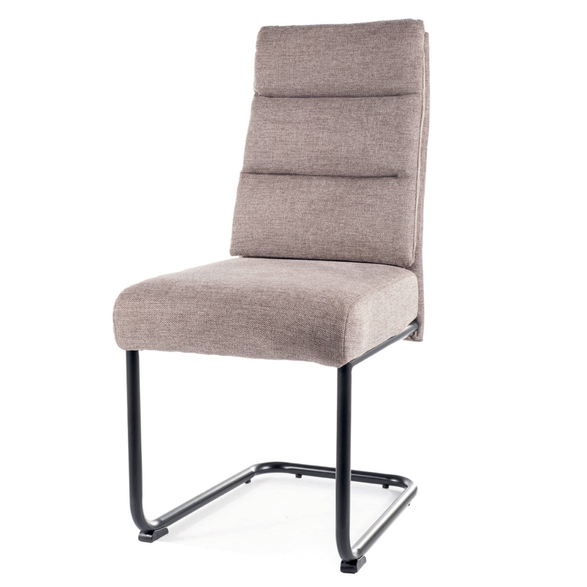 Konštrukcia je *čalúnená** príjemnou tkaninou, ktorá je vyrobená zo 100% polyesteru. Poťah je v oblasti chrbta z prednej strany doplnený o decentné prešívanie. Komfortné sedenie zaisťuje sedadlo s jadrom z taštičkových pružín a opretie spríjemňuje mäkká penová vrstva v chrbtovom operadle. Celkový vzhľad dopĺňa perová podnož z matného kovu v čiernej farbe. Pre ľahšiu manipuláciu stolička disponuje praktickým držadlom na zadnej strane operadla.