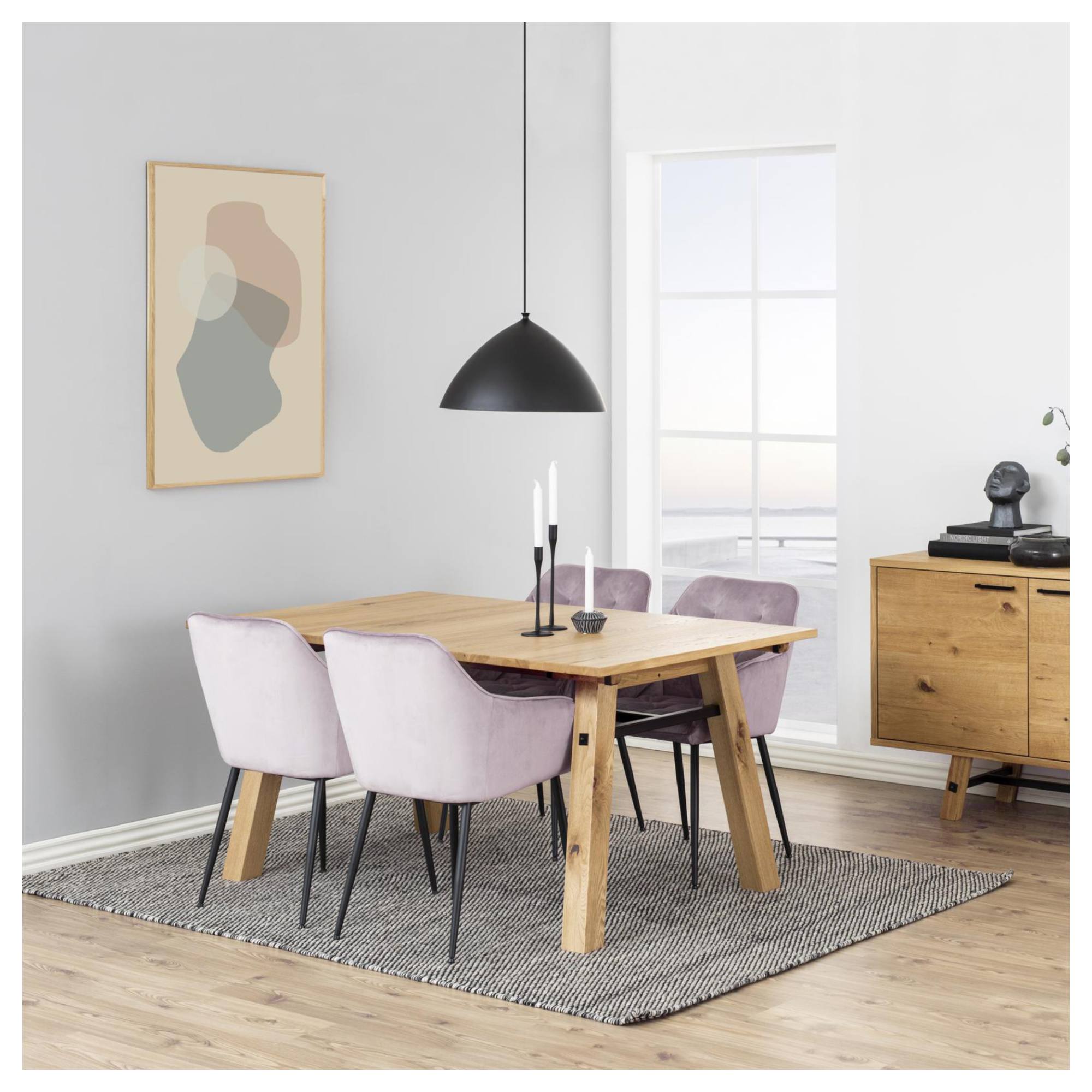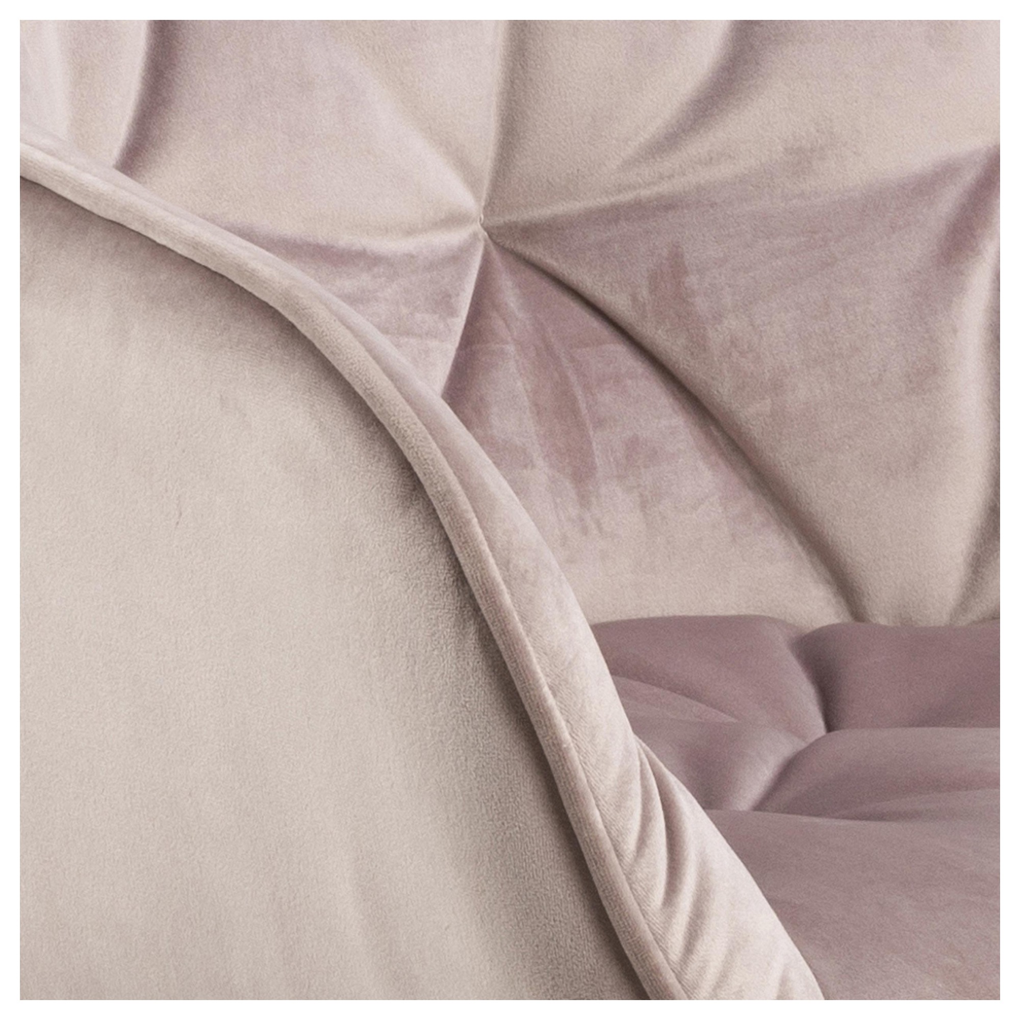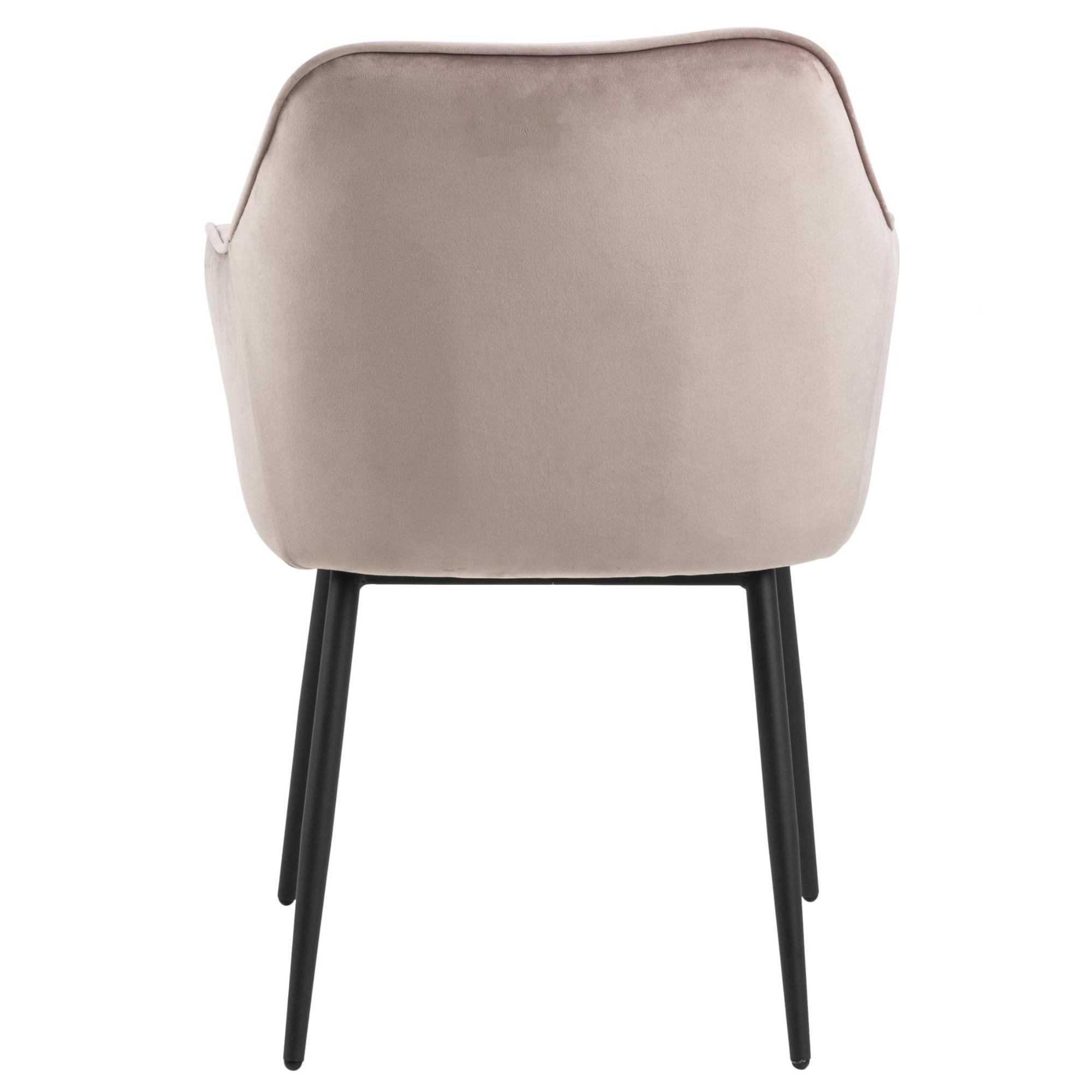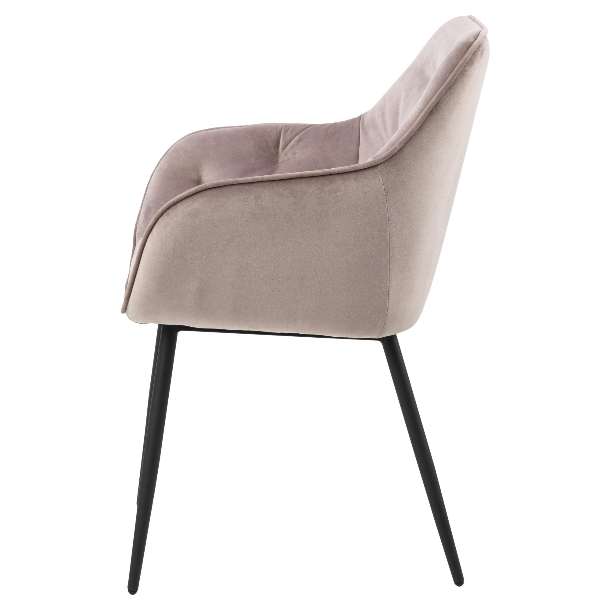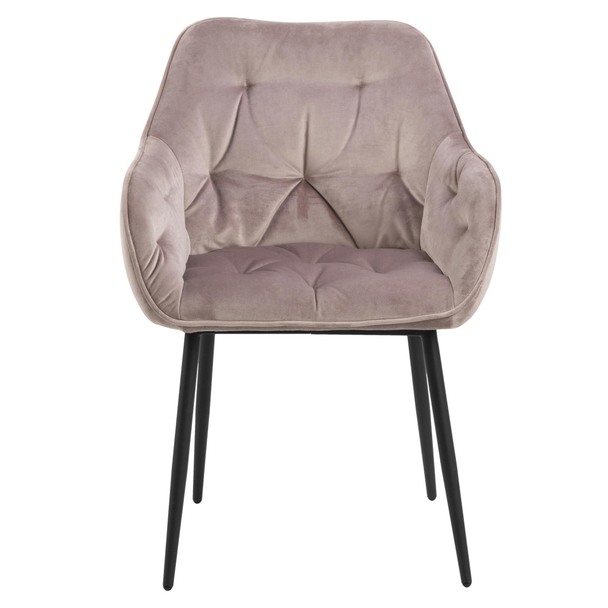 Komfort zaisťuje mäkká, penová výplň sedadla a chrbtovej opierky a na odloženie unavených rúk slúžia praktické podrúčky. Celá škrupina je čalúnená tkaninou v jednofarebnom vyhotovení s na dotyk príjemným povrchom. Minimalistický vzhľad stoličky ozvláštňujú dekoratívne detaily poťahu, ktoré vytvárajú nadýchaný dojem. Pevnosť a stabilitu stoličky zaisťuje štvornohá podnož z práškovo lakovaného kovu vyhotovená v čiernom mate.