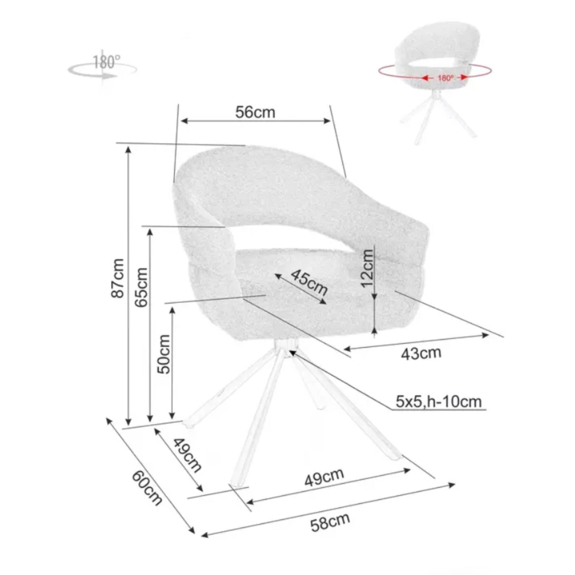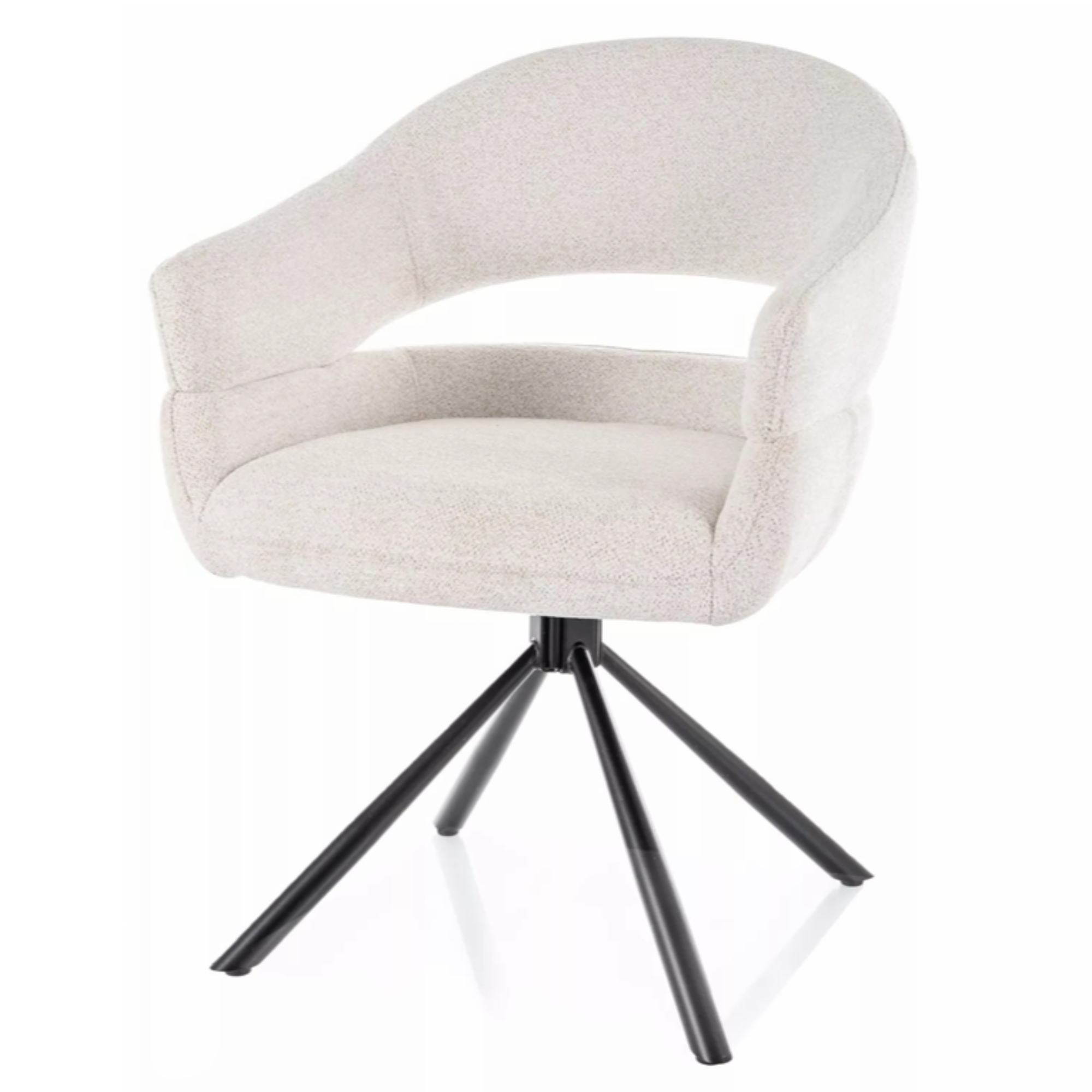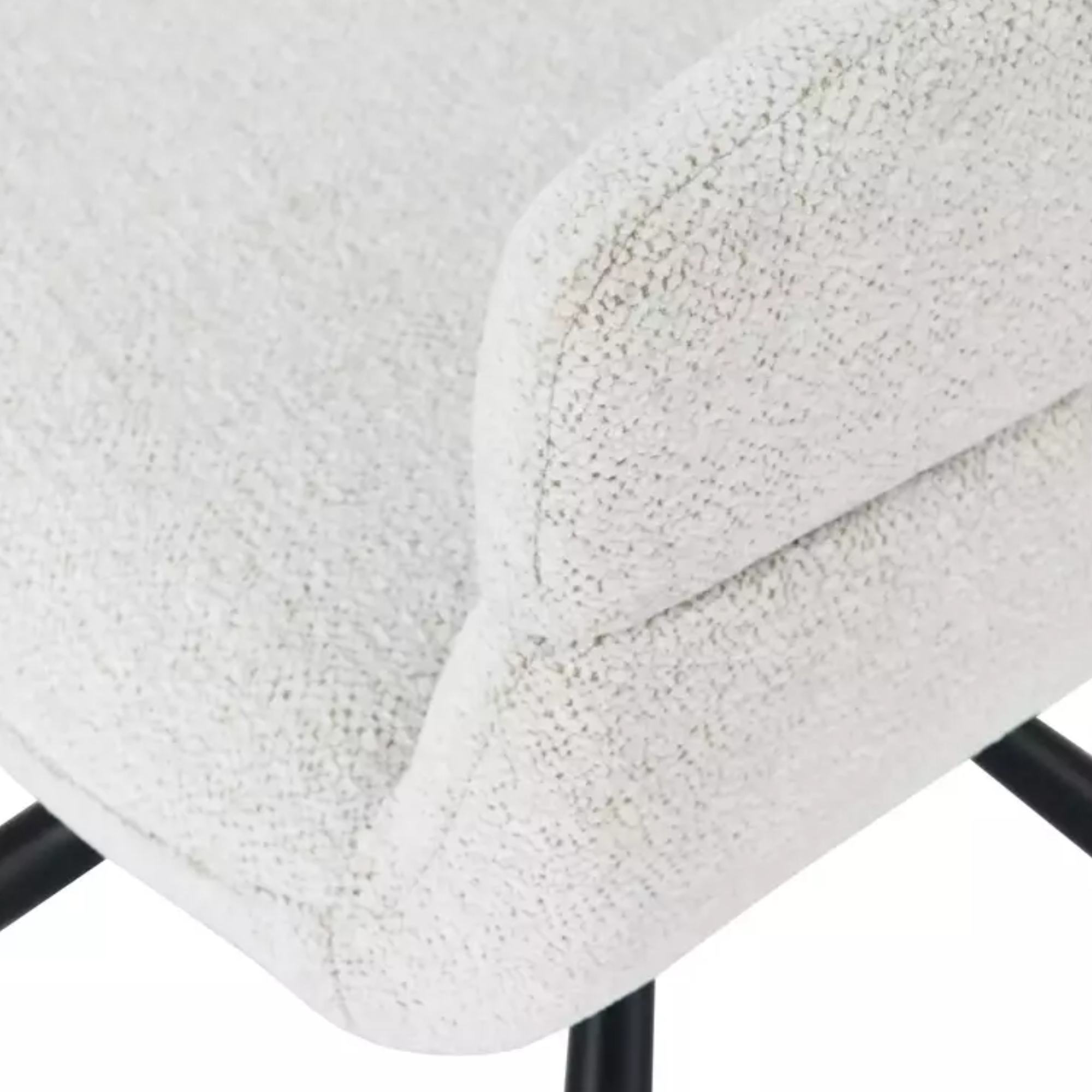 Stolička je čalúnená hladkou tkaninou príjemnou na dotyk. O pohodlie pri sedení sa starajú podrúčky aj mäkký penový sedák. Stabilitu stoličky zaisťuje kovová konštrukcia.