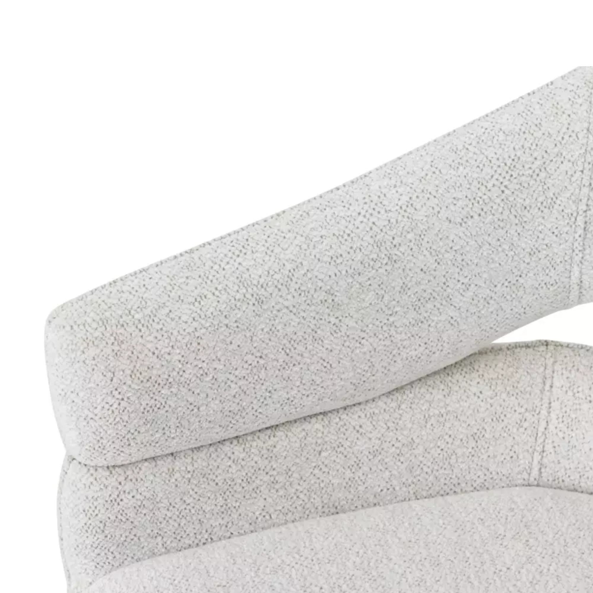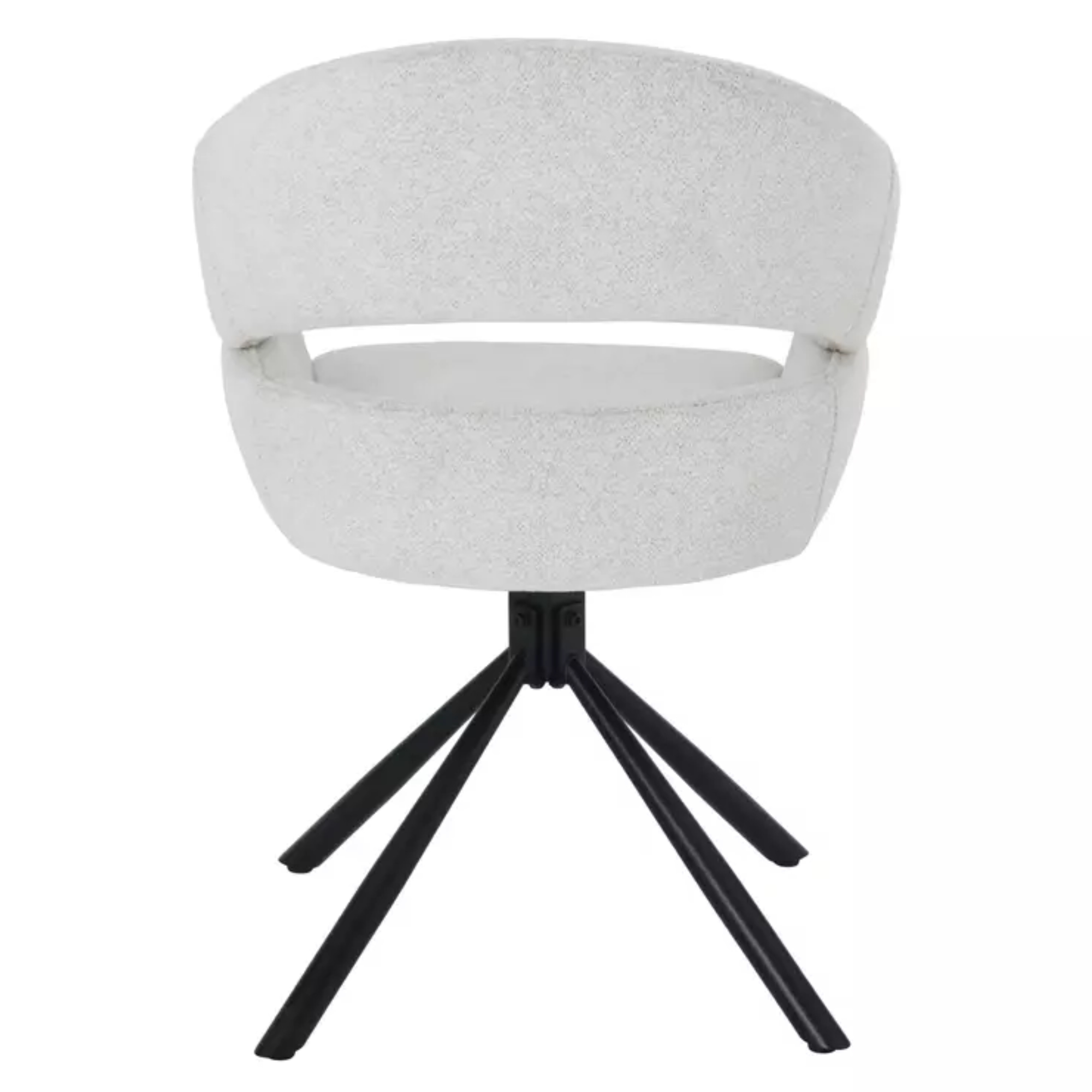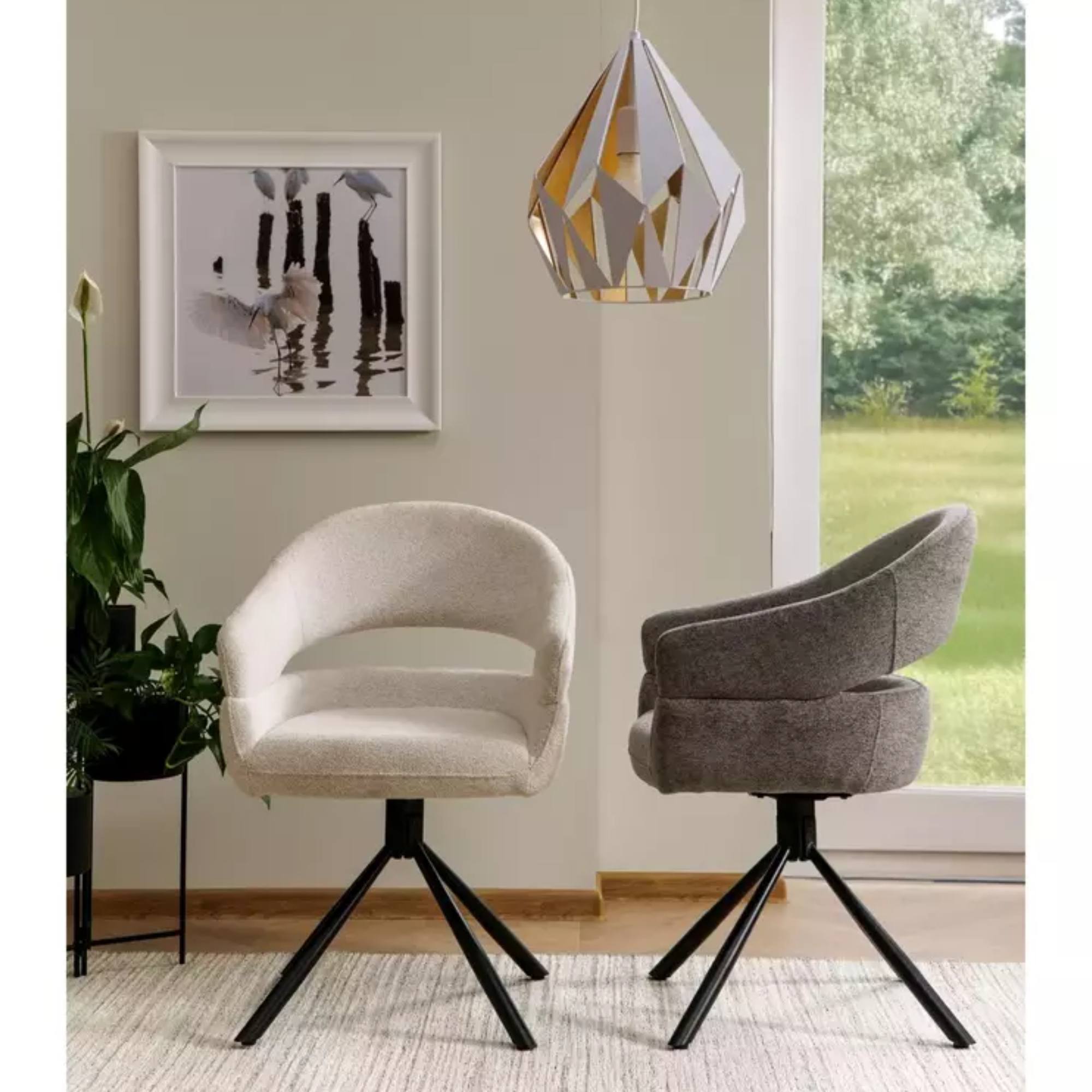 Stolička je čalúnená hladkou tkaninou príjemnou na dotyk. O pohodlie pri sedení sa starajú podrúčky aj mäkký penový sedák. Stabilitu stoličky zaisťuje kovová konštrukcia.