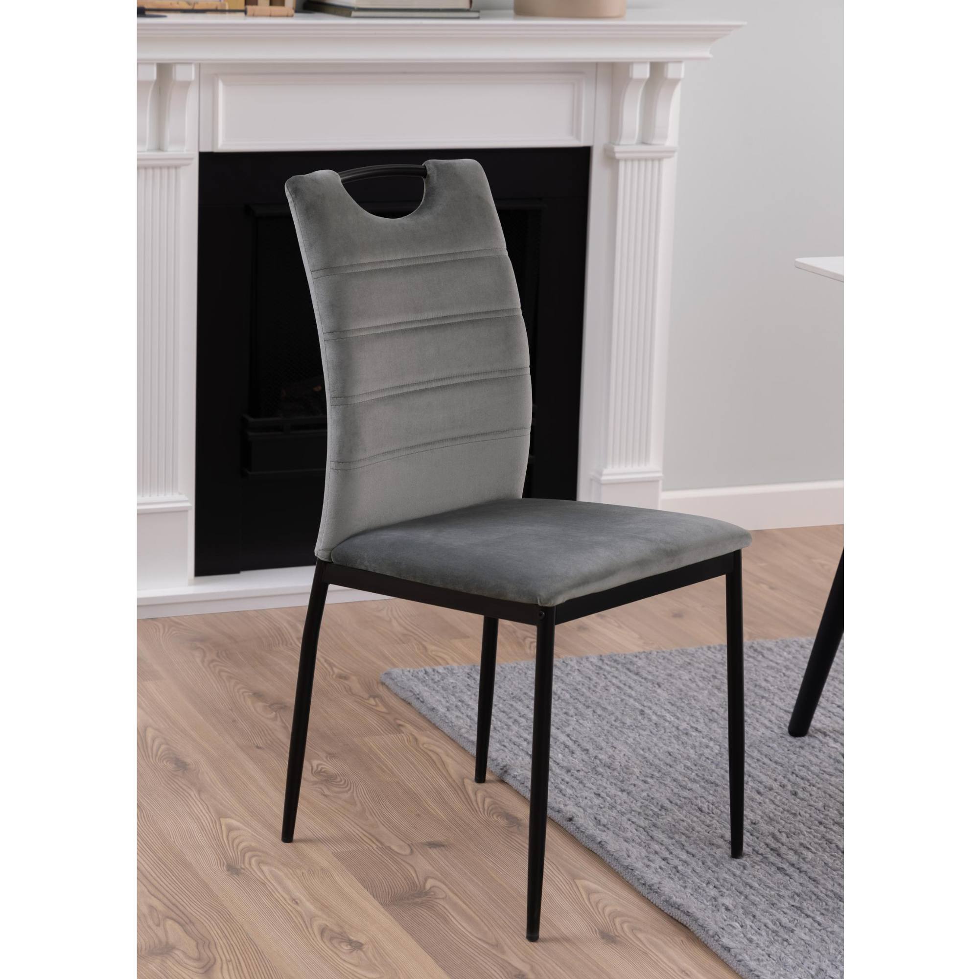 Pretože stolička disponuje pevnou kovovou konštrukciou, je mimoriadne stabilná. Aby sa na stoličke príjemne sedelo, je vybavená pohodlným penovým sedadlom potiahnutým hladkou tkaninou zamatového typu. Na vrchnej strane operadla sa nachádza praktické držadlo, ktoré uľahčuje manipuláciu so stoličkou.
