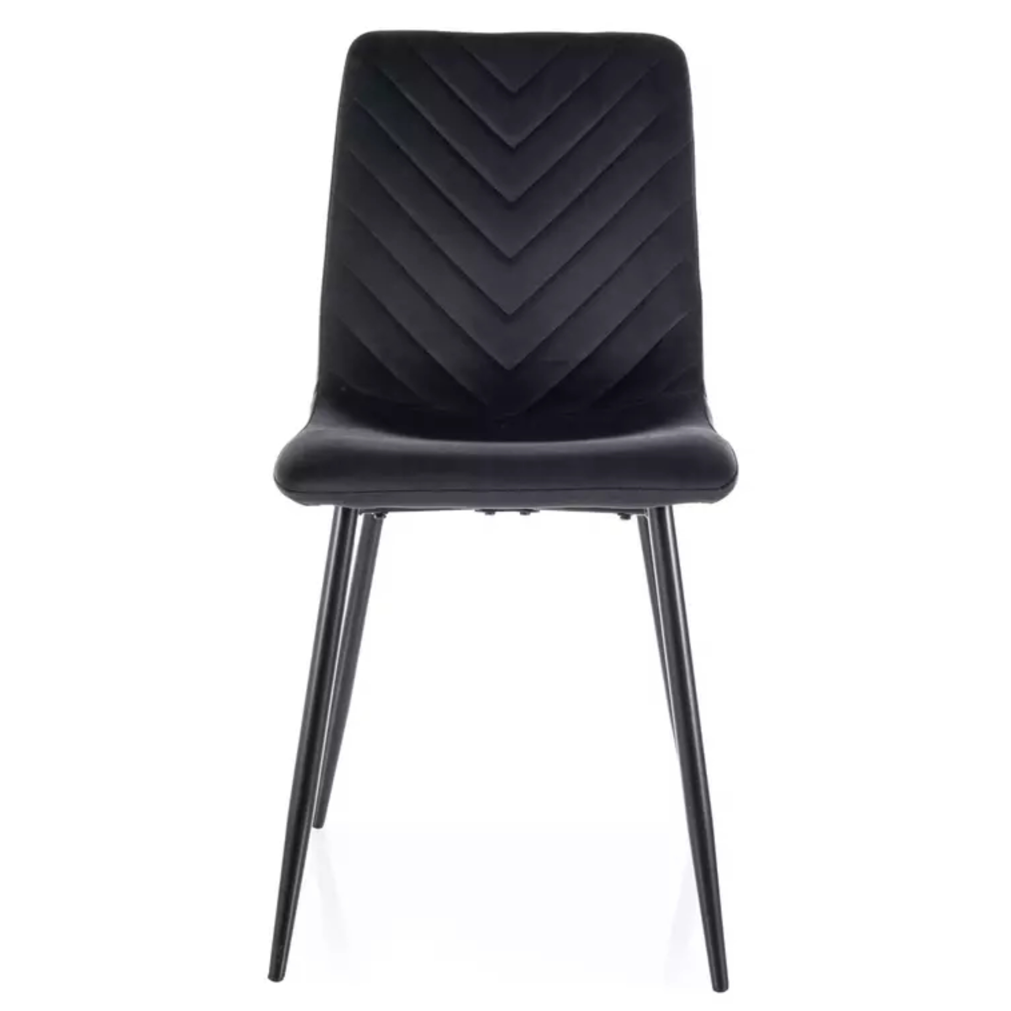 Stolička je čalúnená hladkou tkaninou zamatového typu, ktorá je príjemná na dotyk a ktorú zdobí štýlové prešívanie.