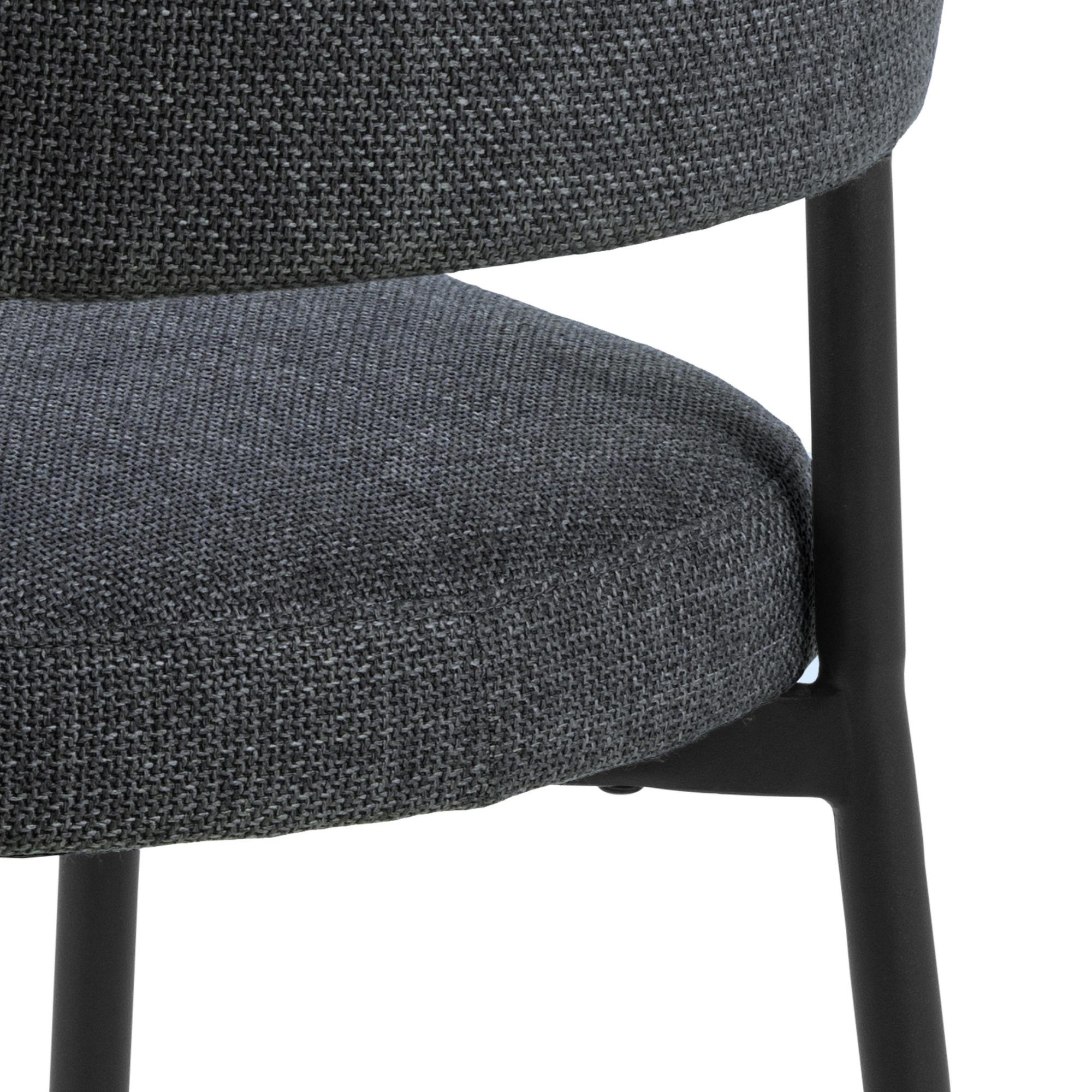 Za svoju stabilitu vďačí táto stolička pevnej kovovej konštrukcii. K pohodlnému sedeniu na nej prispieva nielen mäkký penový sedák potiahnutý hladkou tkaninou, ale aj operadlo v tvare polmesiaca.