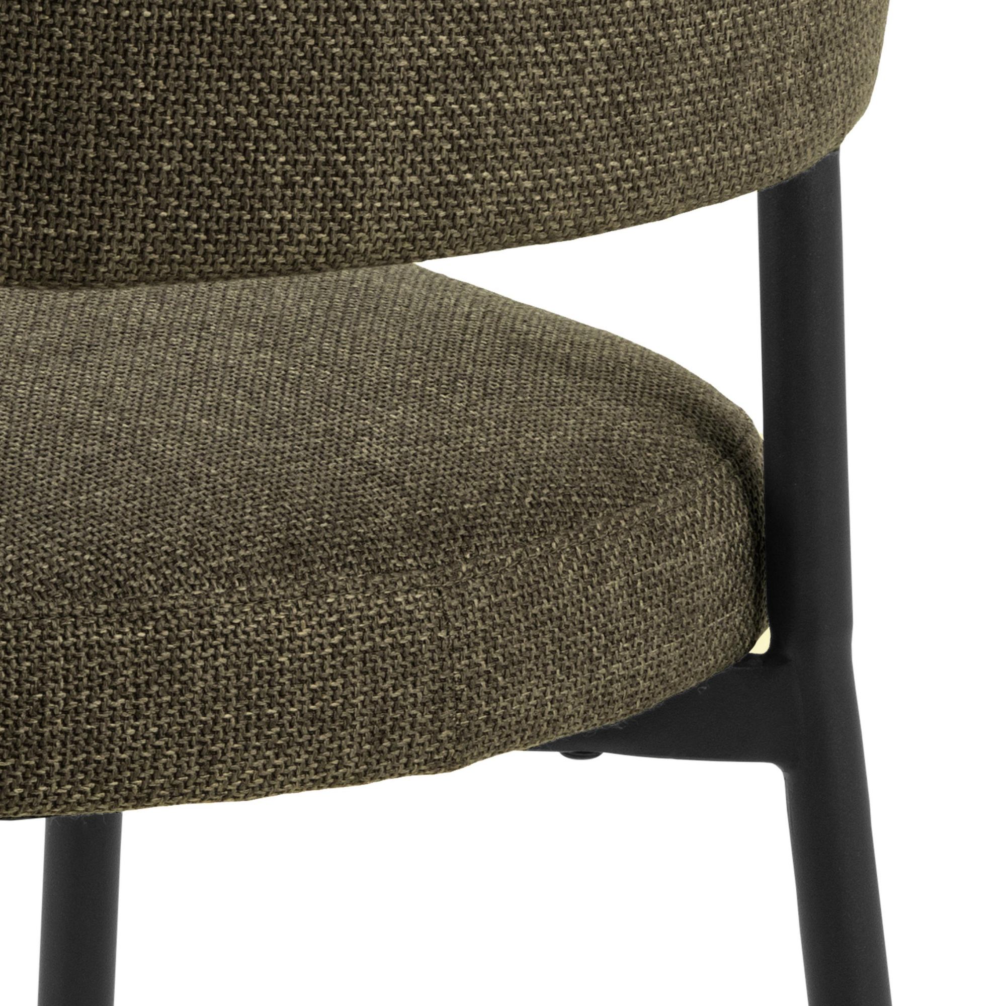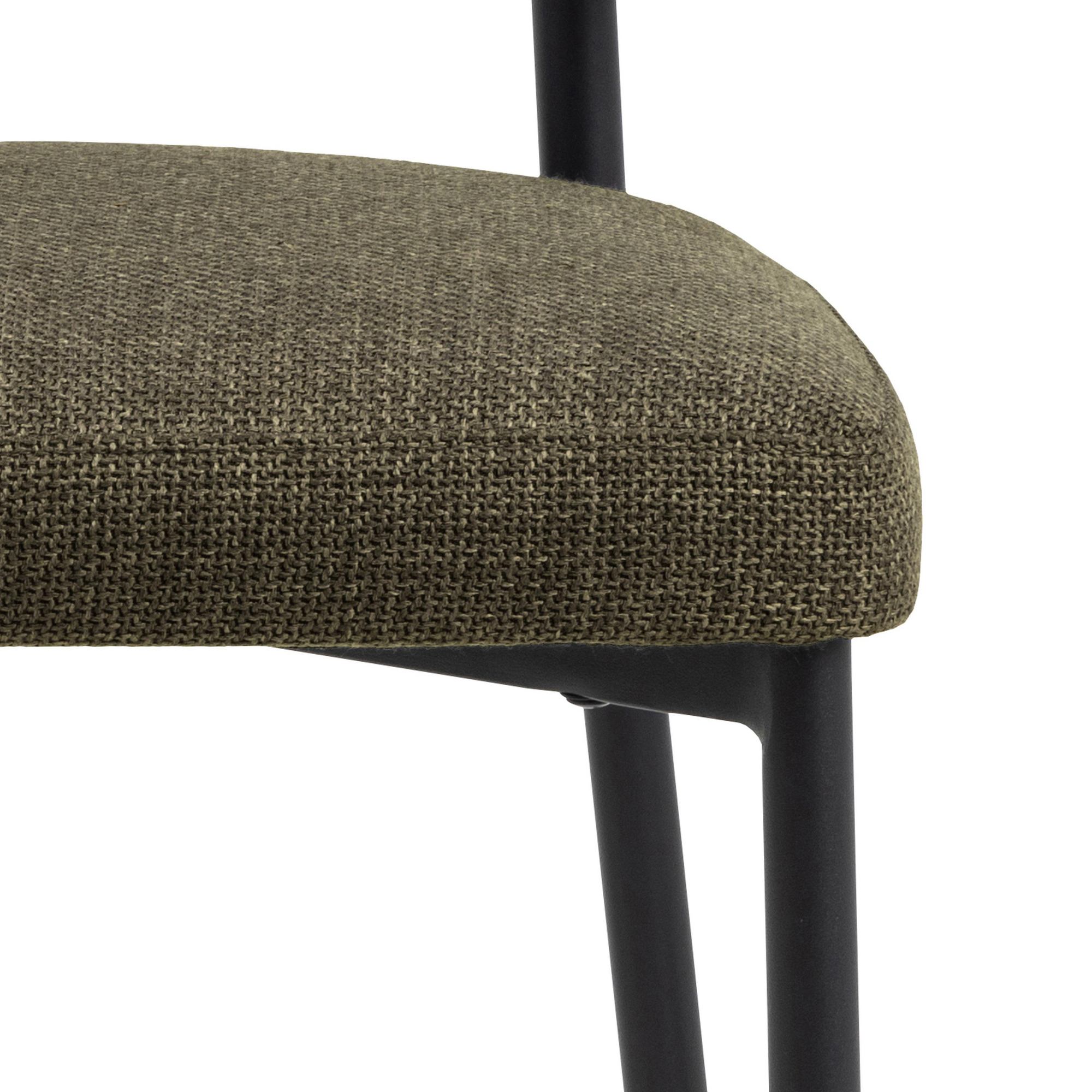 Za svoju stabilitu vďačí táto stolička pevnej kovovej konštrukcii. K pohodlnému sedeniu na nej prispieva nielen mäkký penový sedák potiahnutý hladkou tkaninou, ale aj operadlo v tvare polmesiaca.