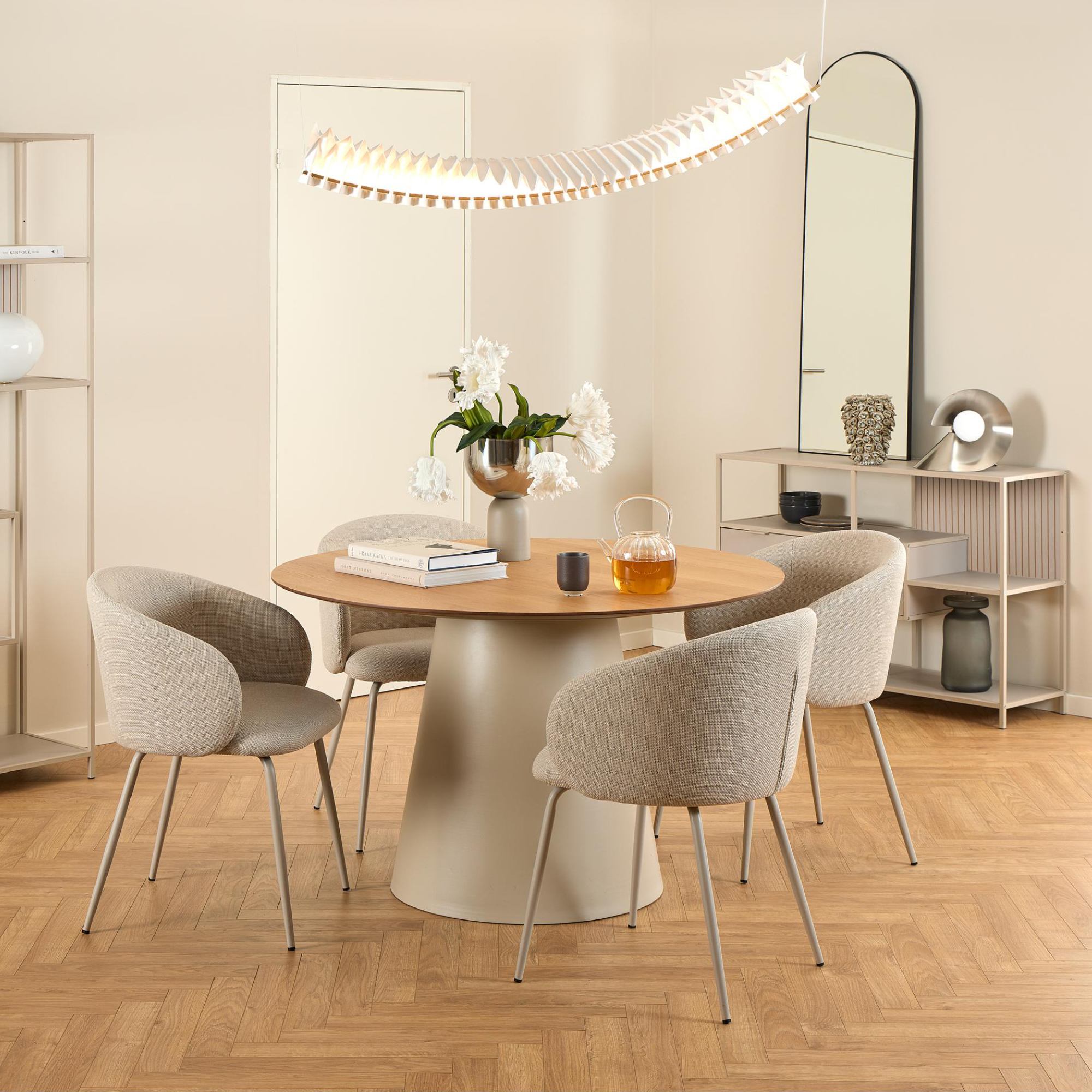 Jedálenská stolička ELEANOR je čalúnená hladkou tkaninou, ktorá je príjemná na dotyk.
