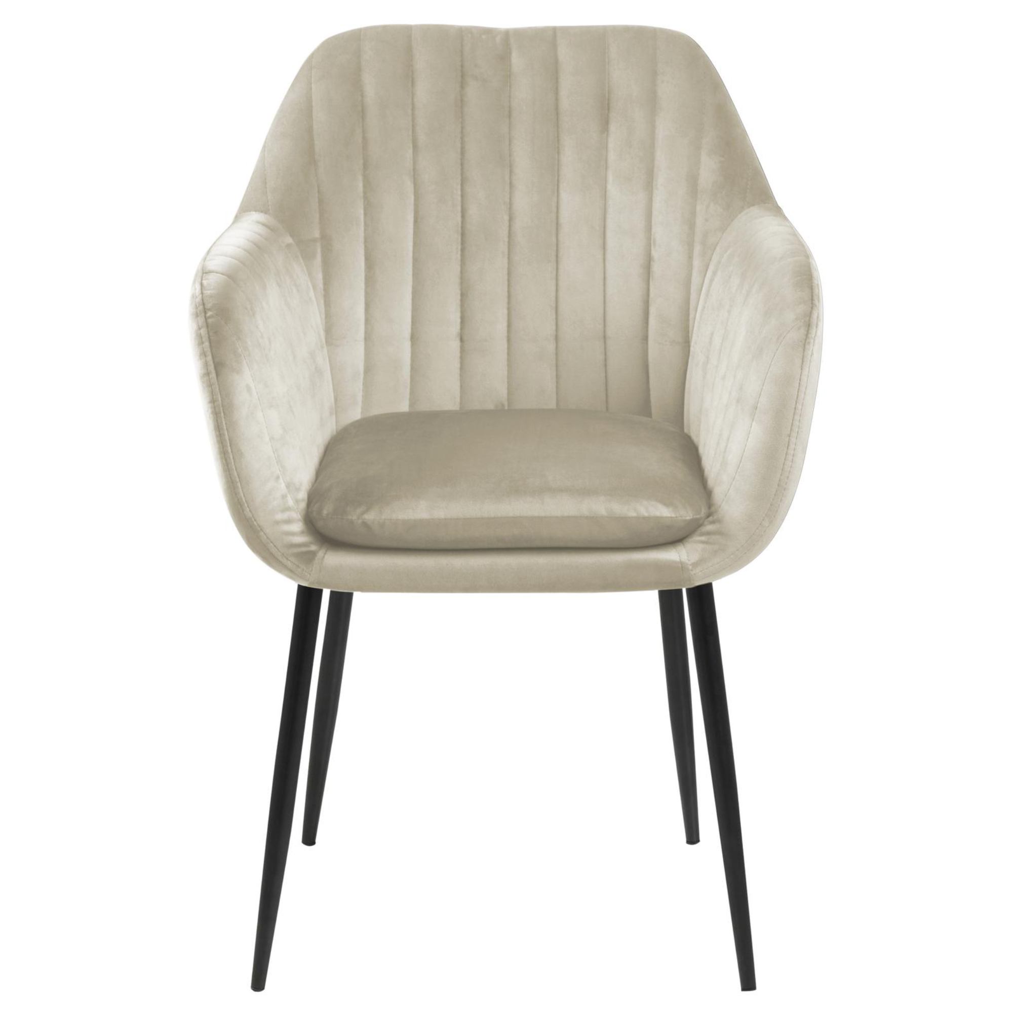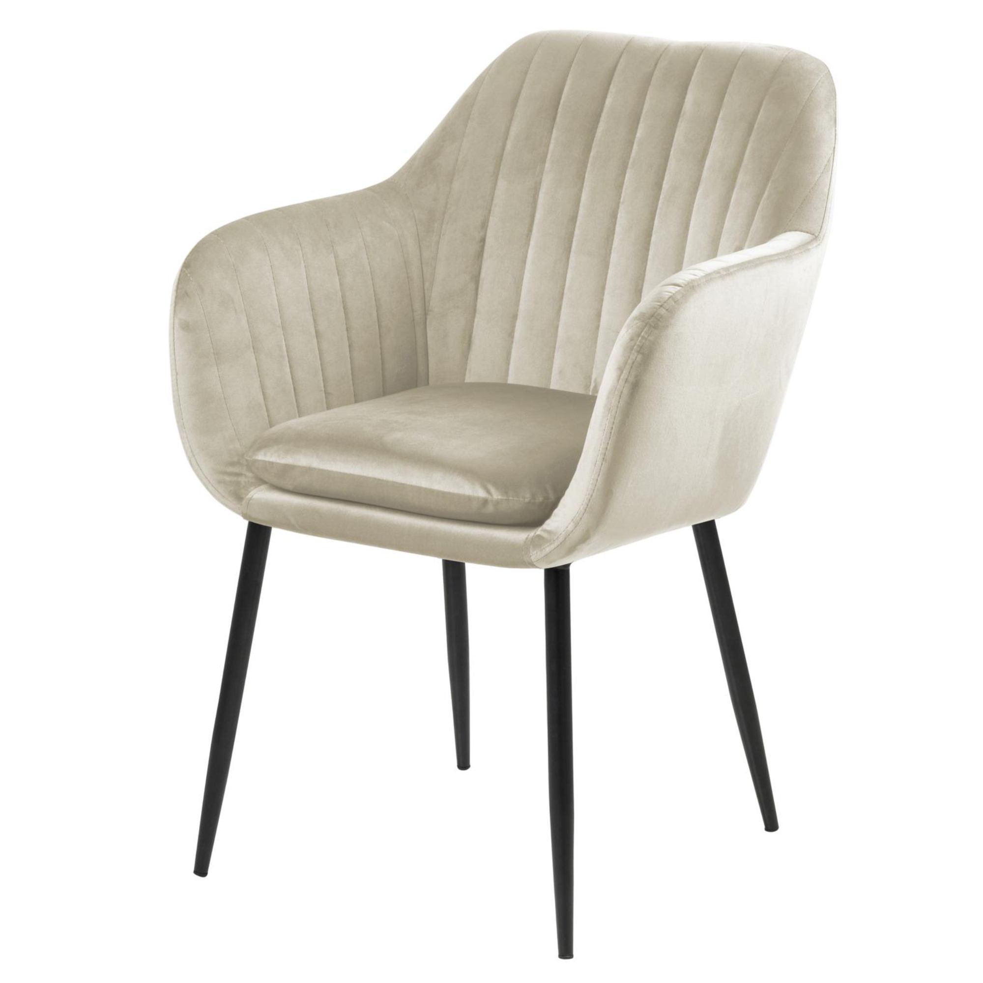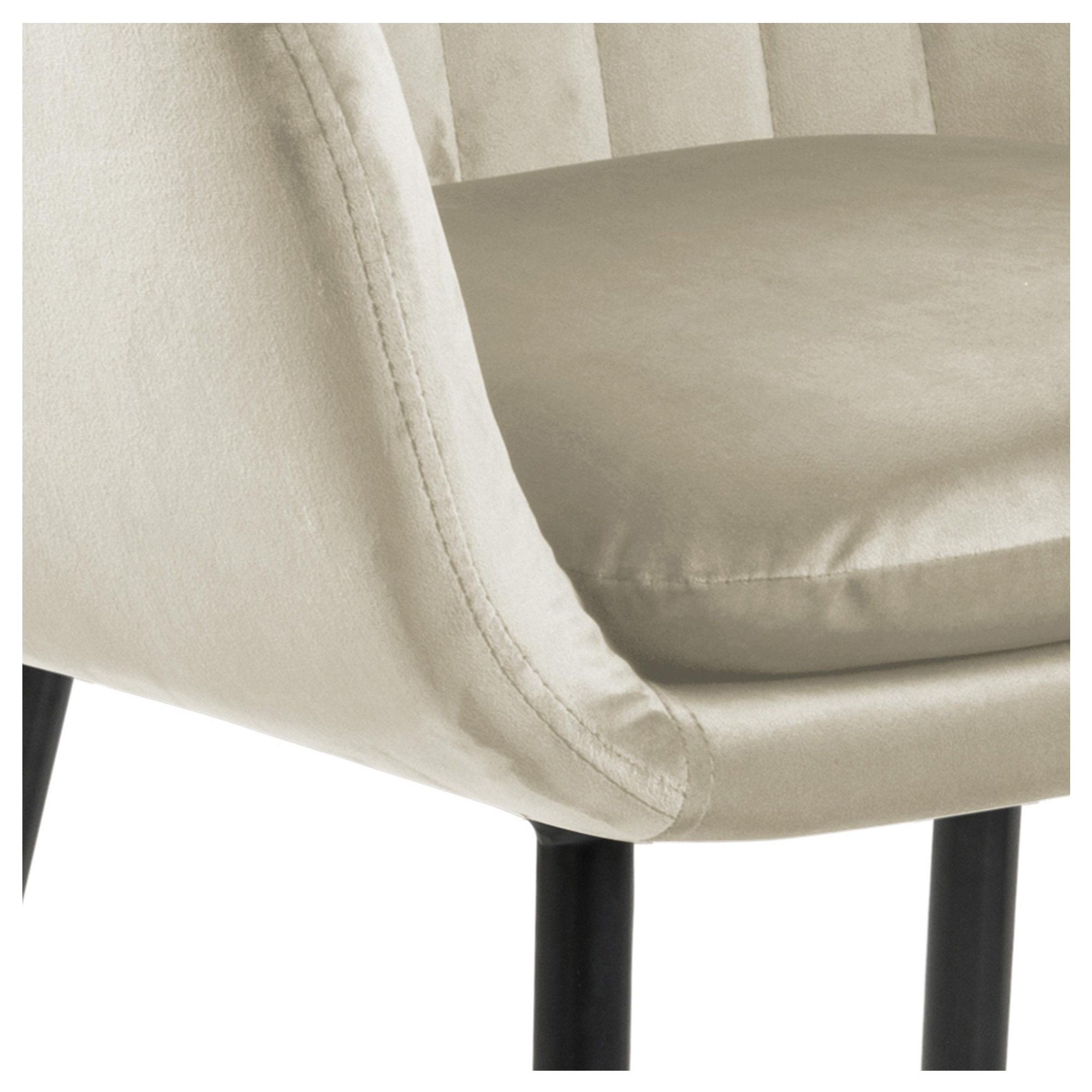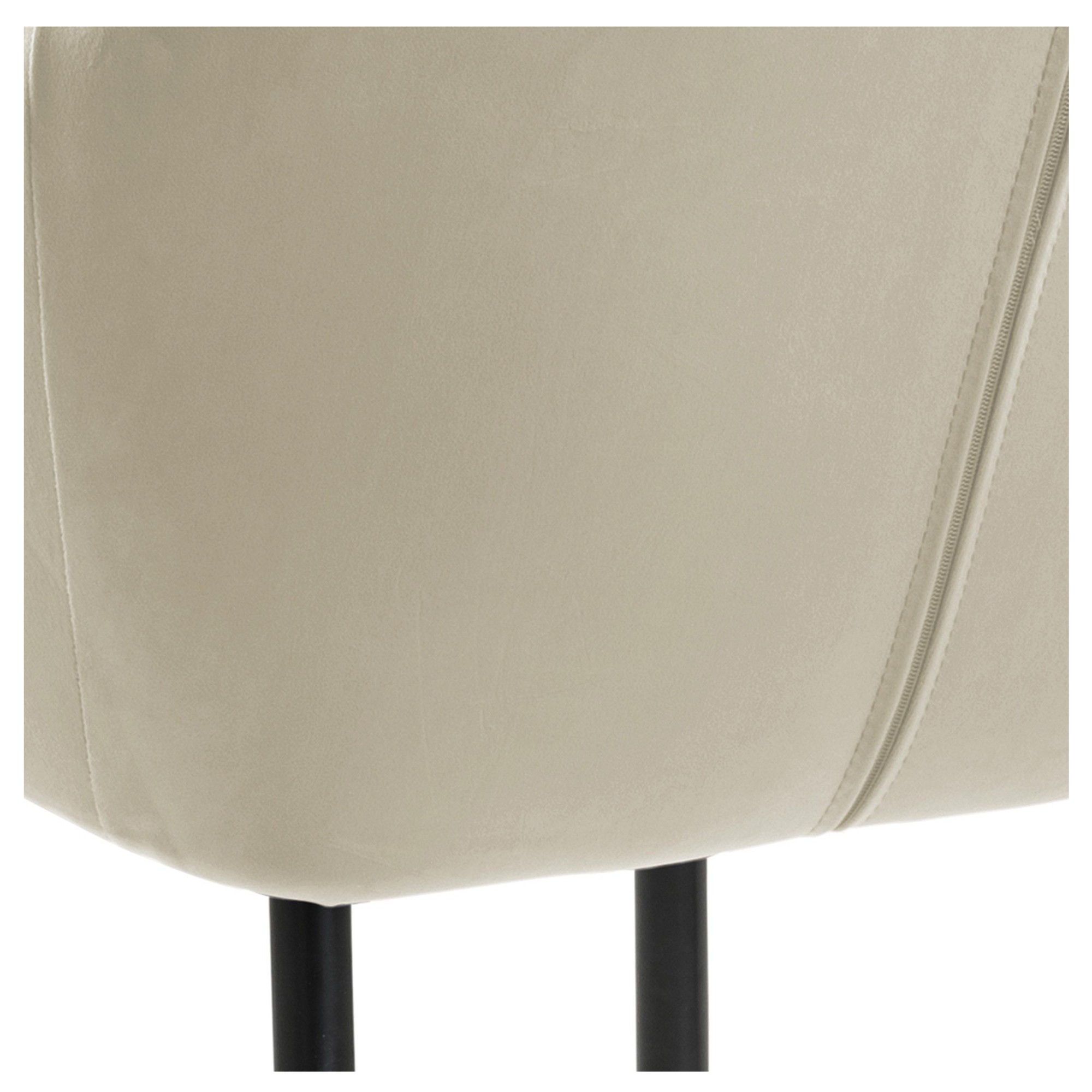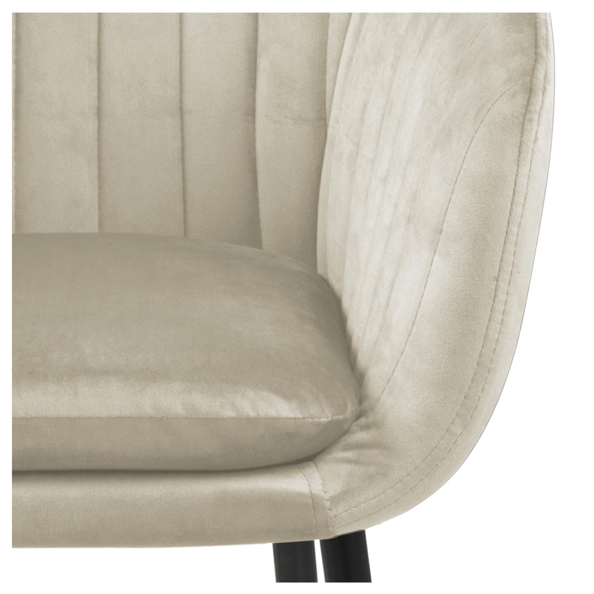 Komfort zaisťuje ** mäkká, penová výplň ** sedadla aj chrbtovej opierky. Na odloženie unavených rúk slúžia praktické podrúčky. Celá škrupina je čalúnená tkaninou v jednofarebnom vyhotovení s na dotyk príjemným povrchom. Minimalistický vzhľad stoličky ozvláštňuje decentné, vertikálne prešívanie poťahu. Pevnosť a stabilitu stoličky zaisťuje štvornohá podnož z práškovo lakovaného kovu.
