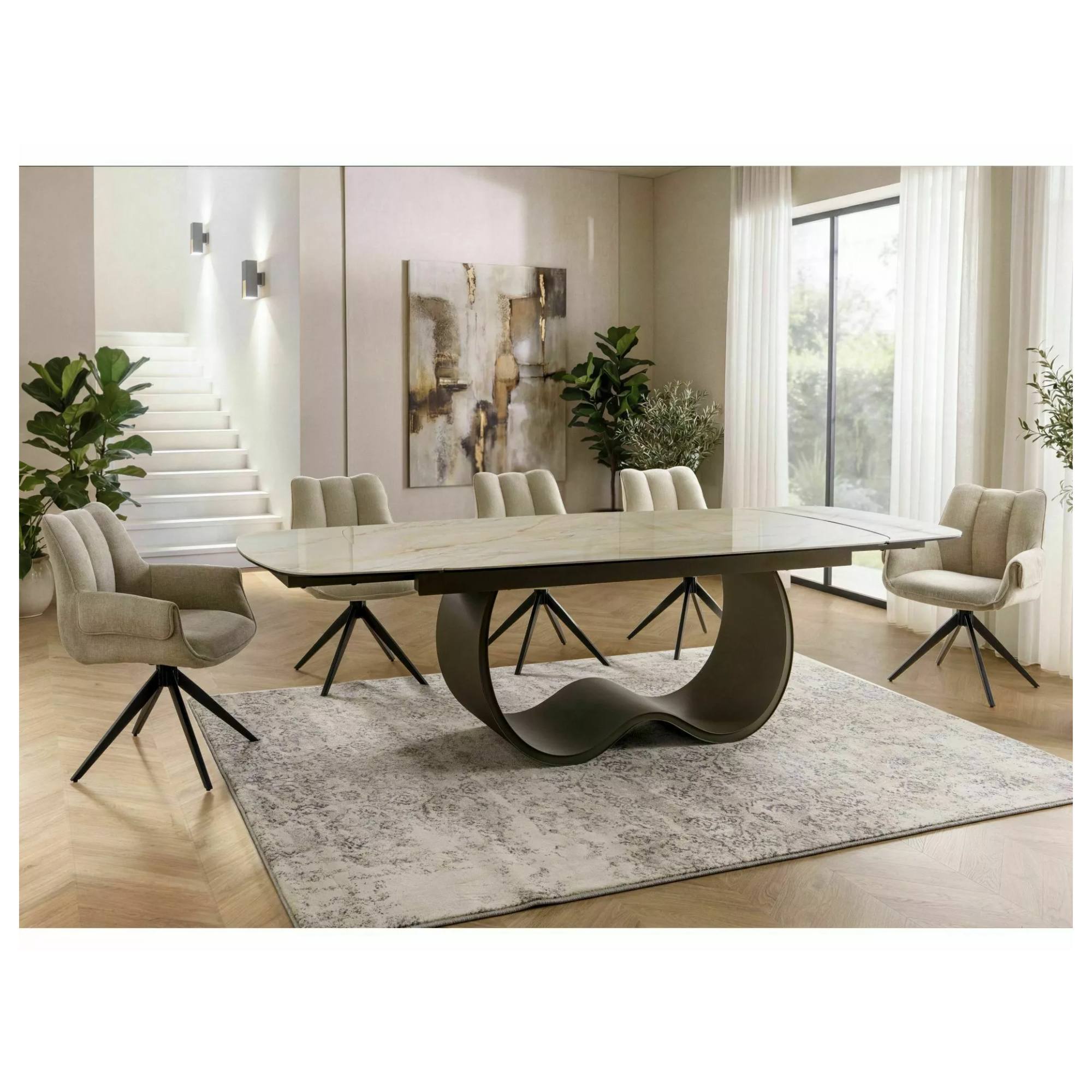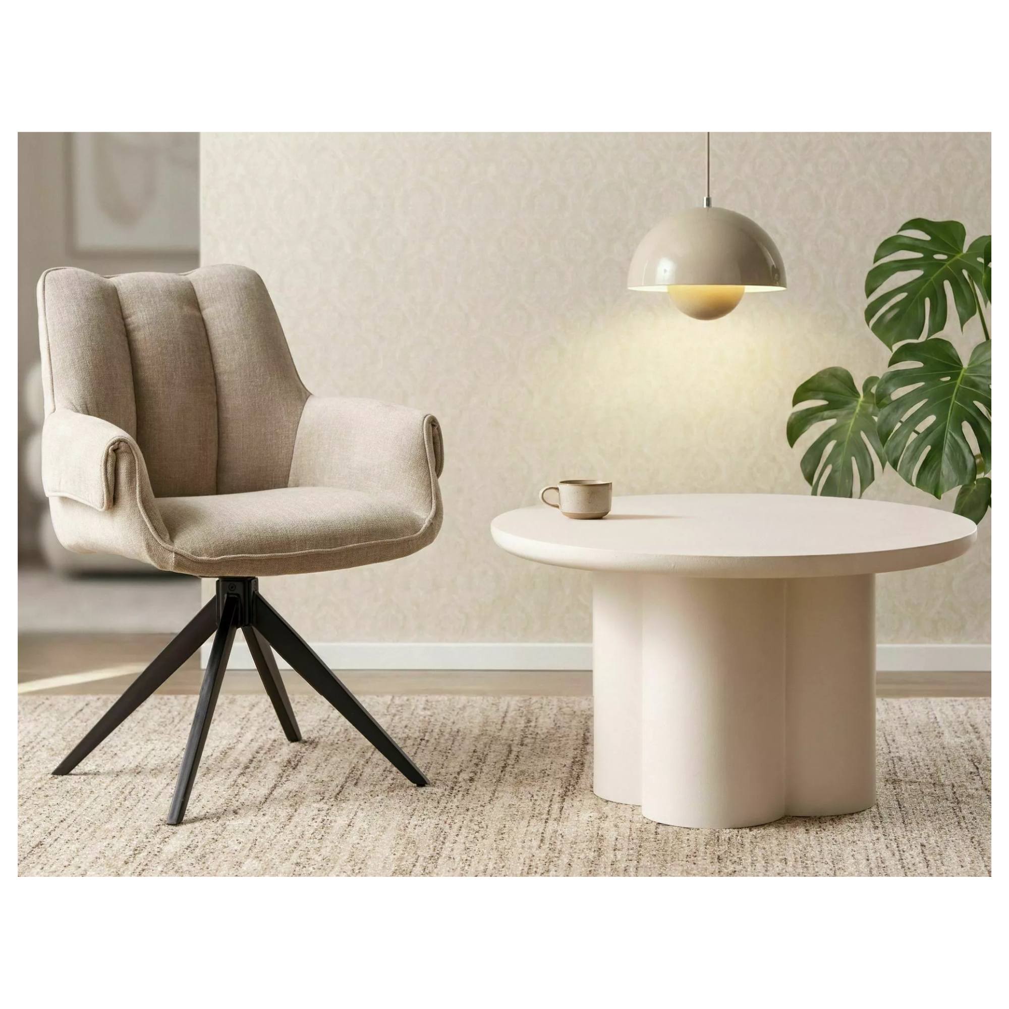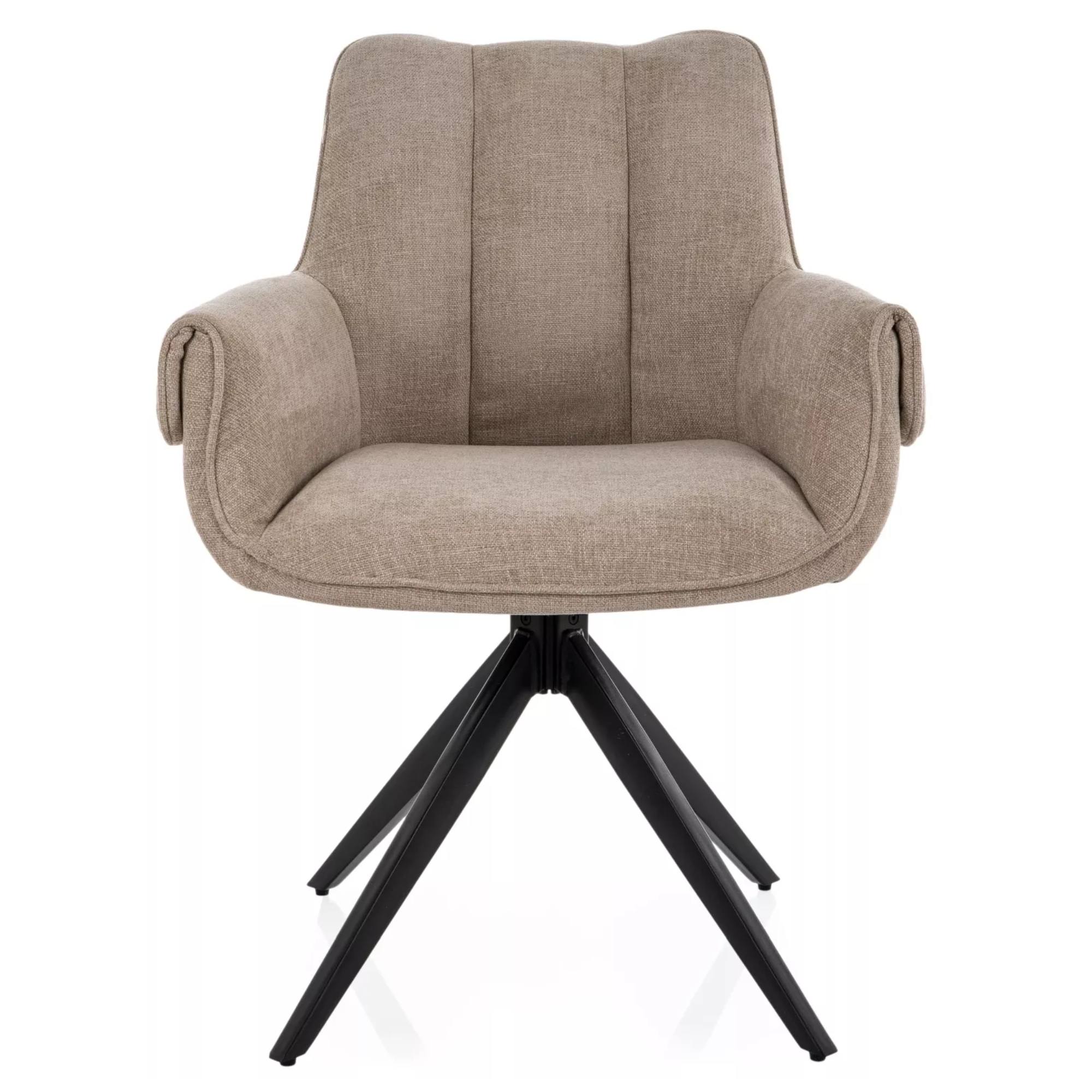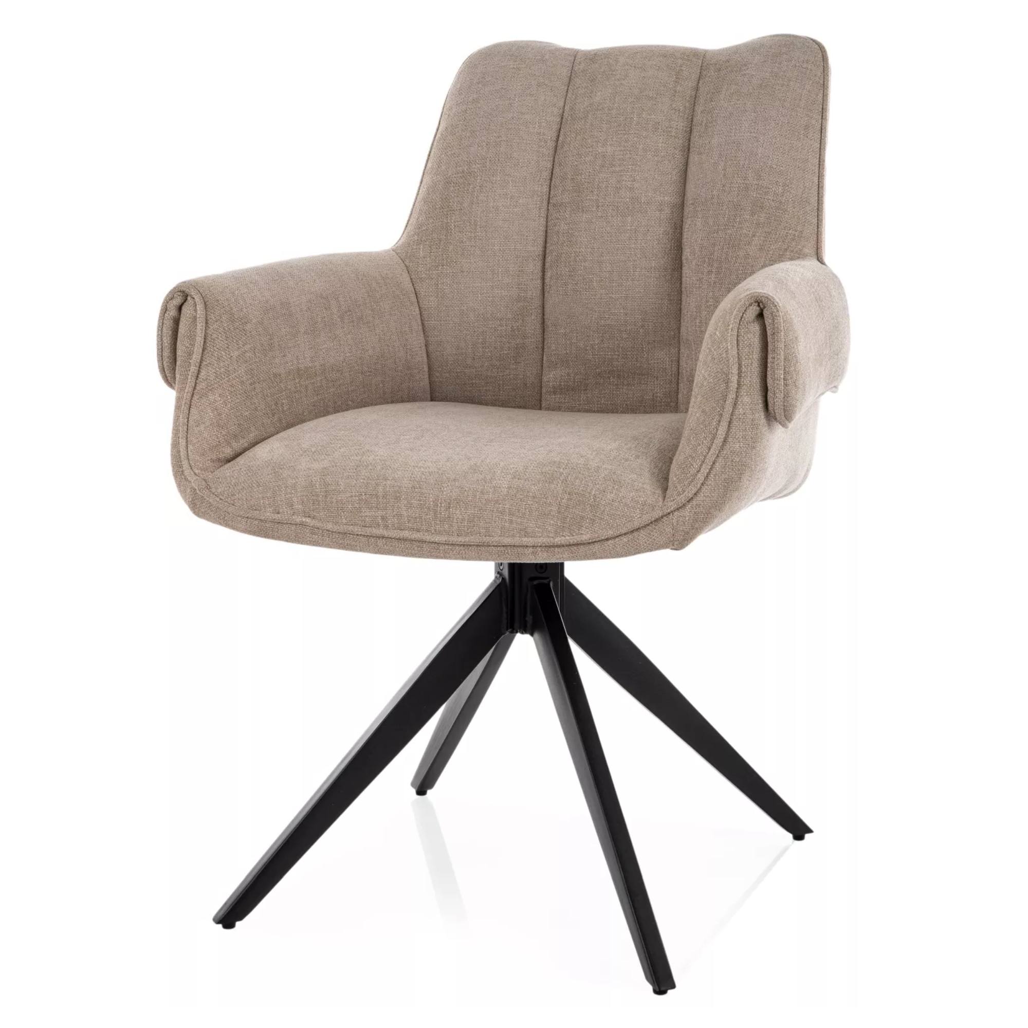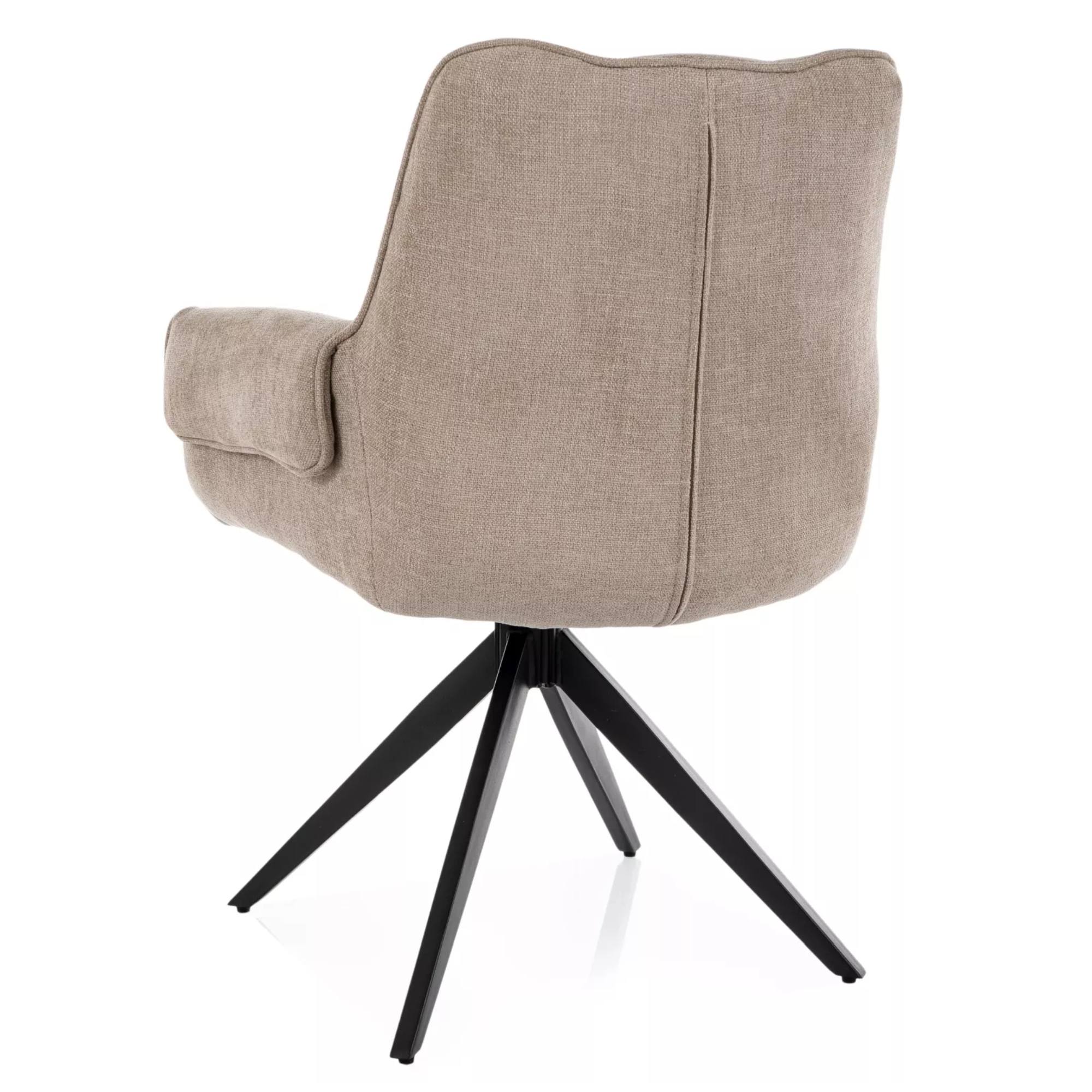 Sedák je spoločne s chrbtovou opierkou potiahnutý na dotyk príjemnou hladkou tkaninou. Čalúnenie je doplnené o dekoratívne prešívanie vytvárajúce luxusnejší vzhľad. Maximálne pohodlie počas sedenia je podporené ** mäkkou penovou výplňou ** a ** podrúčkami **. Sedaciu časť podopiera štvorica nôh z matného kovu.
